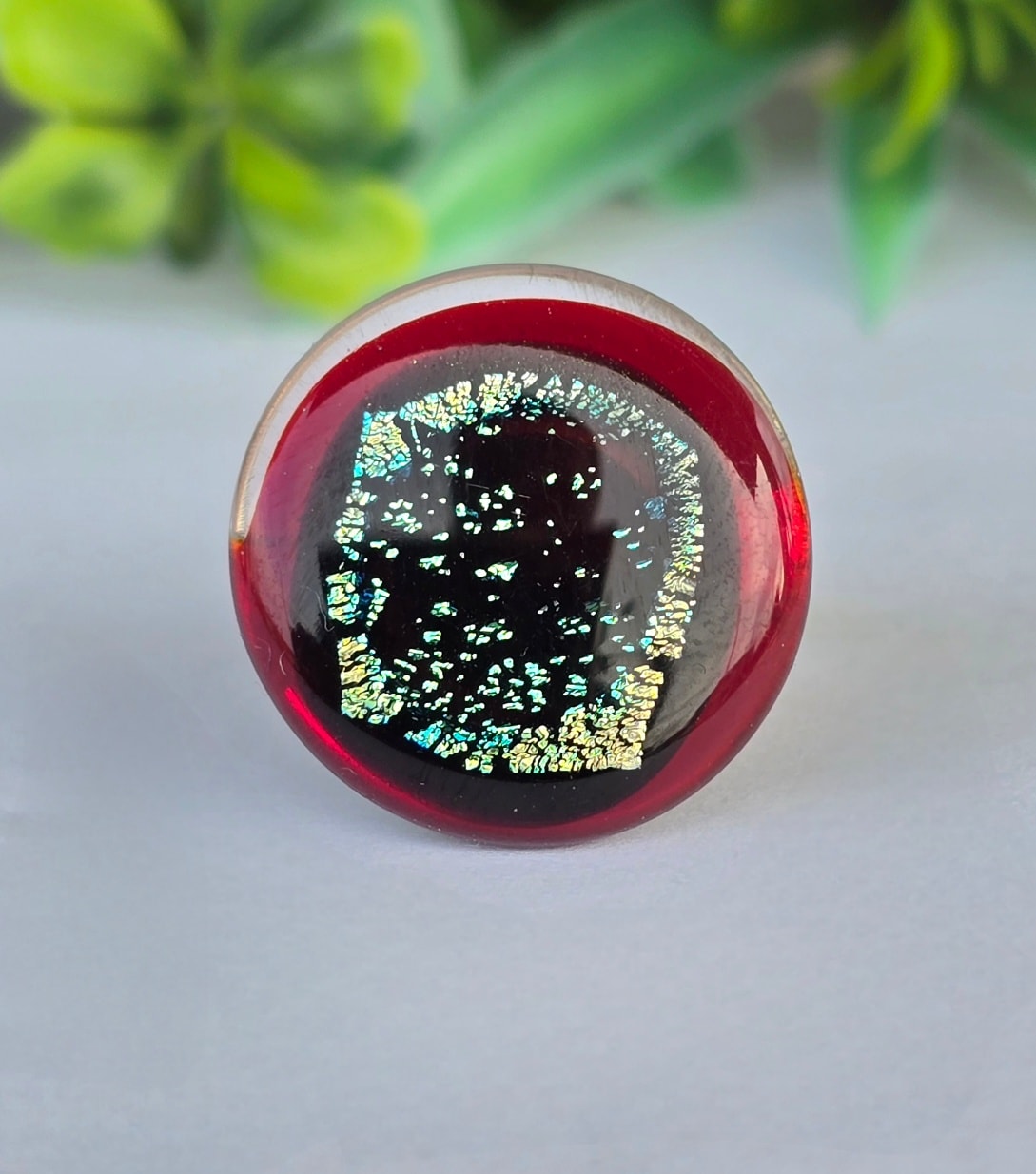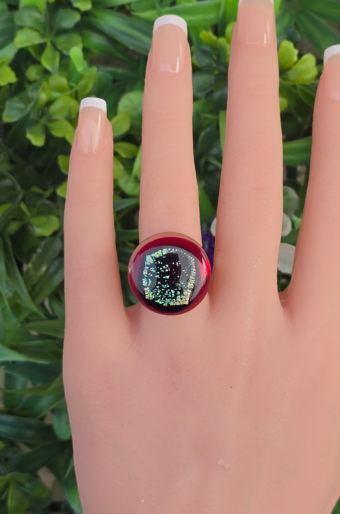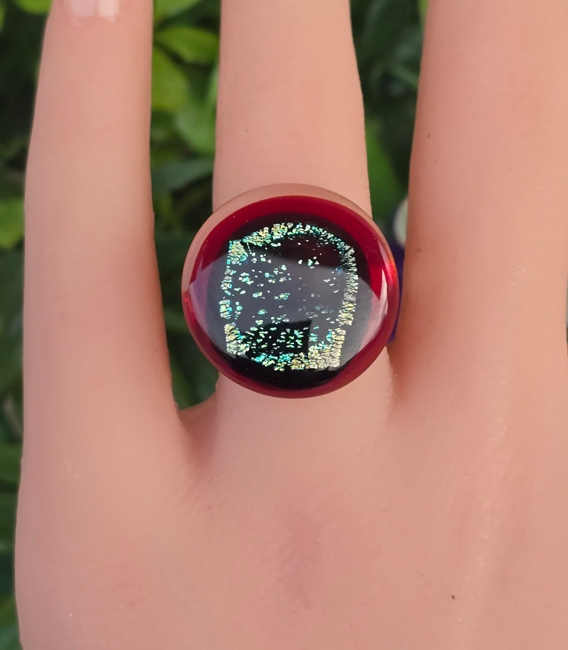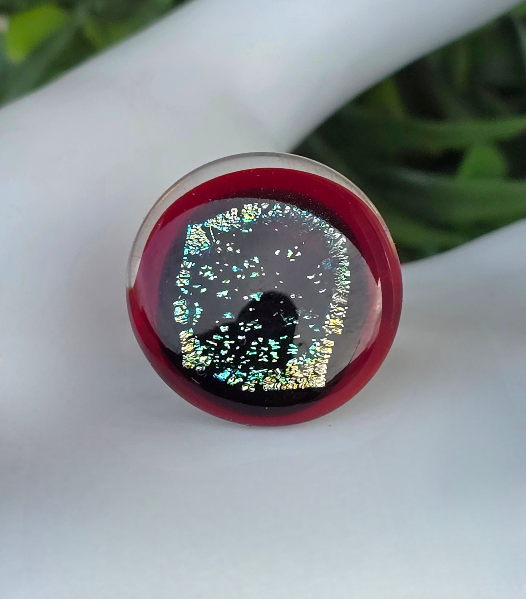Inel vechi spectaculos din argint, cu "fused glass" (sticlă dicroică), manufactură deosebită.