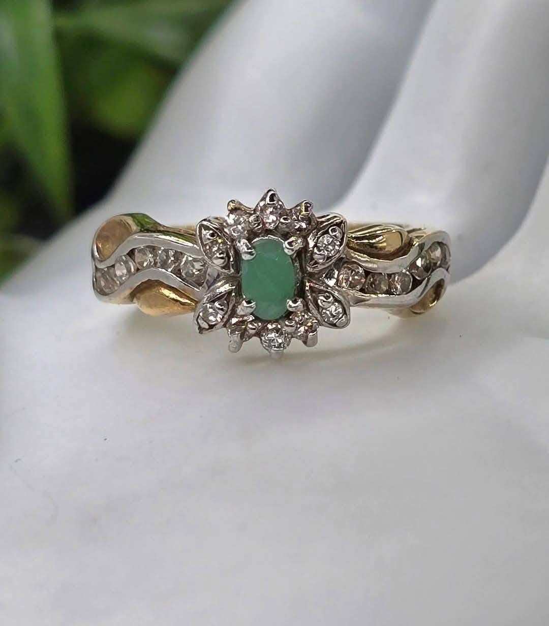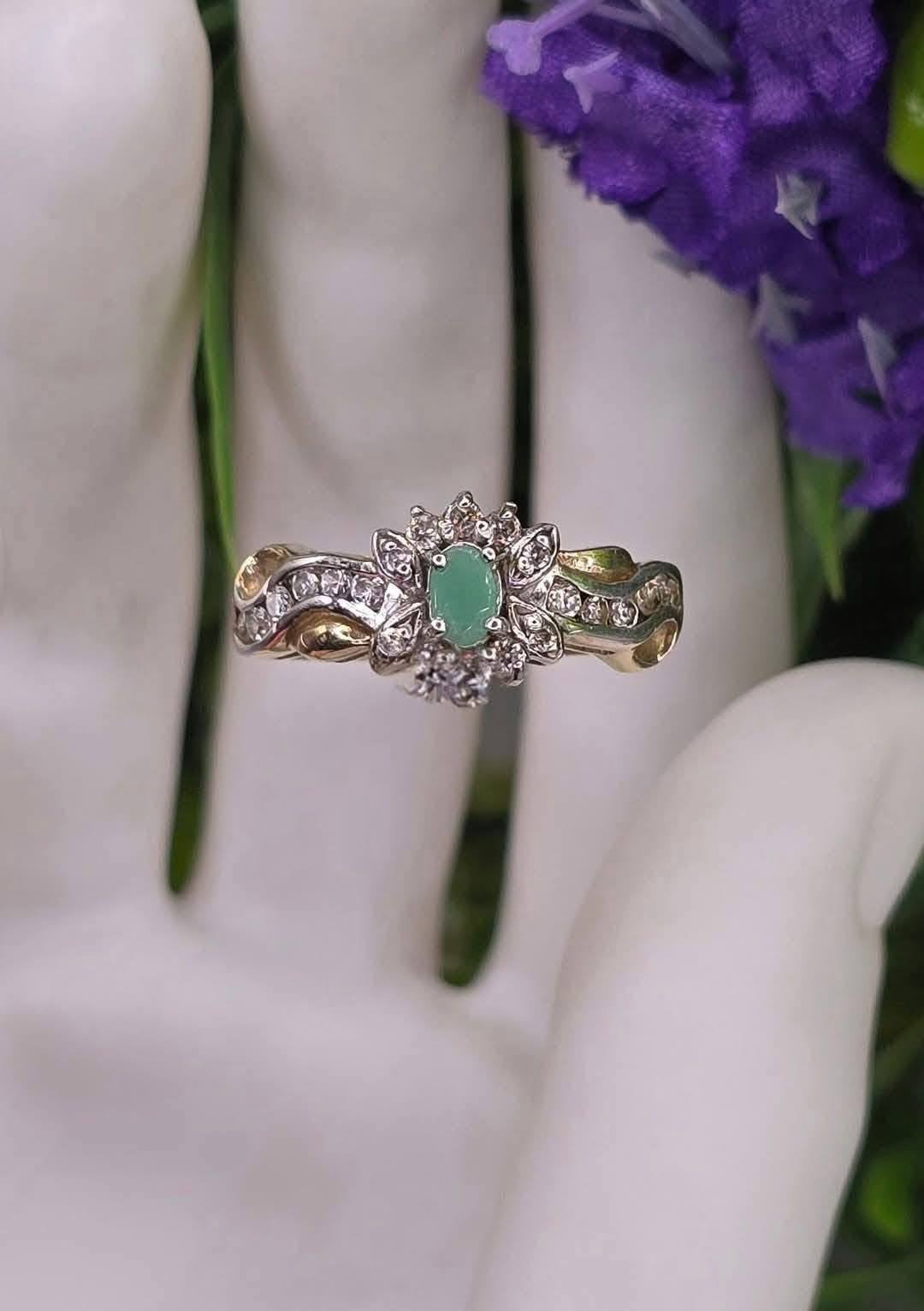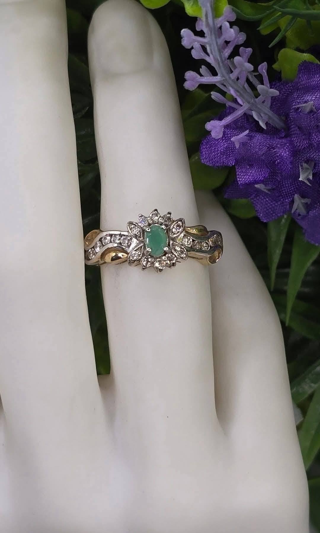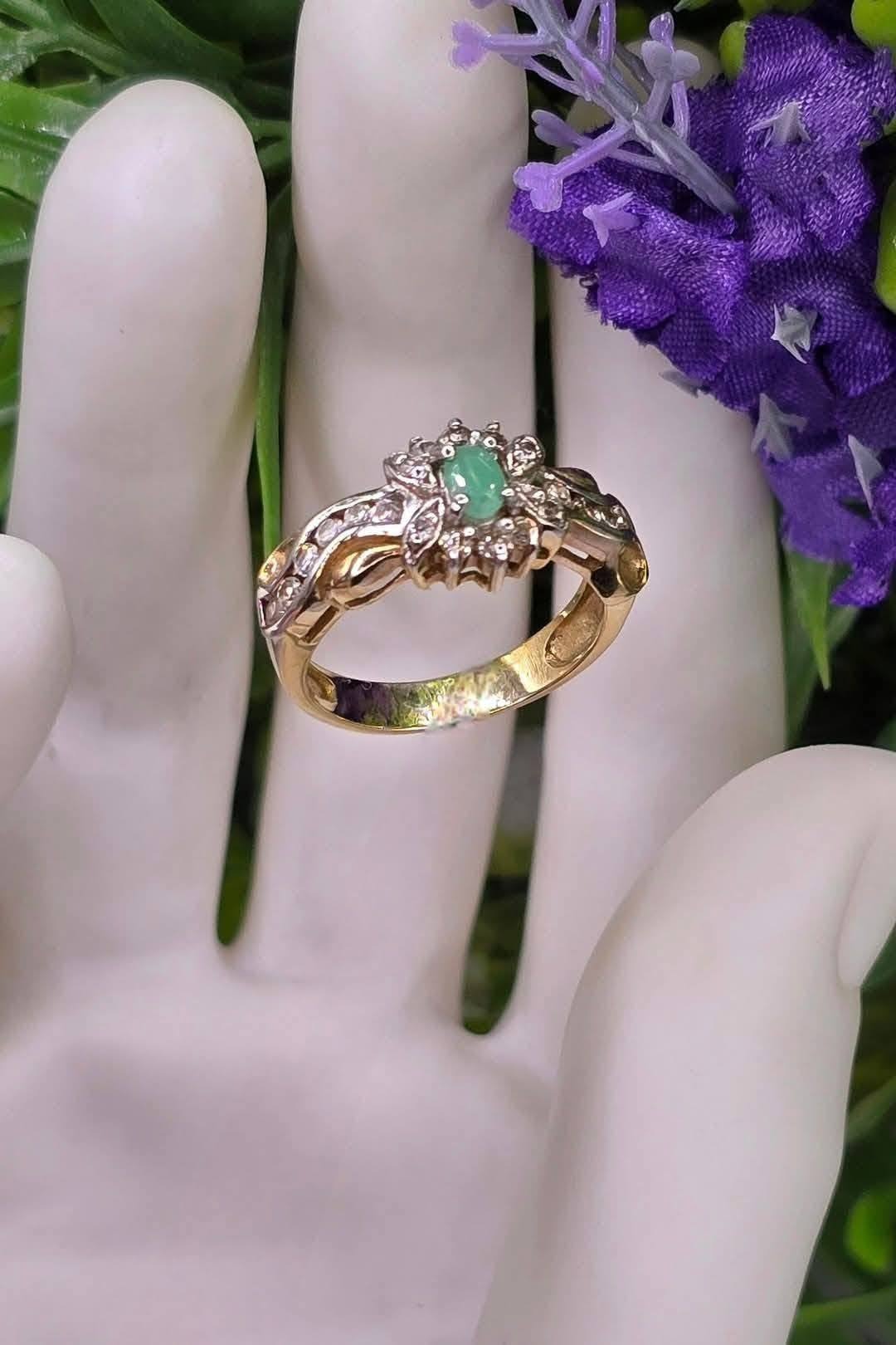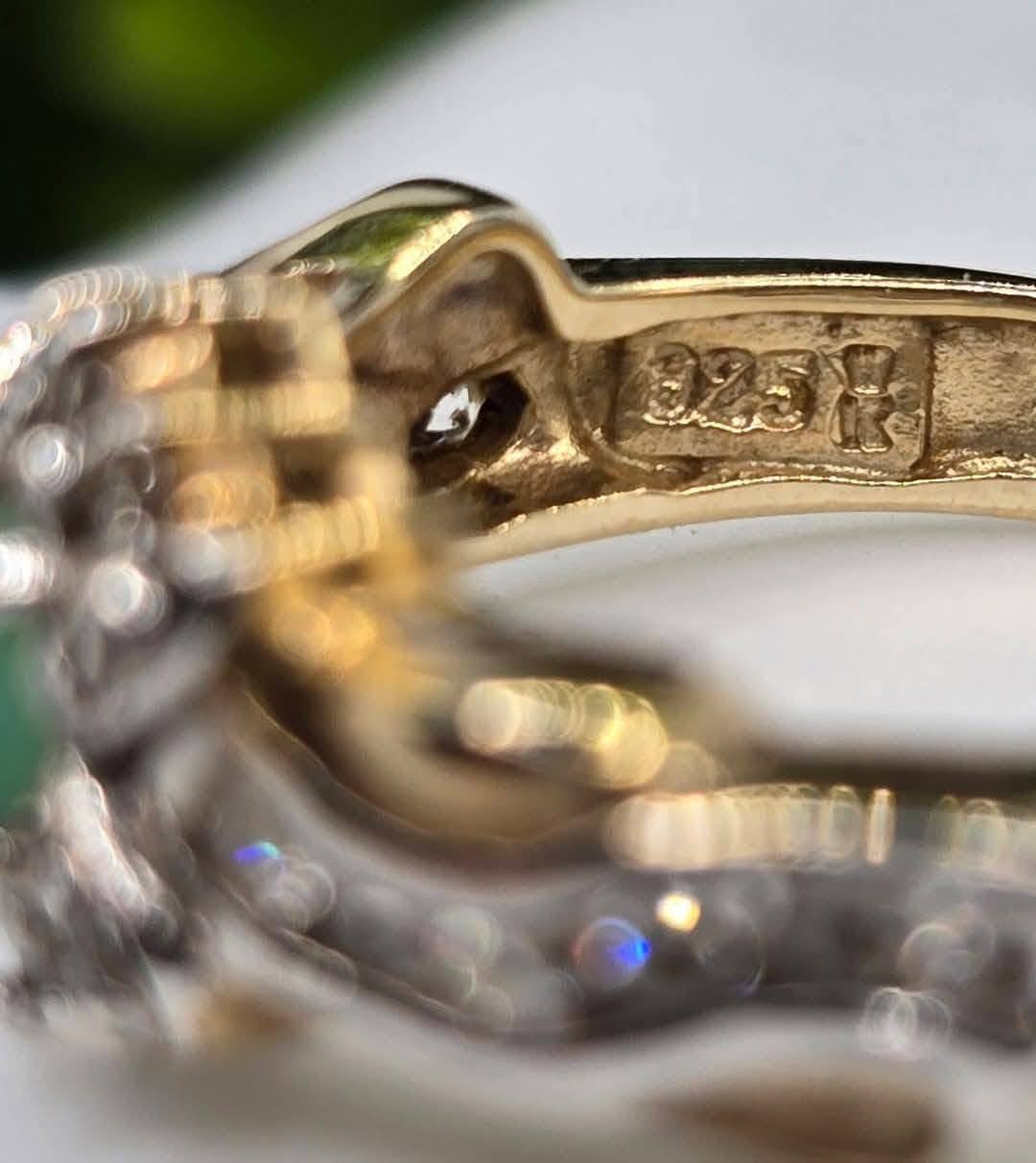 Inel vechi spectaculos, din argint și argint aurit, cu smarald natural și pietre cubic zirconia.