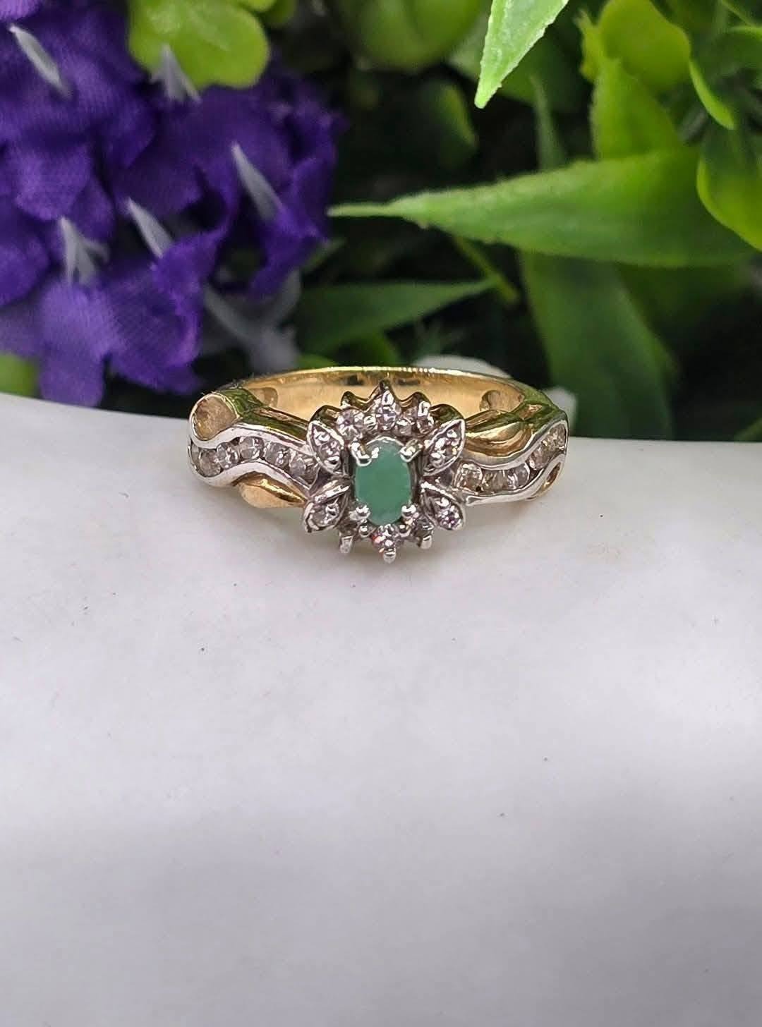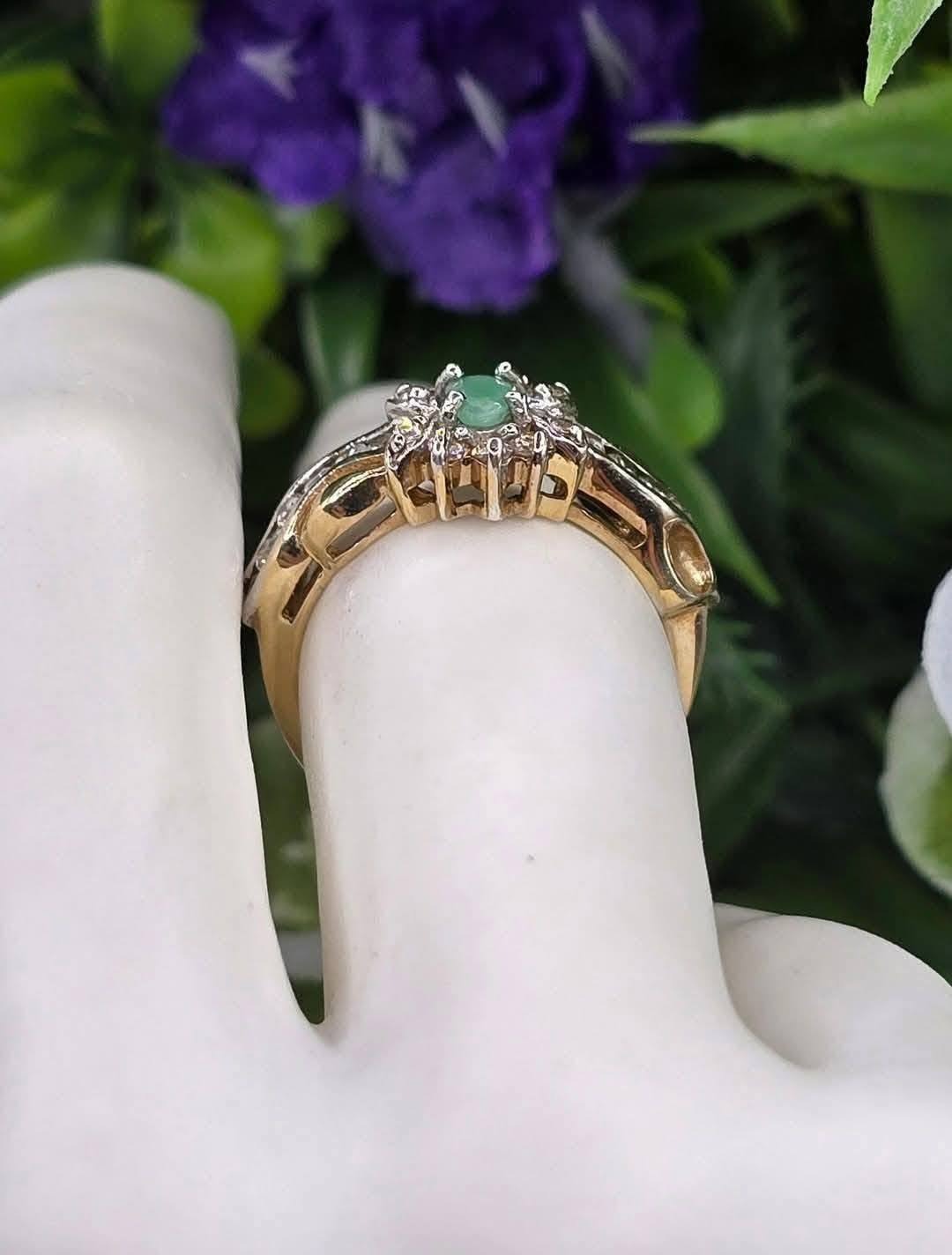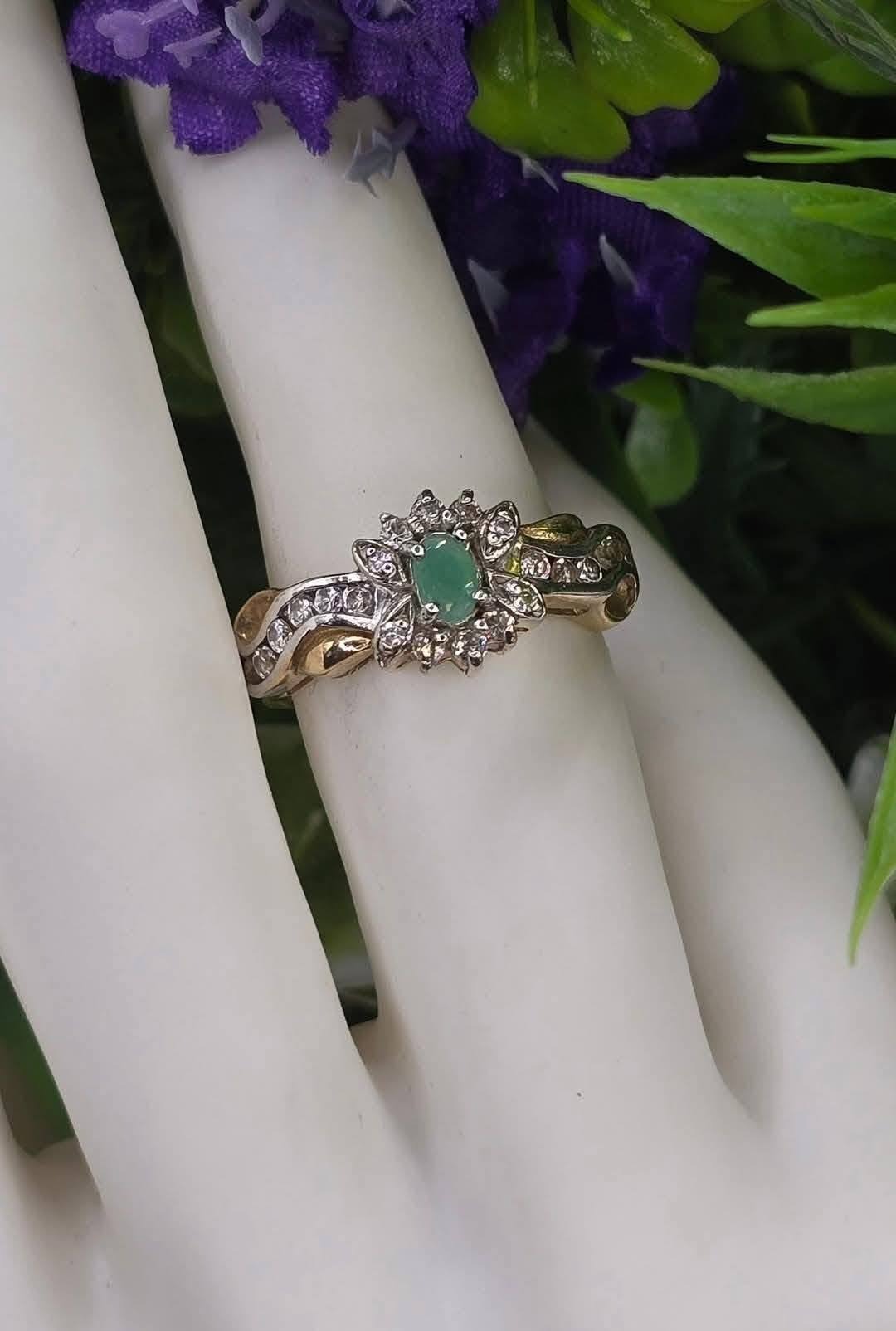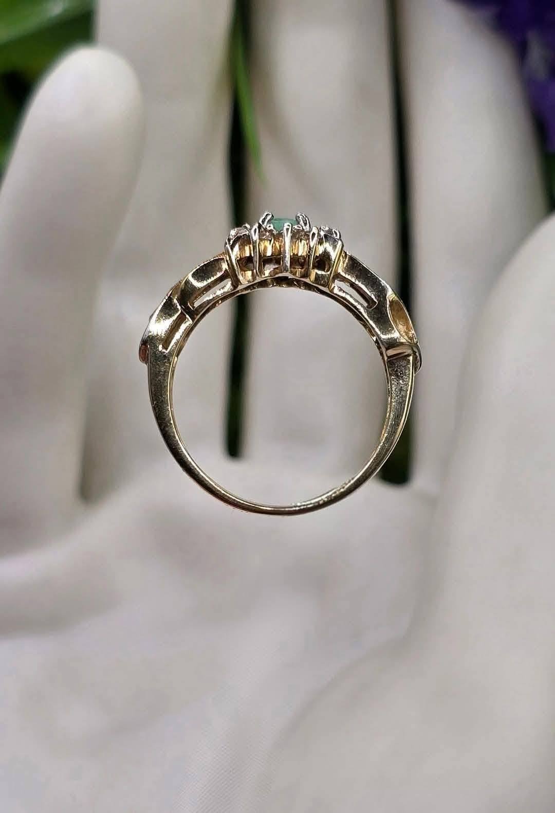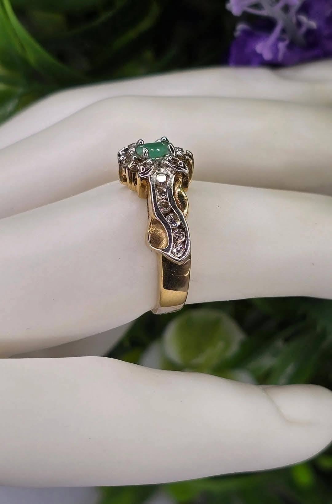 Inel vechi spectaculos, din argint și argint aurit, cu smarald natural și pietre cubic zirconia.