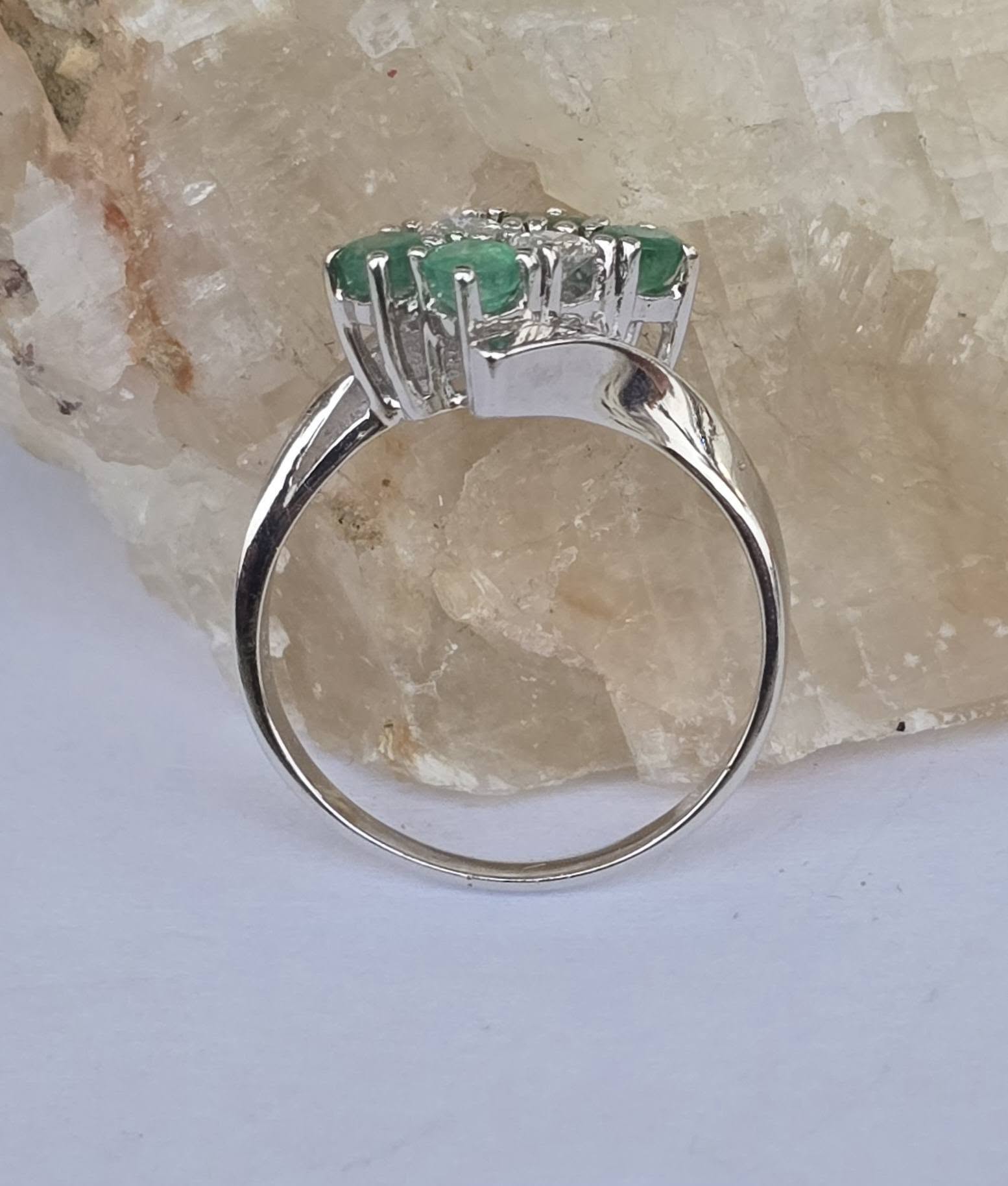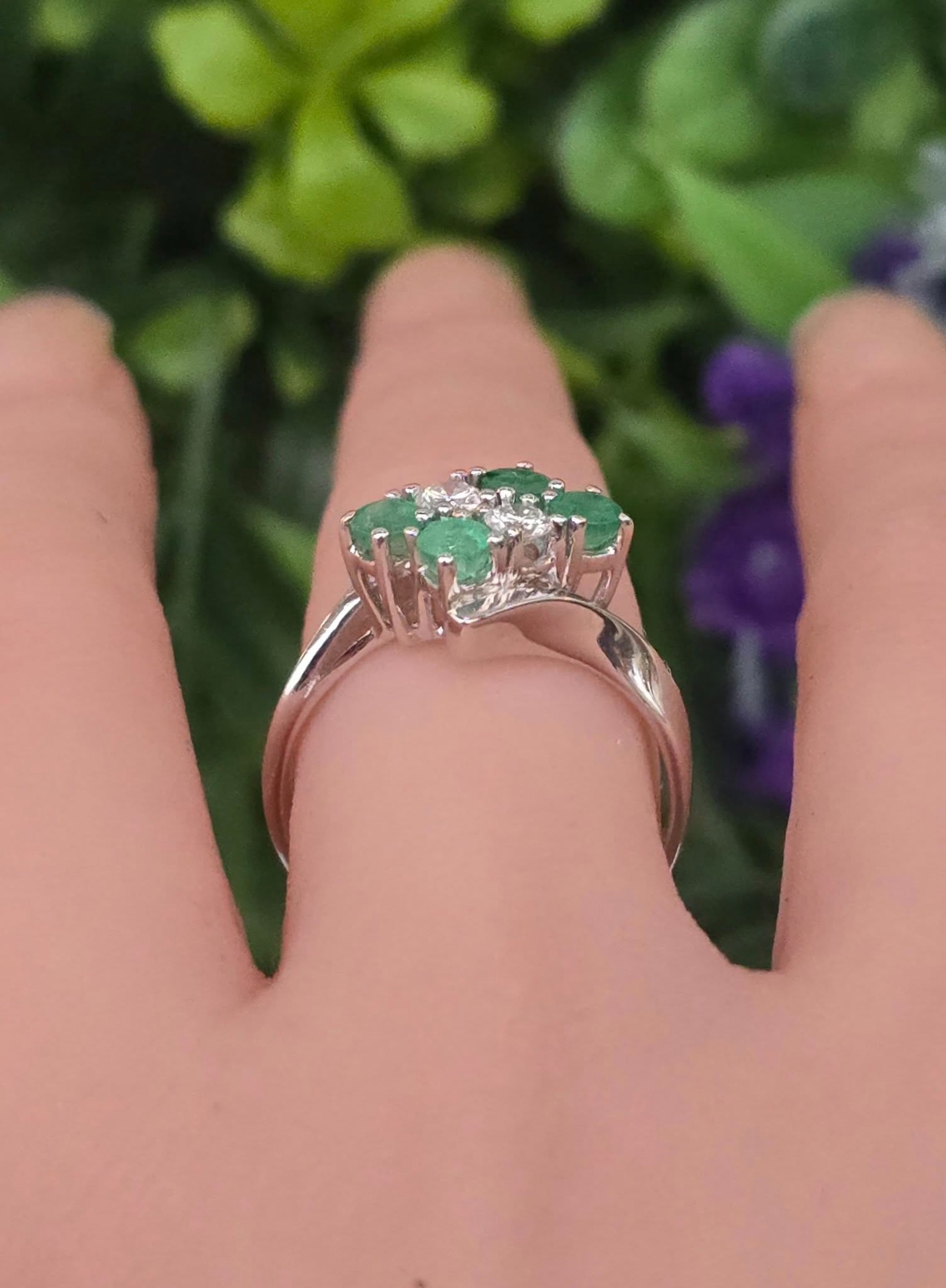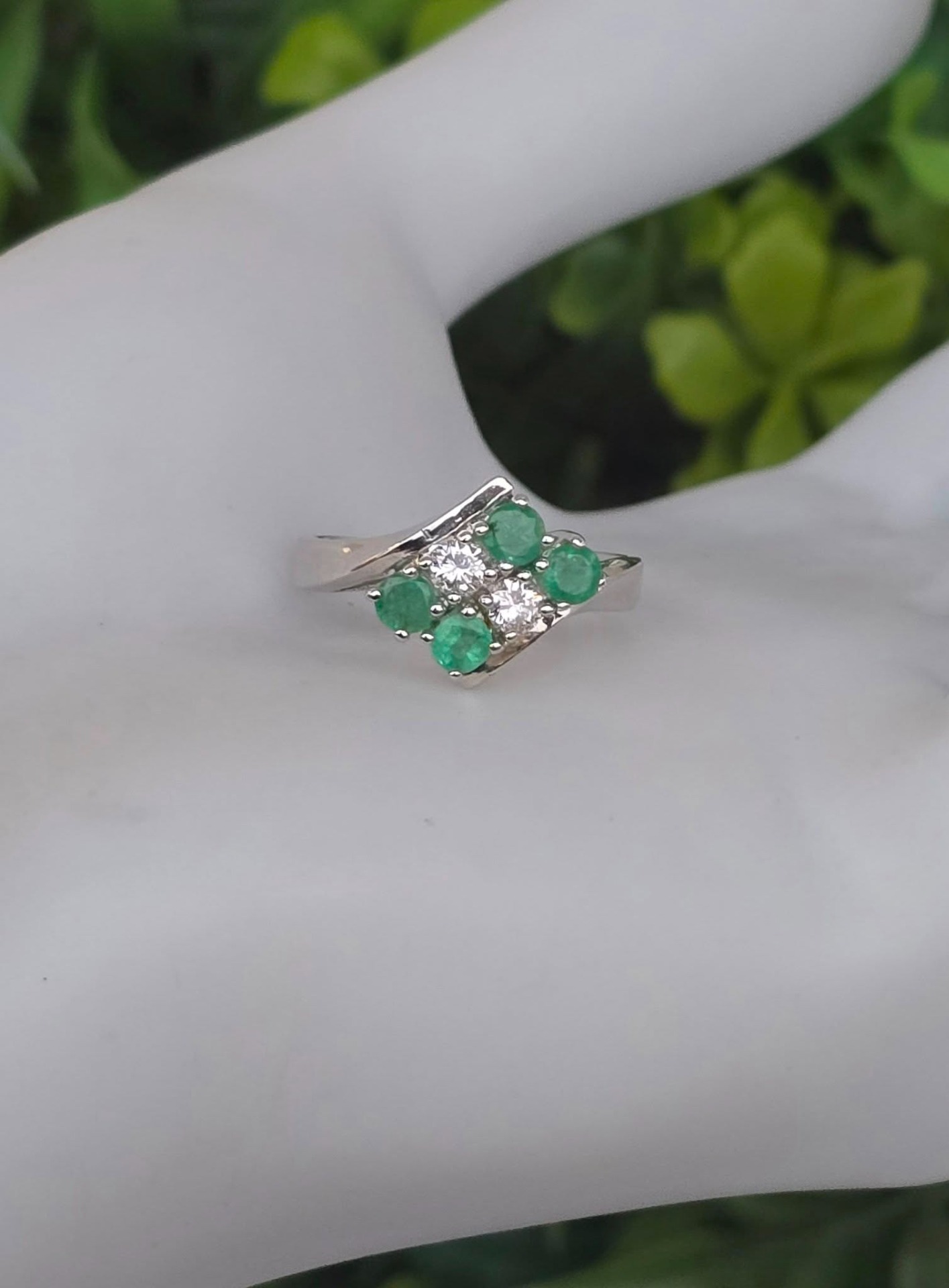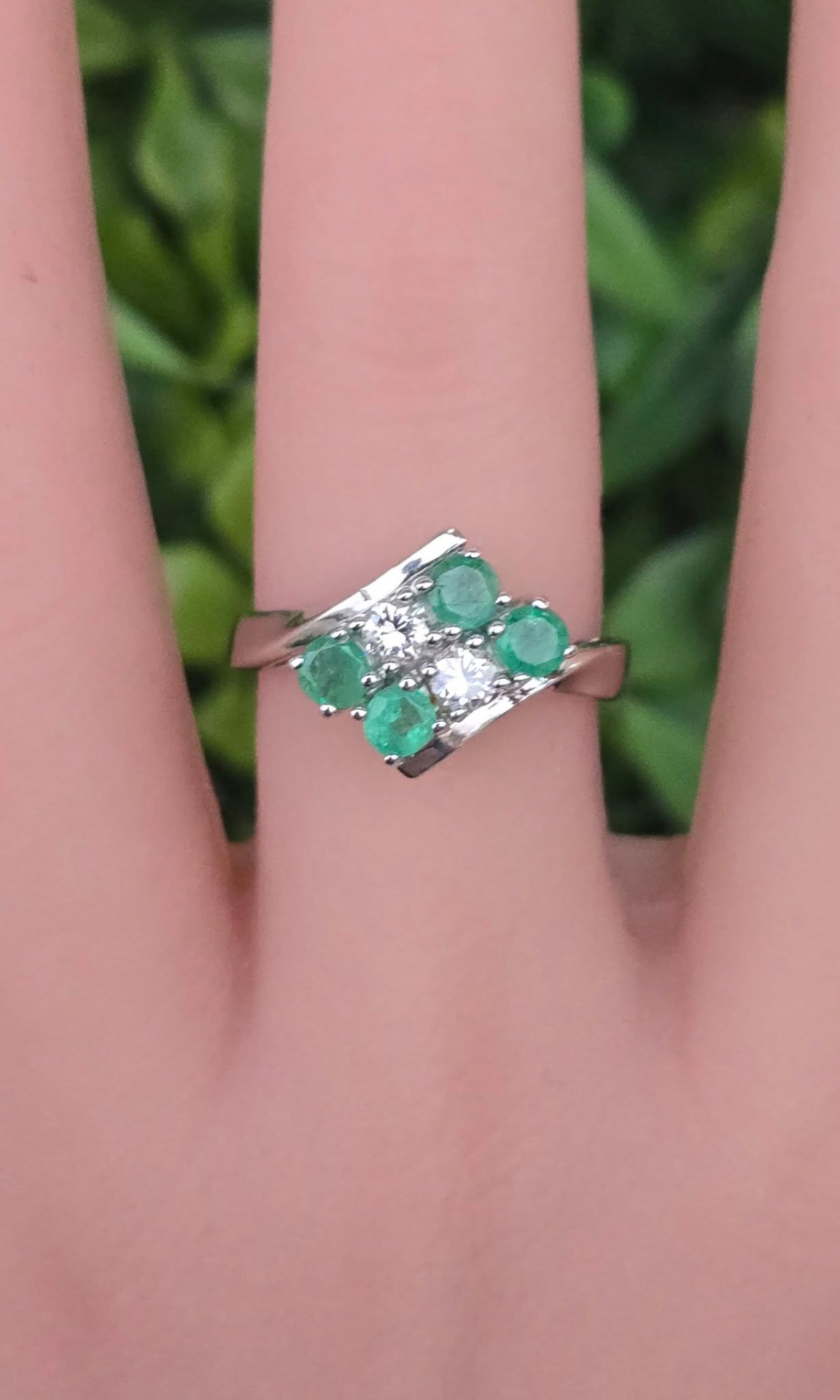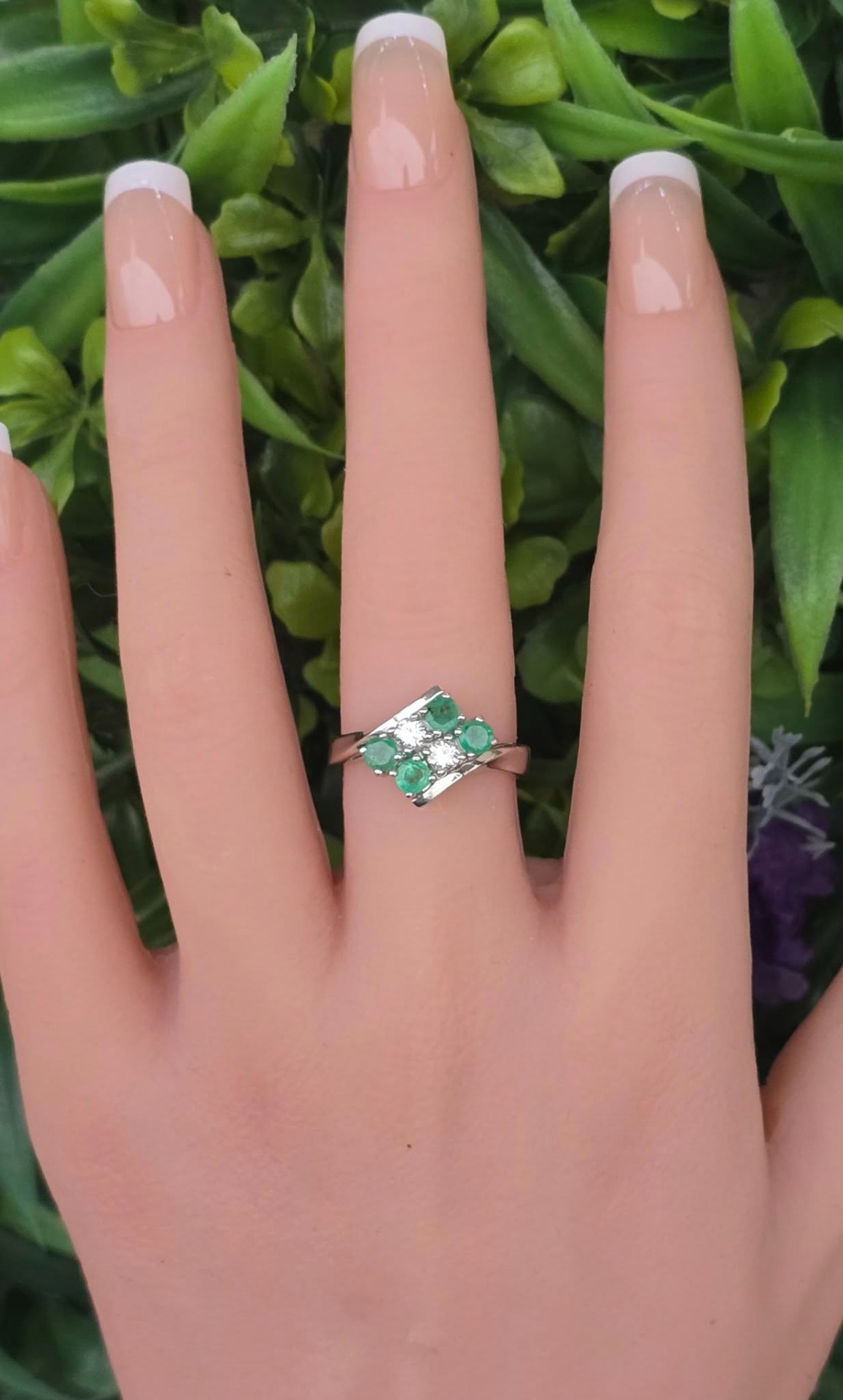 Inel vechi spectaculos, din aur de 14K, cu 2 superbe diamante și 4 smaralde naturale.