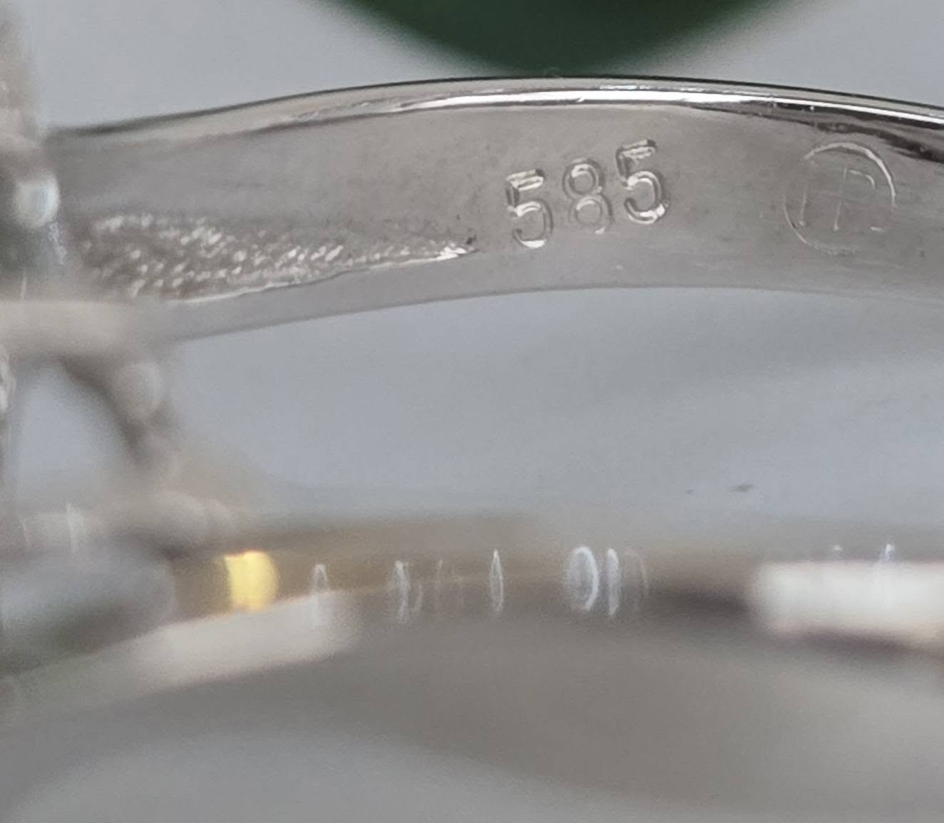 Prezintă marcaj 585 pentru puritate aur de 14K, marcaj "0.24" pentru caratajul diamantelor și marcaj de meșter.