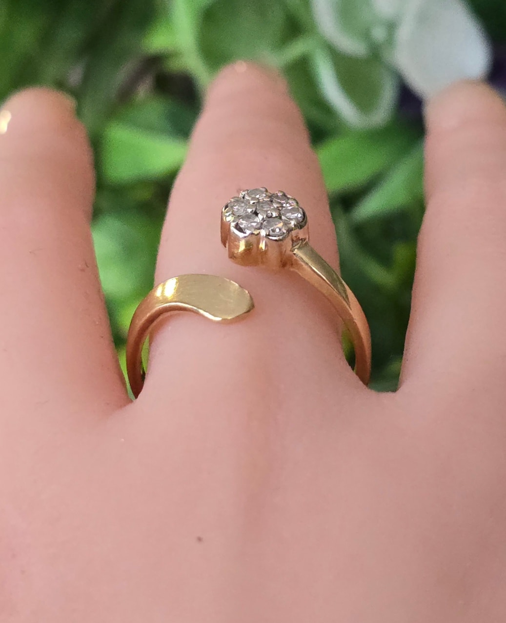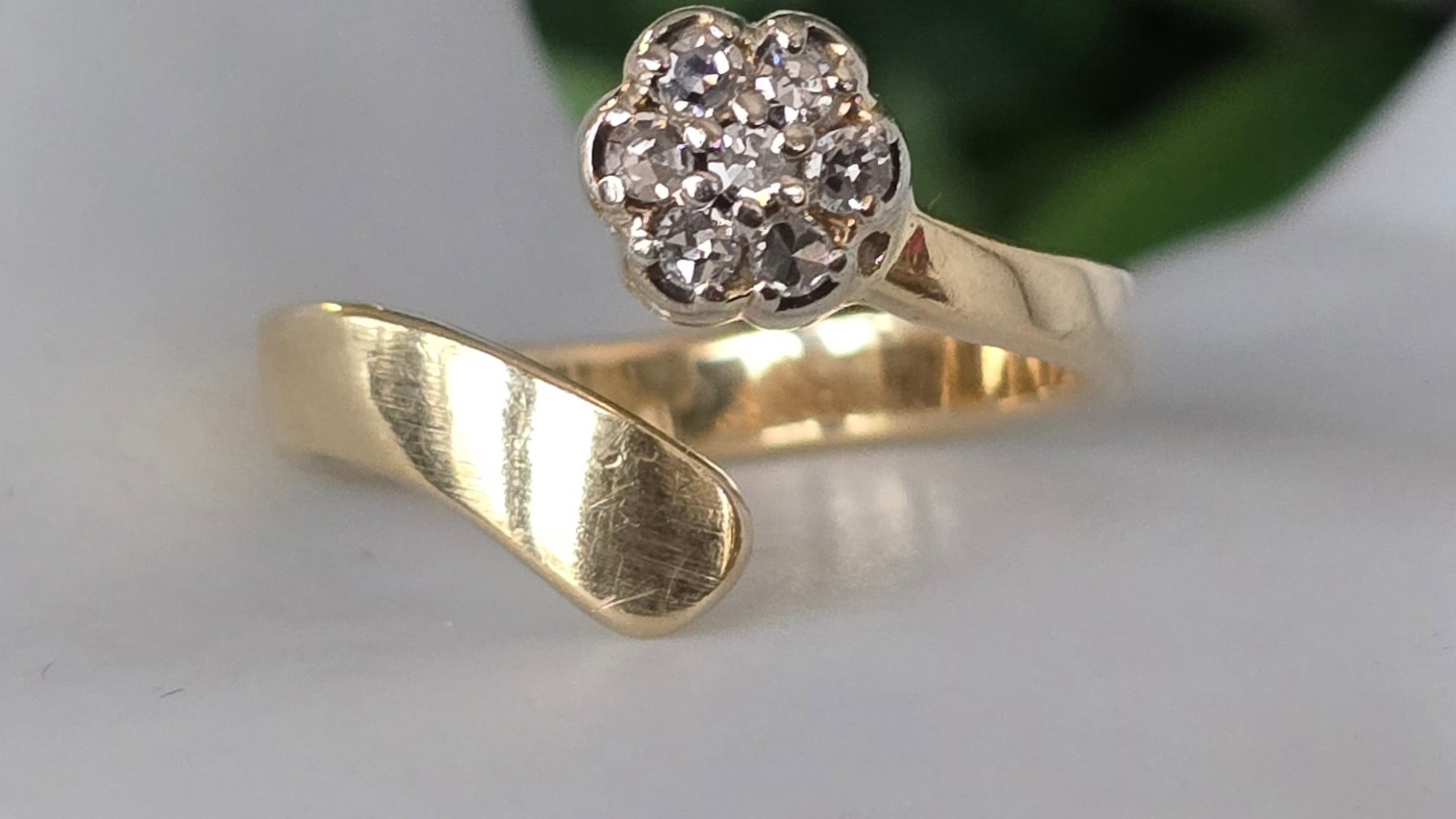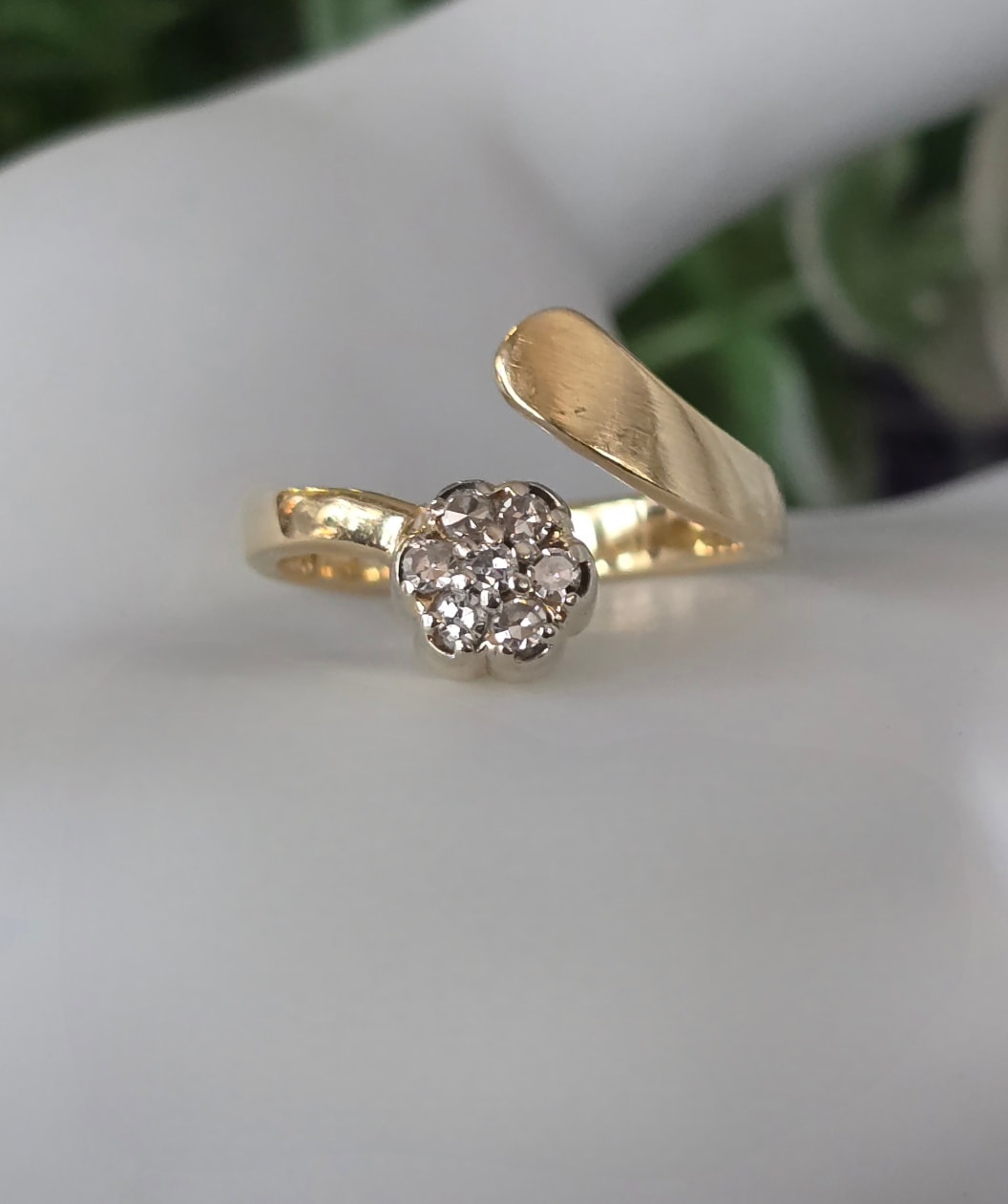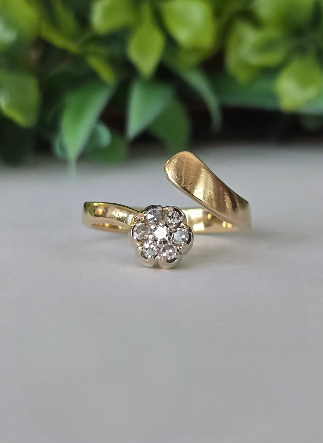 Inel vechi spectaculos, din aur de 14K, cu 7 superbe diamante naturale de calitate superioară.