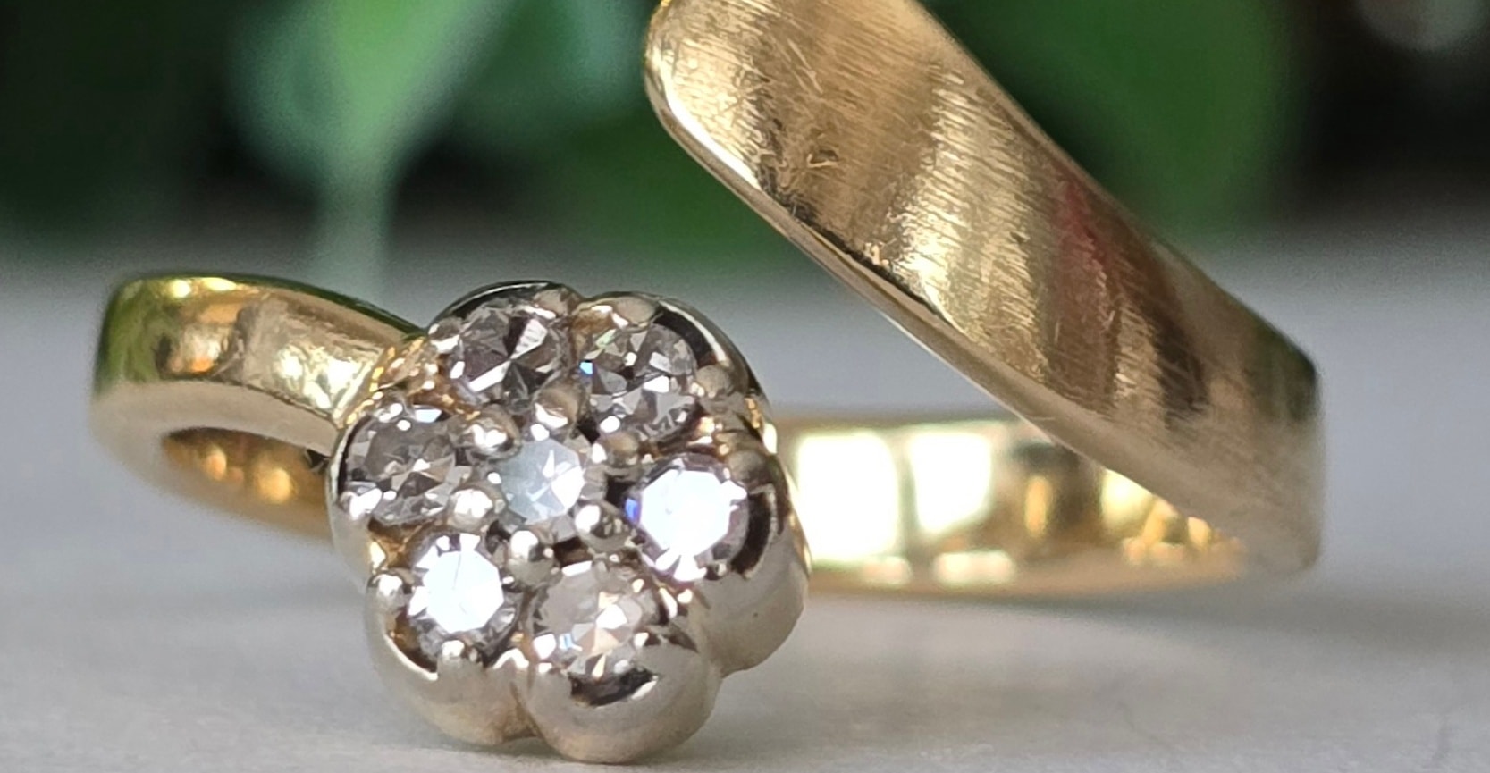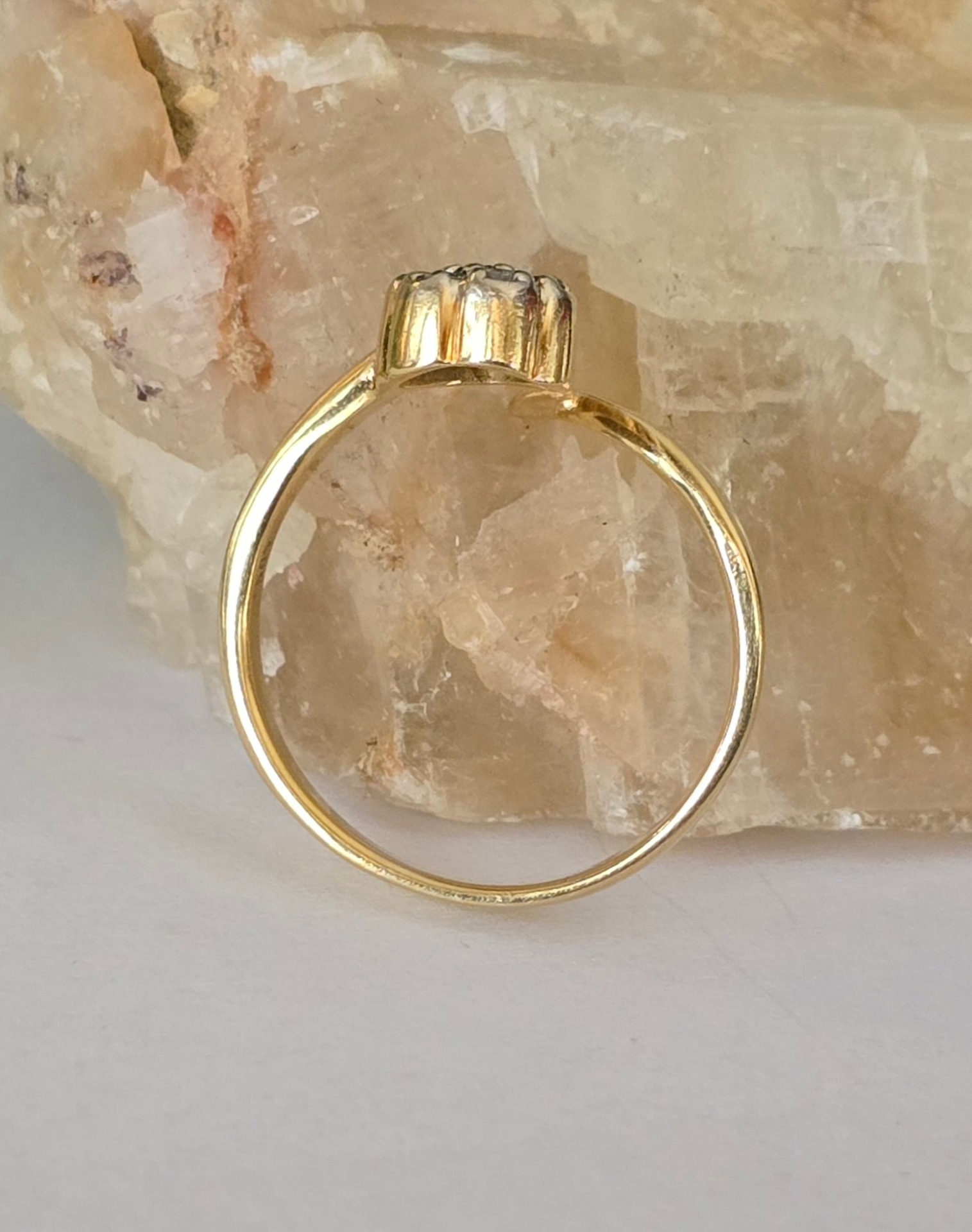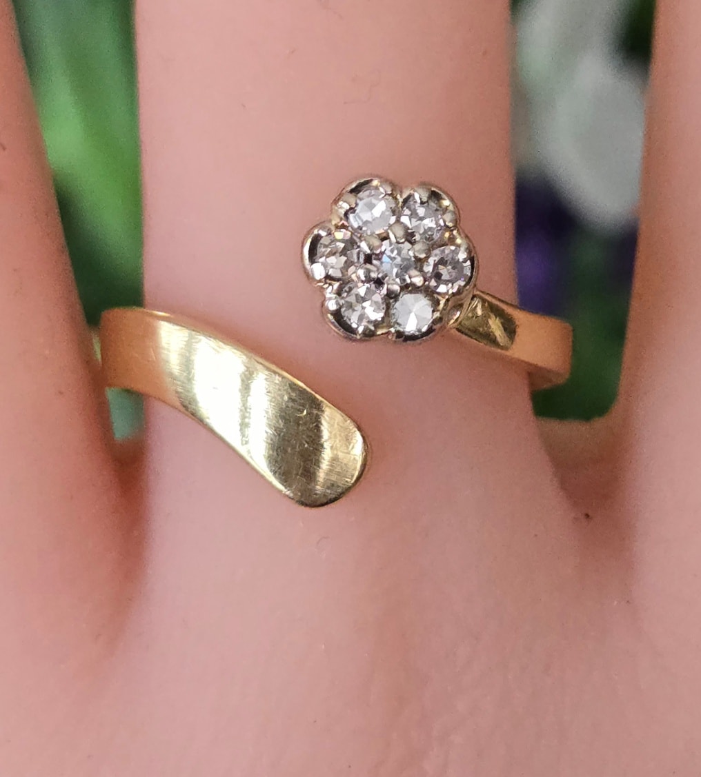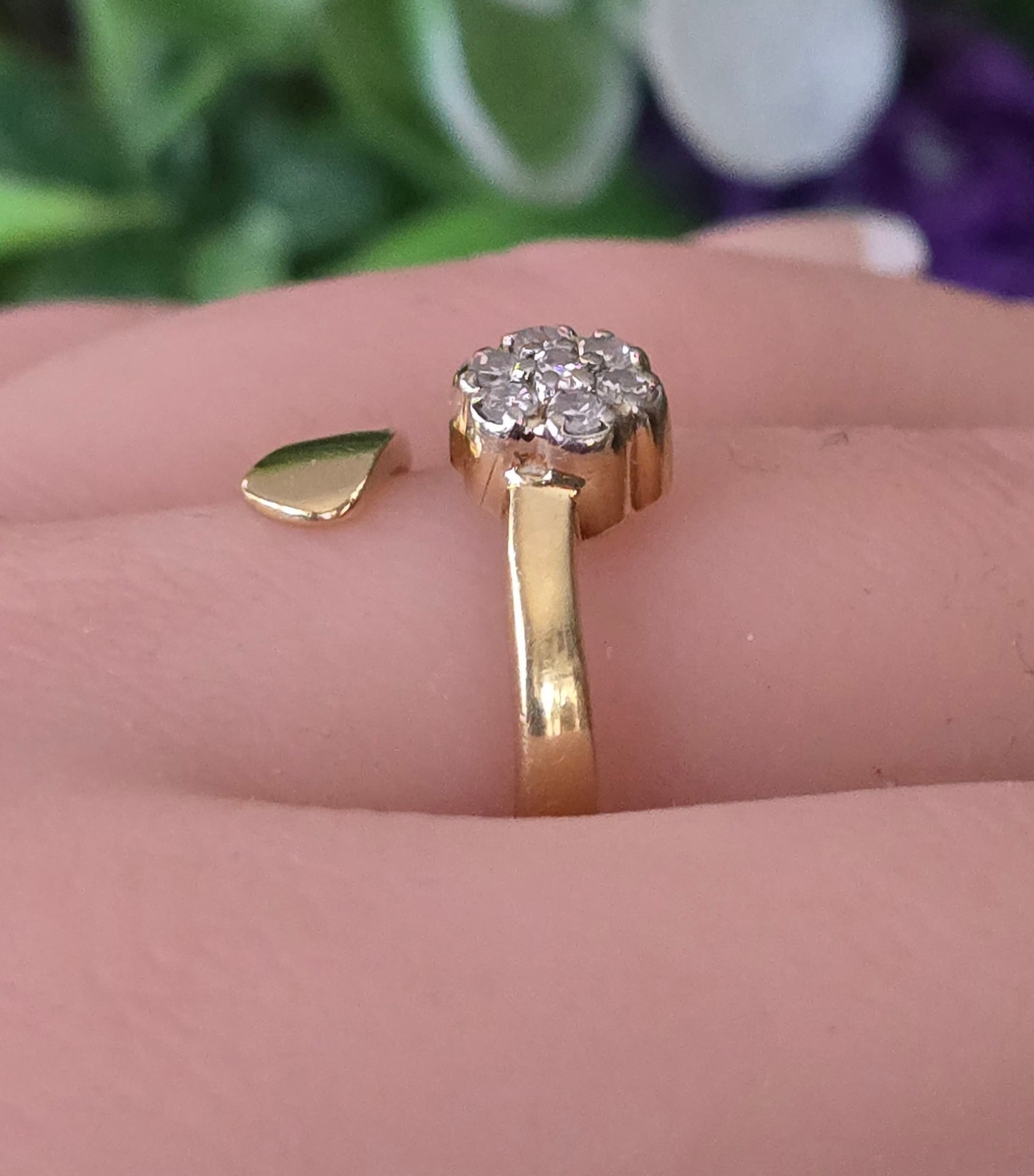 Inel vechi spectaculos, din aur de 14K, cu 7 superbe diamante naturale de calitate superioară.