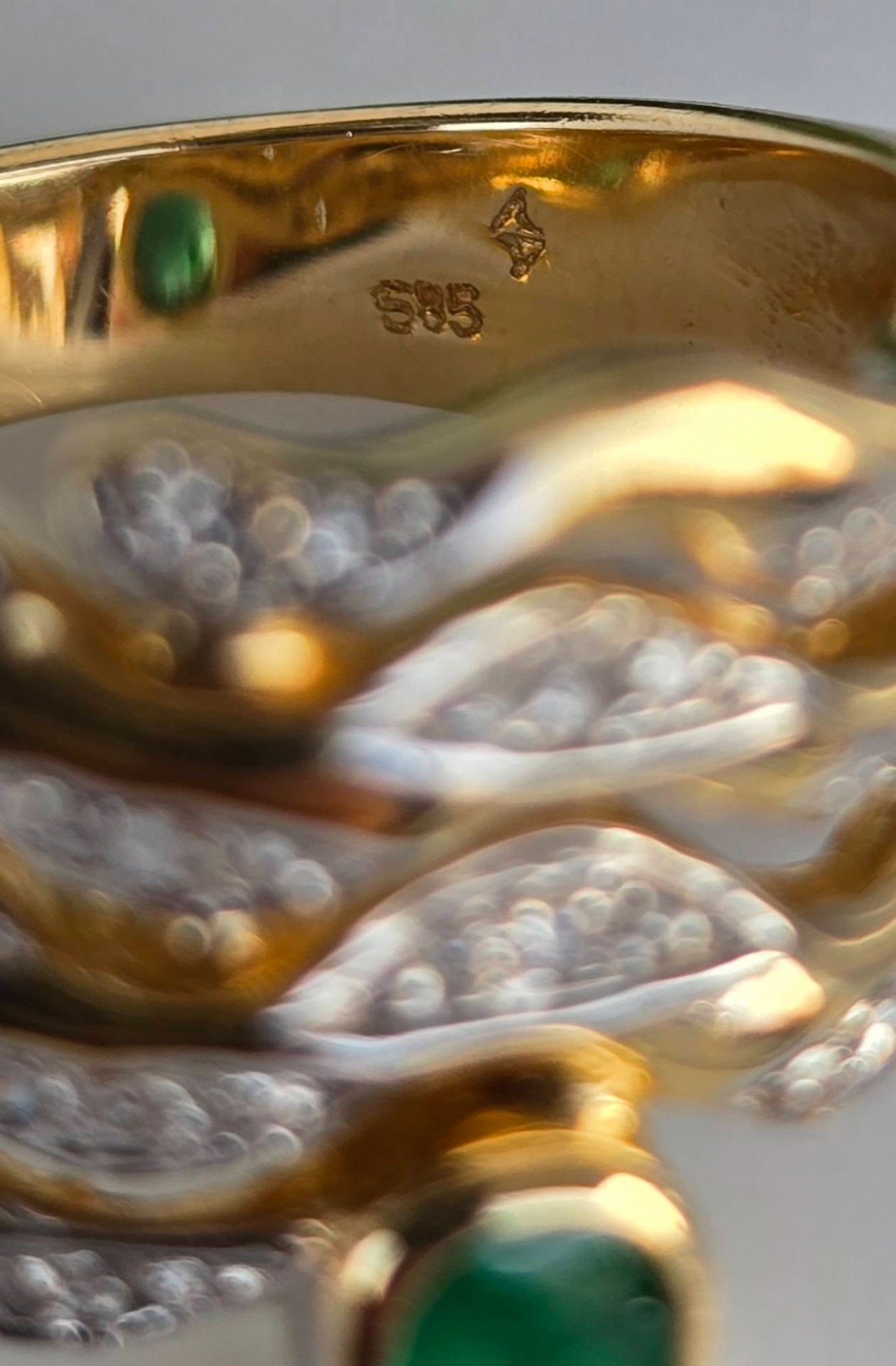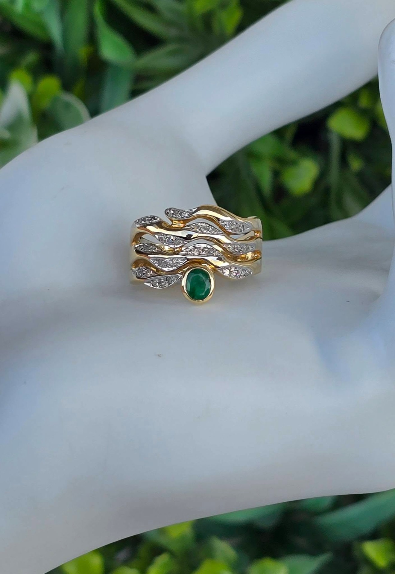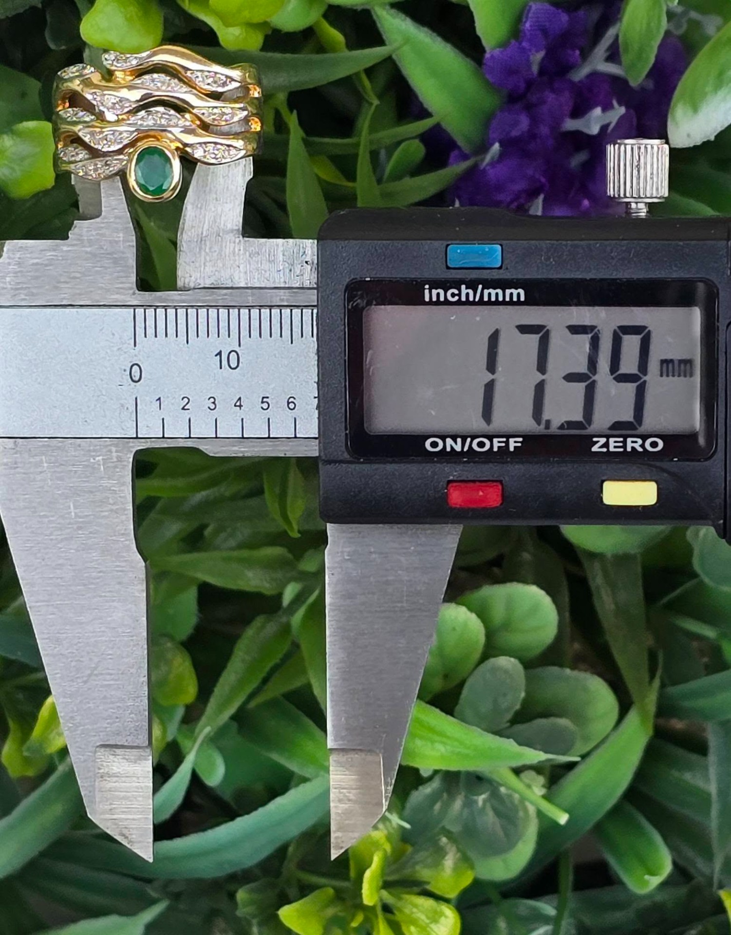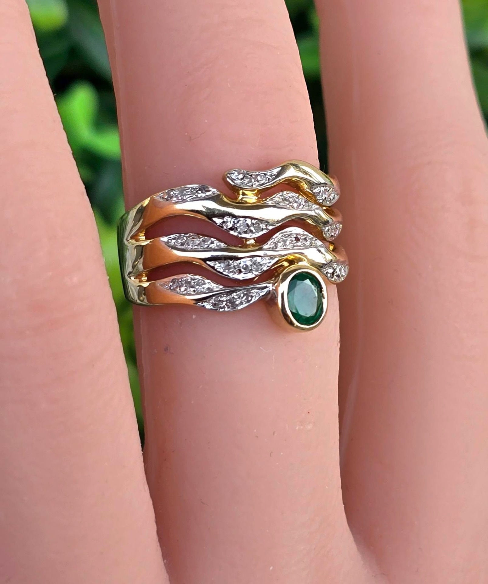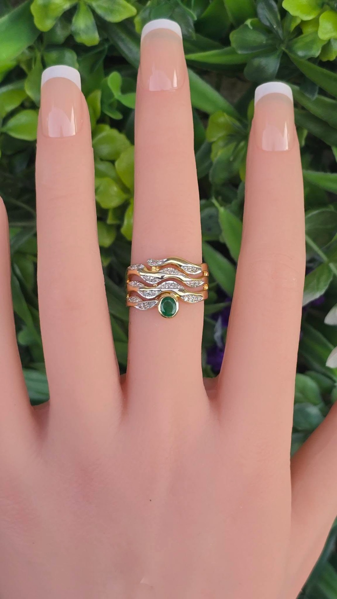 Inel vechi spectaculos, din aur de 14K, cu smarald și 36 diamante naturale.