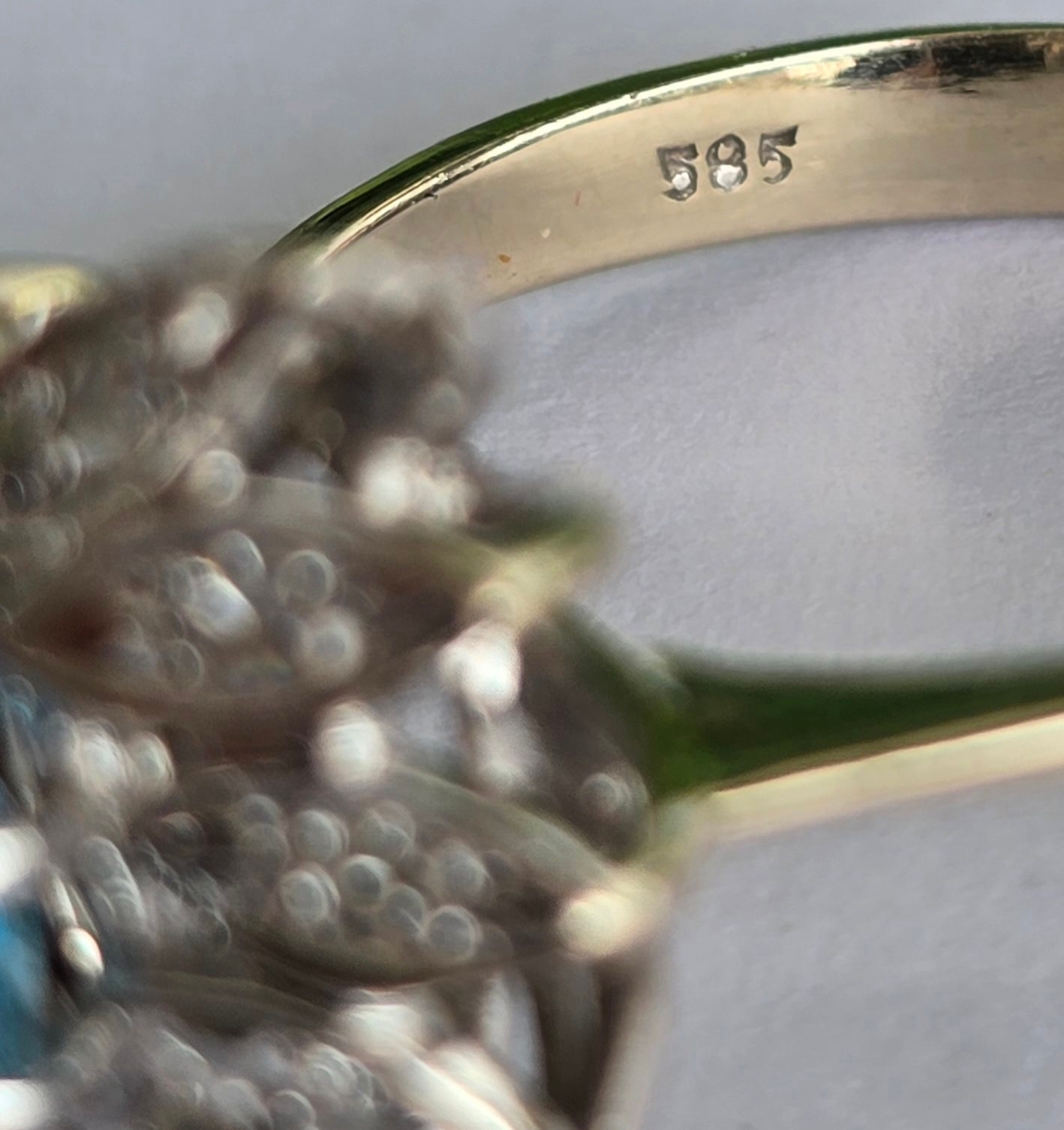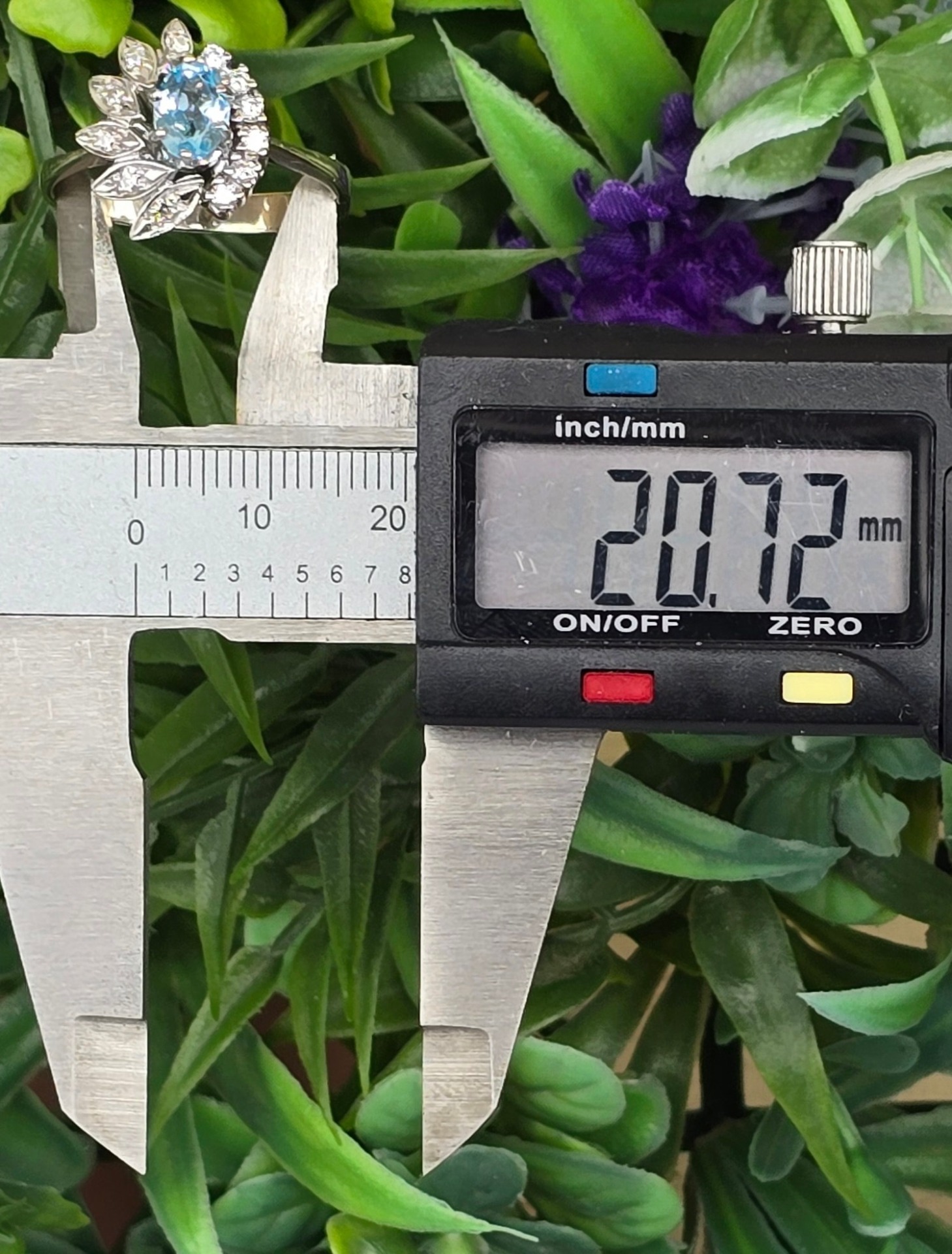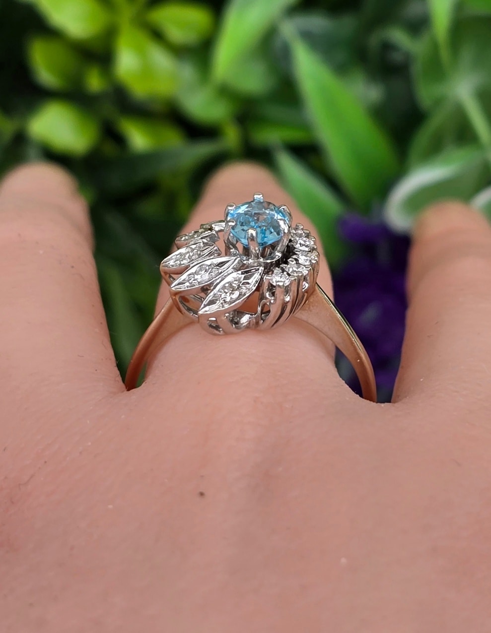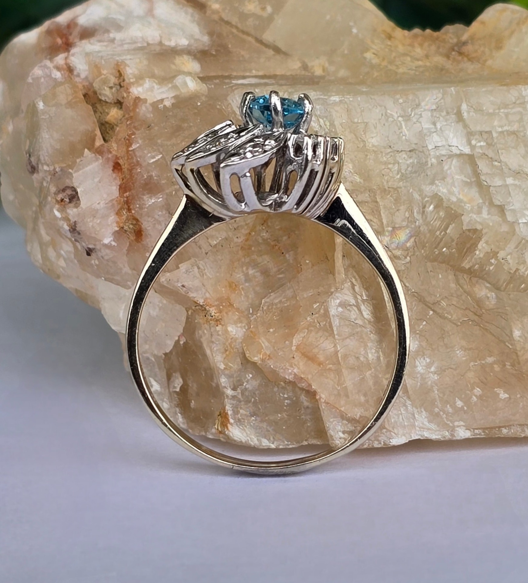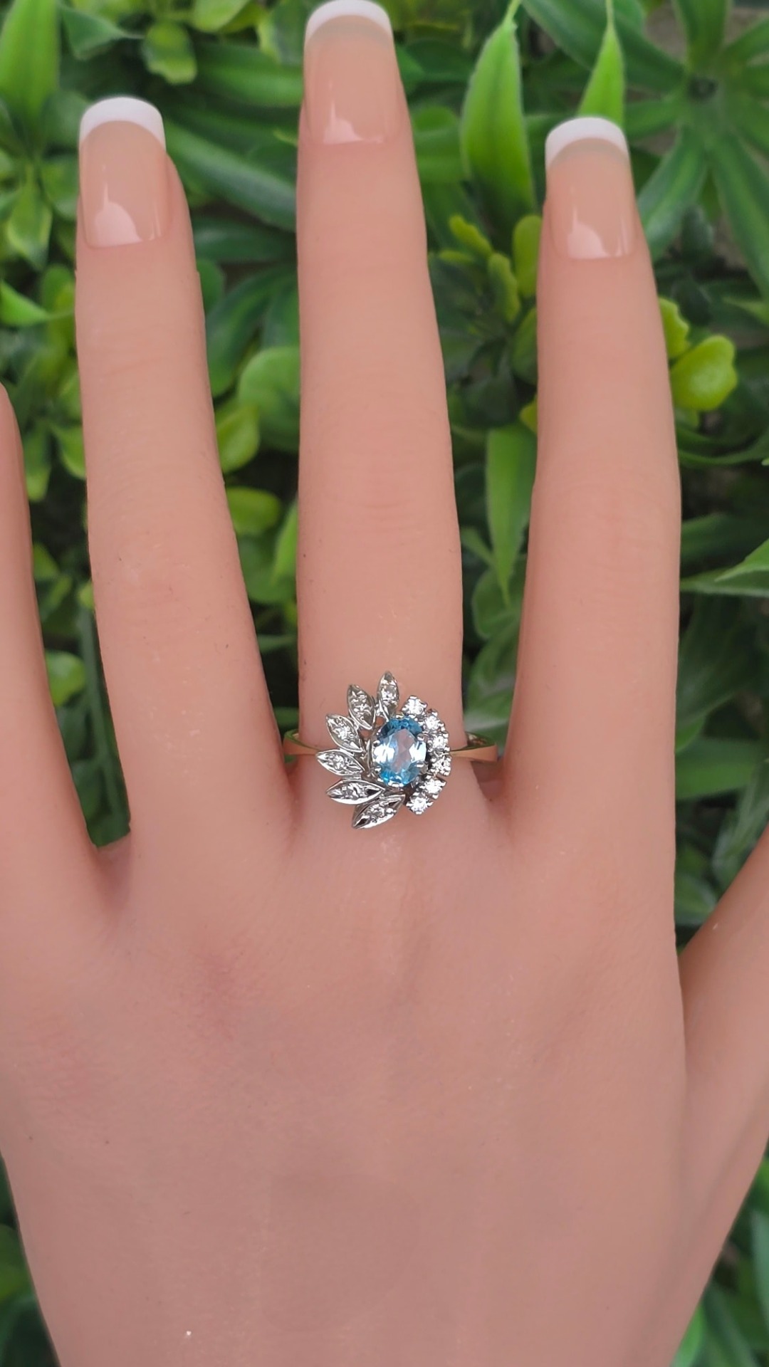Inel vechi spectaculos, din aur de 14K, cu topaz și 12 diamante naturale de calitate superioară.