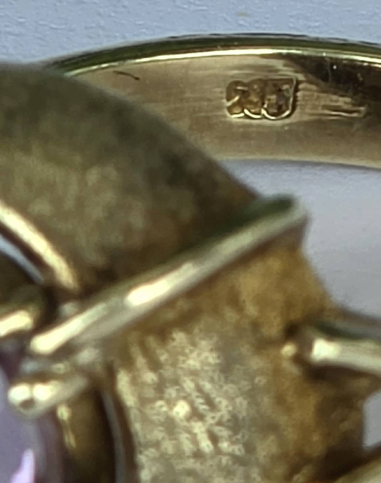Prezintă marcaj 585 pentru puritate aur de 14K.