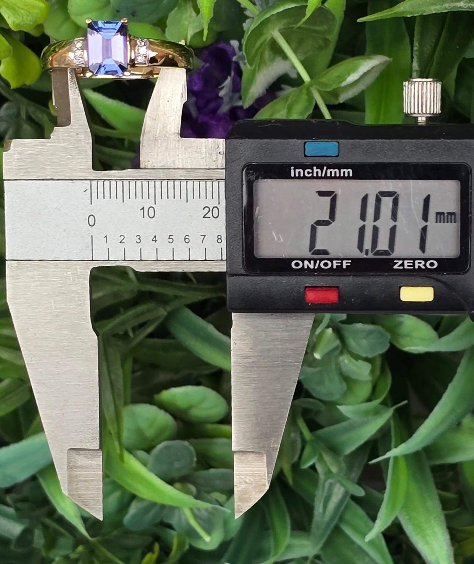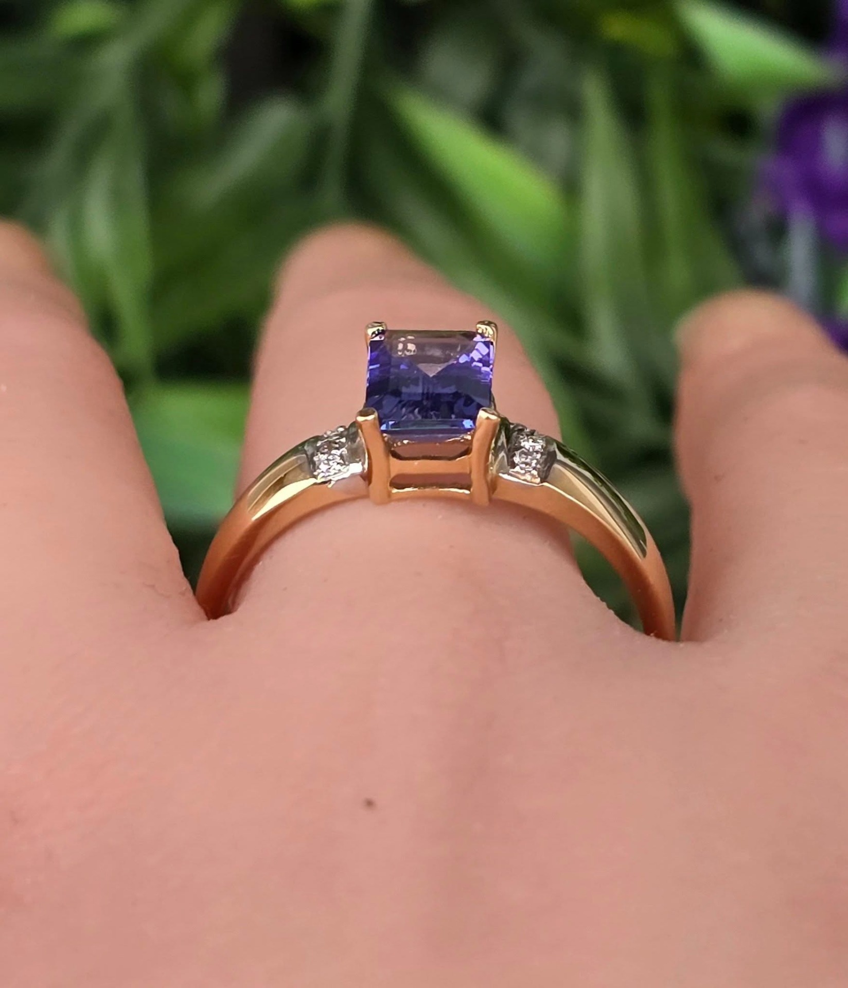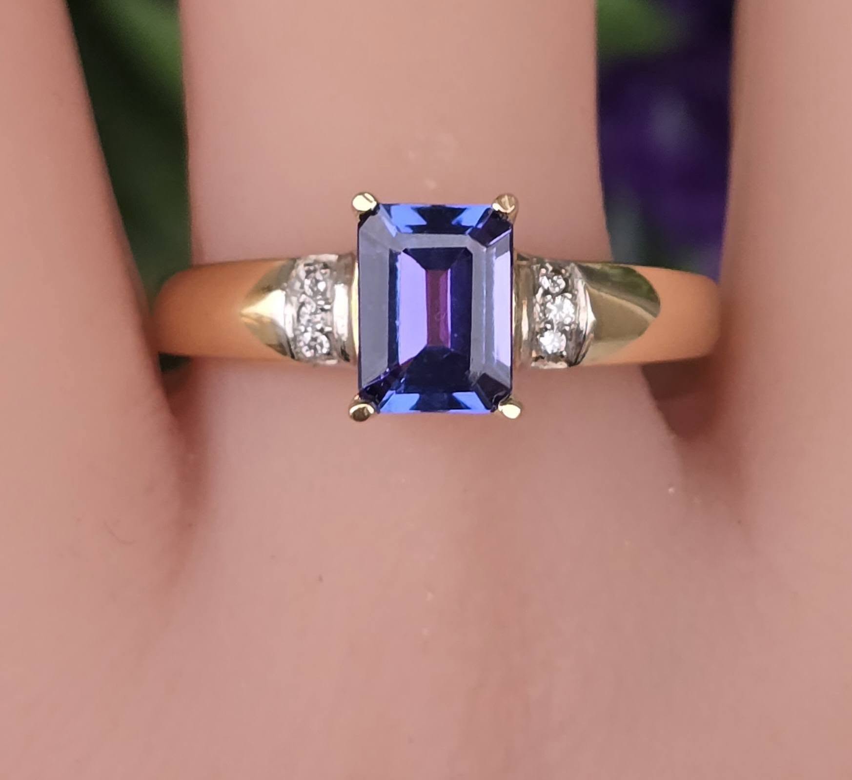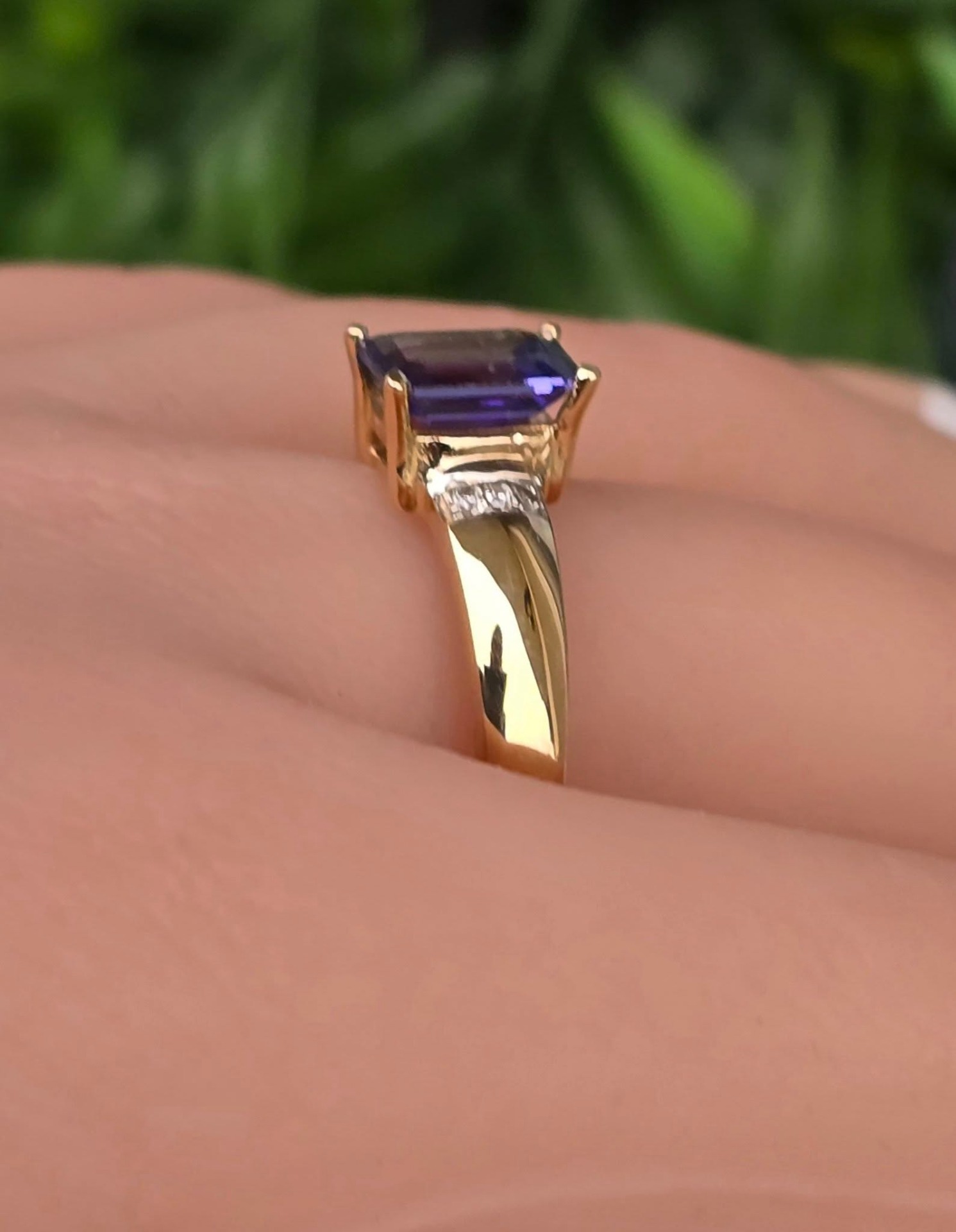 Inel vechi spectaculos, din aur de 14K, cu un superb tanzanit și 6 diamante naturale.