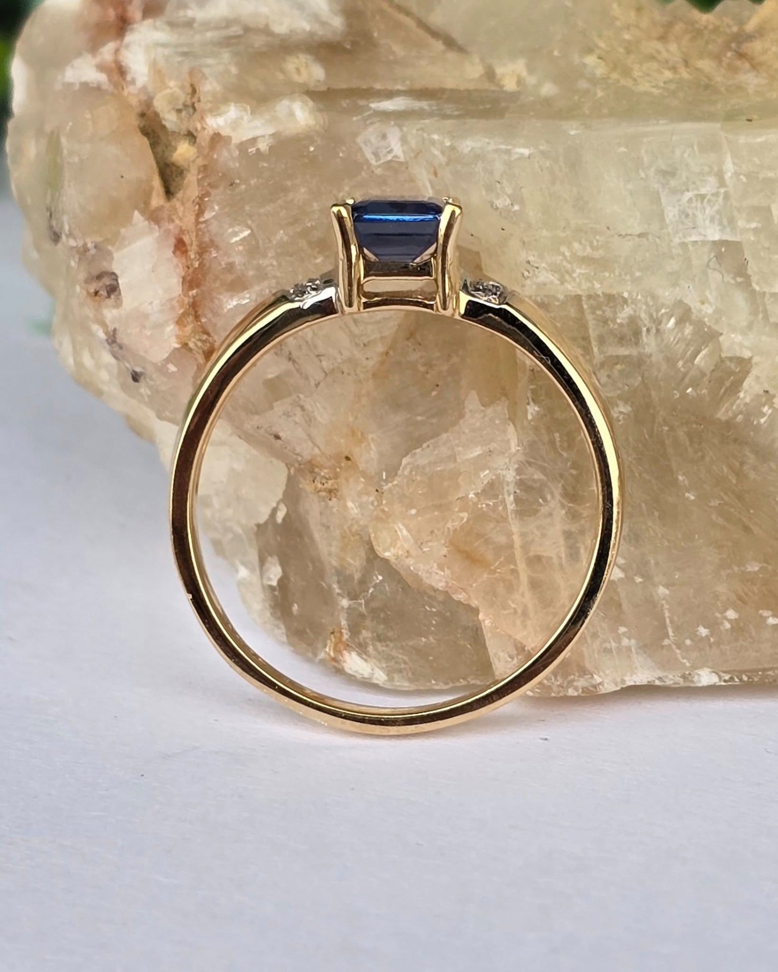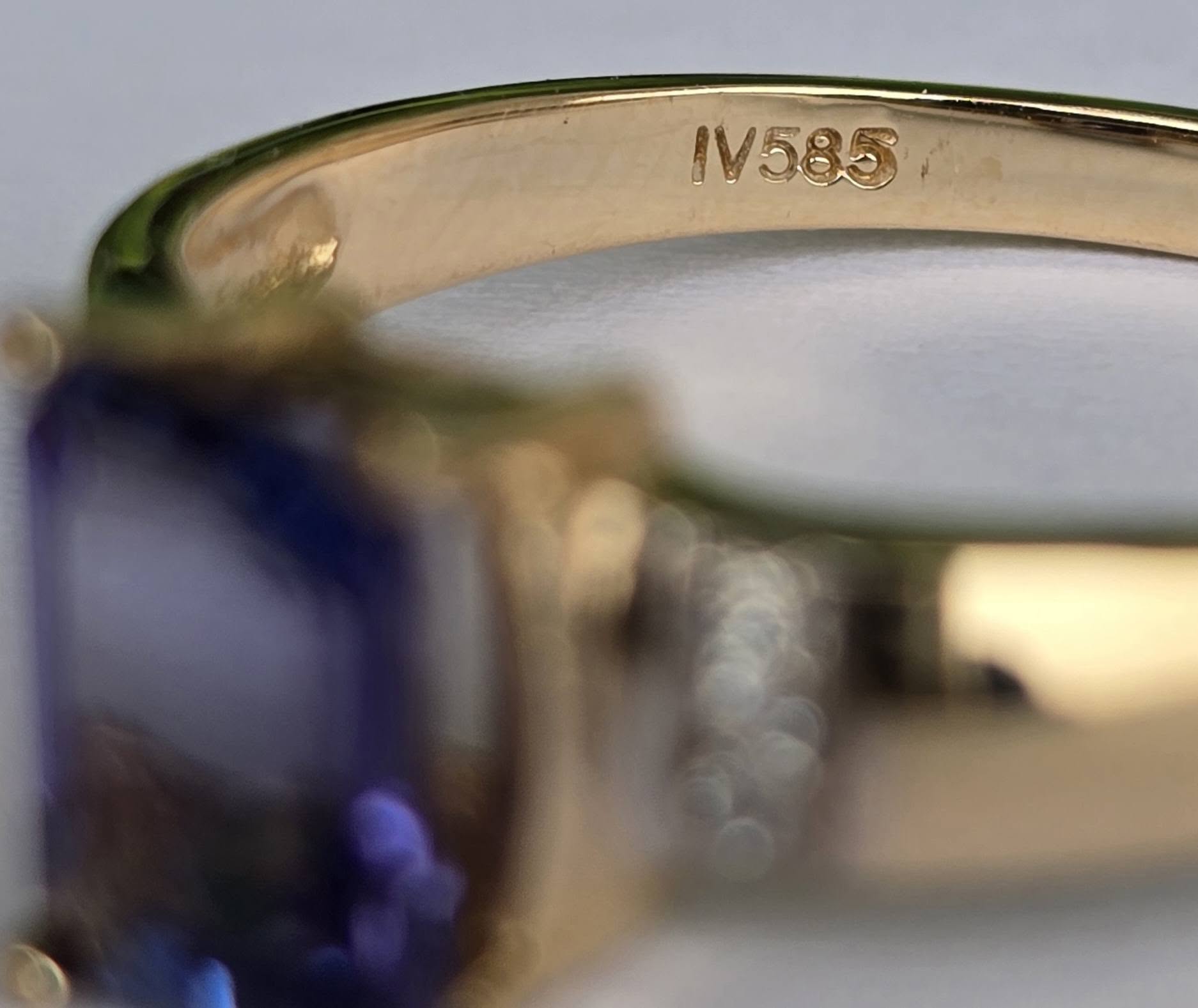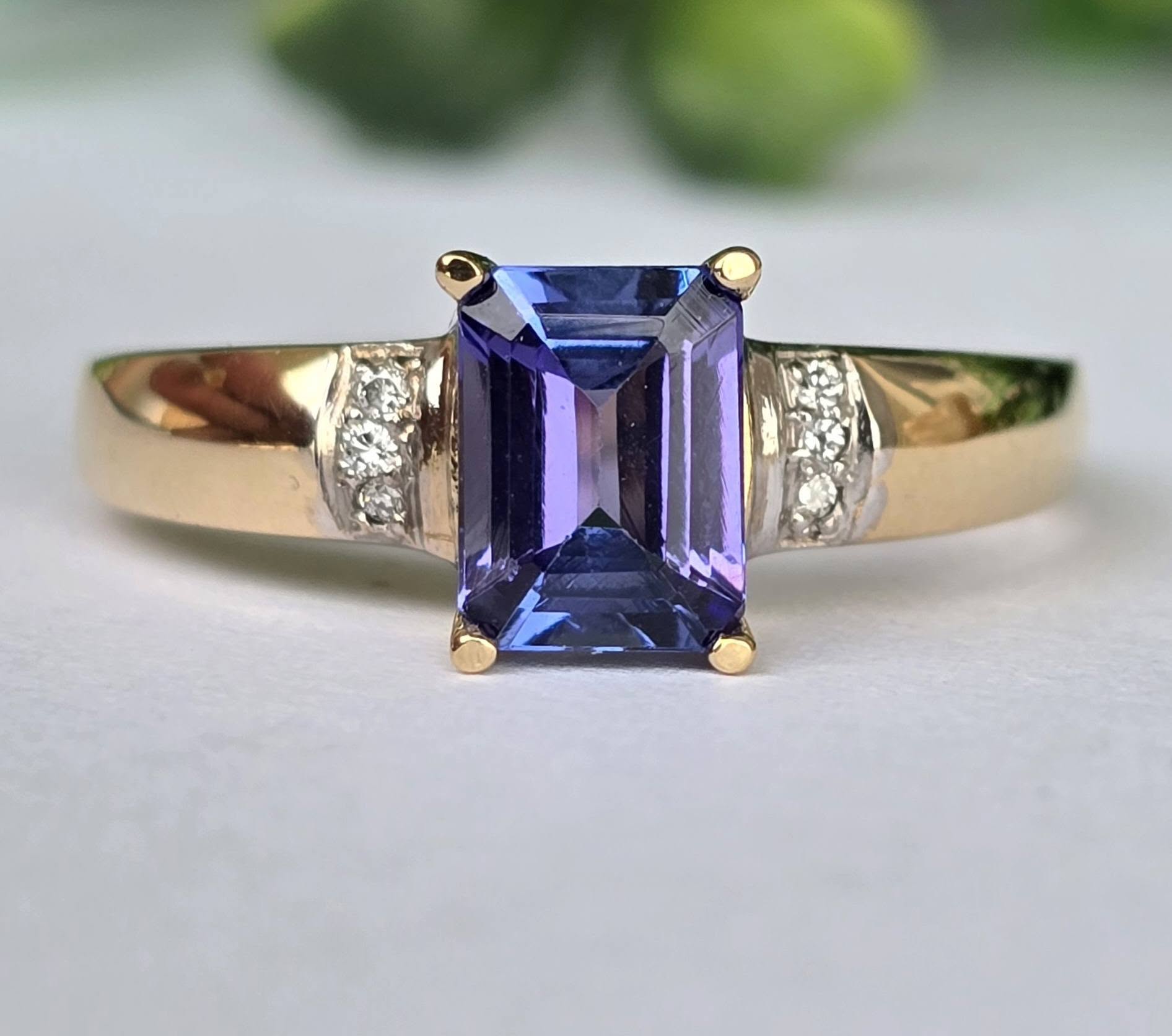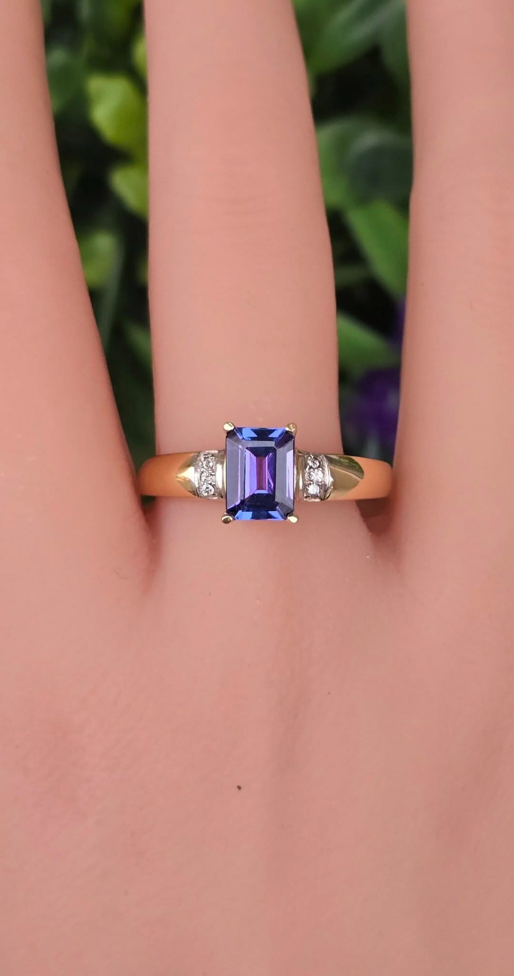 Inel vechi spectaculos, din aur de 14K, cu un superb tanzanit și 6 diamante naturale.