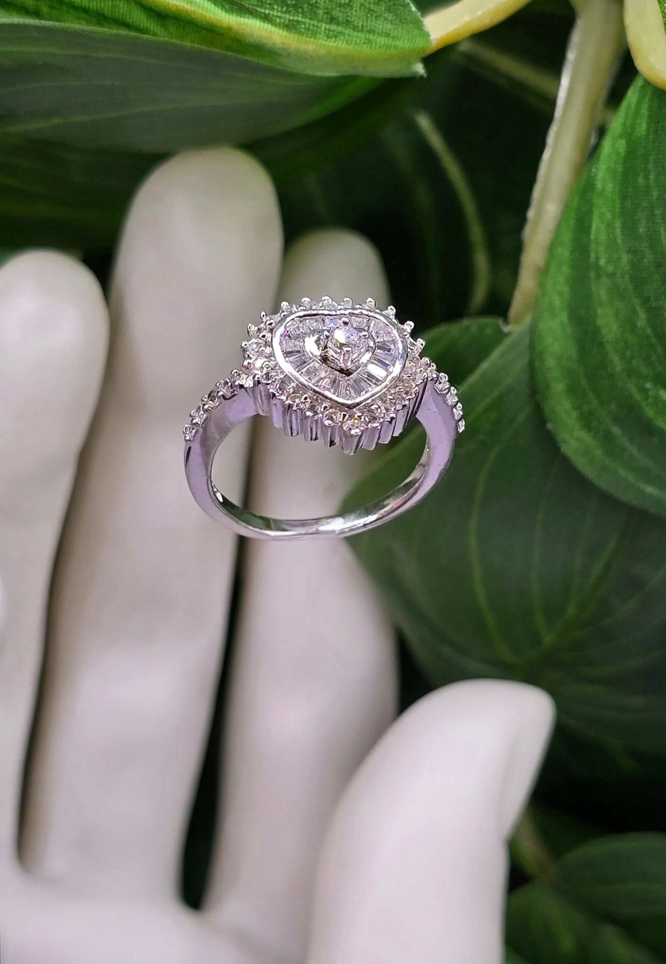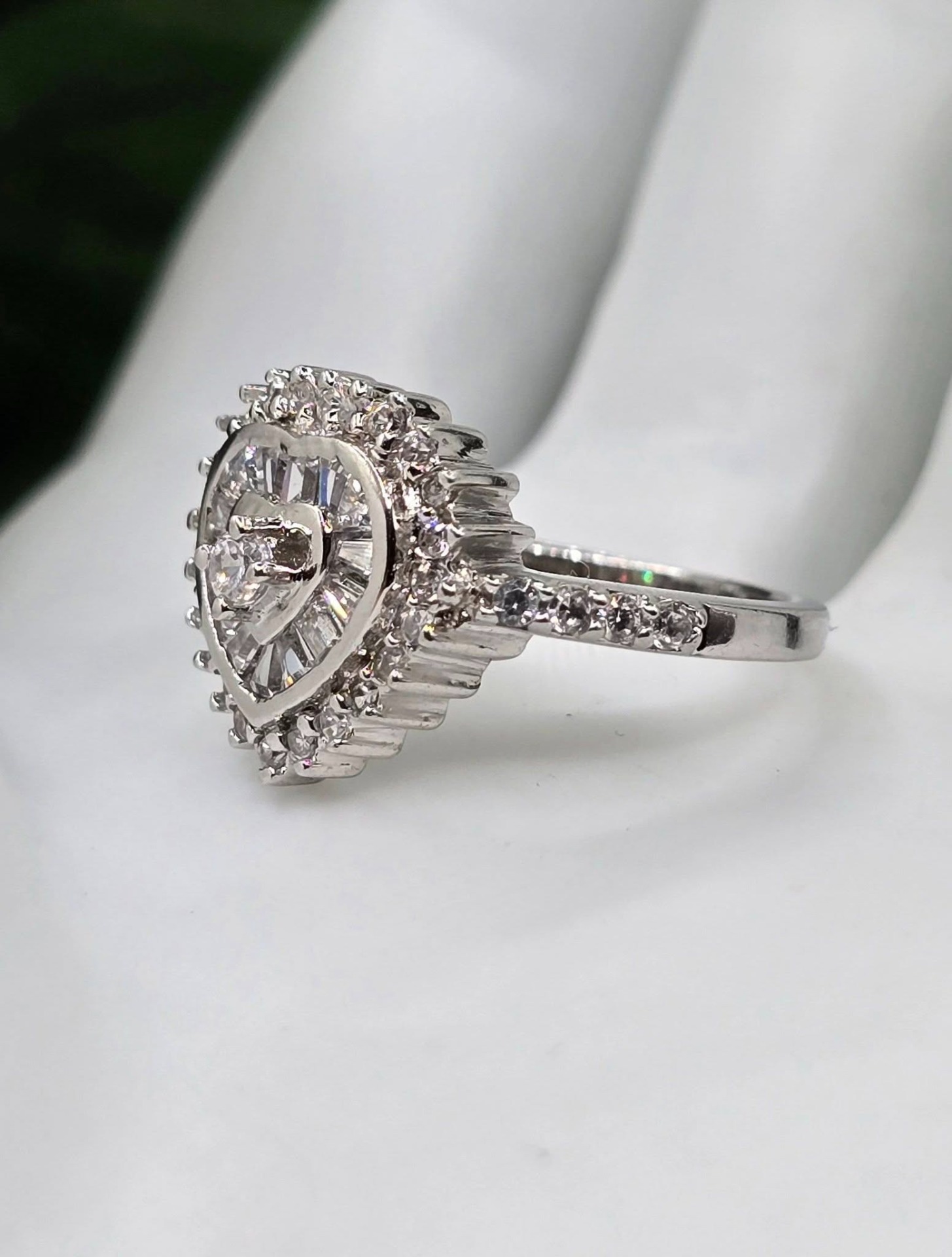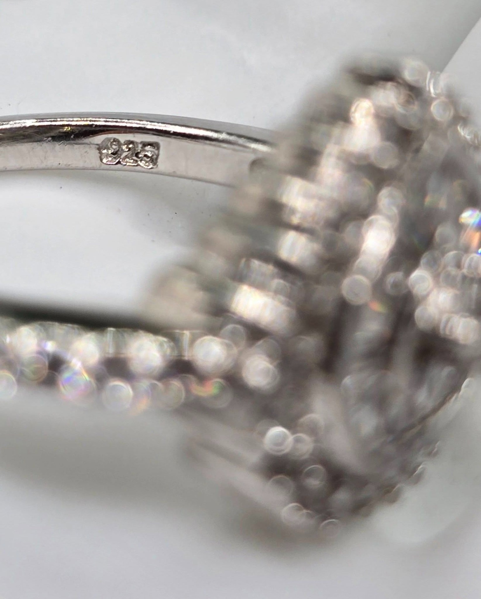Inel vechi strălucitor, din argint, cu pietre cubic zirconia.