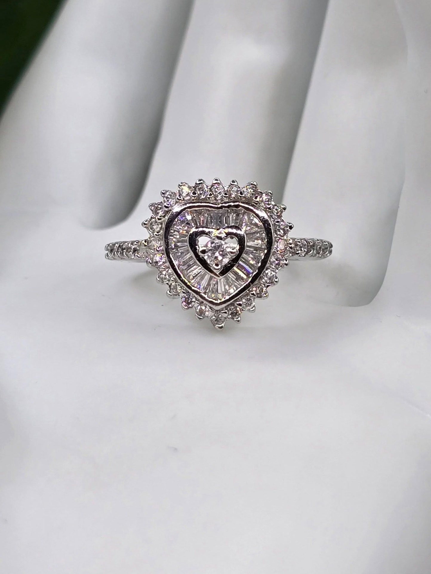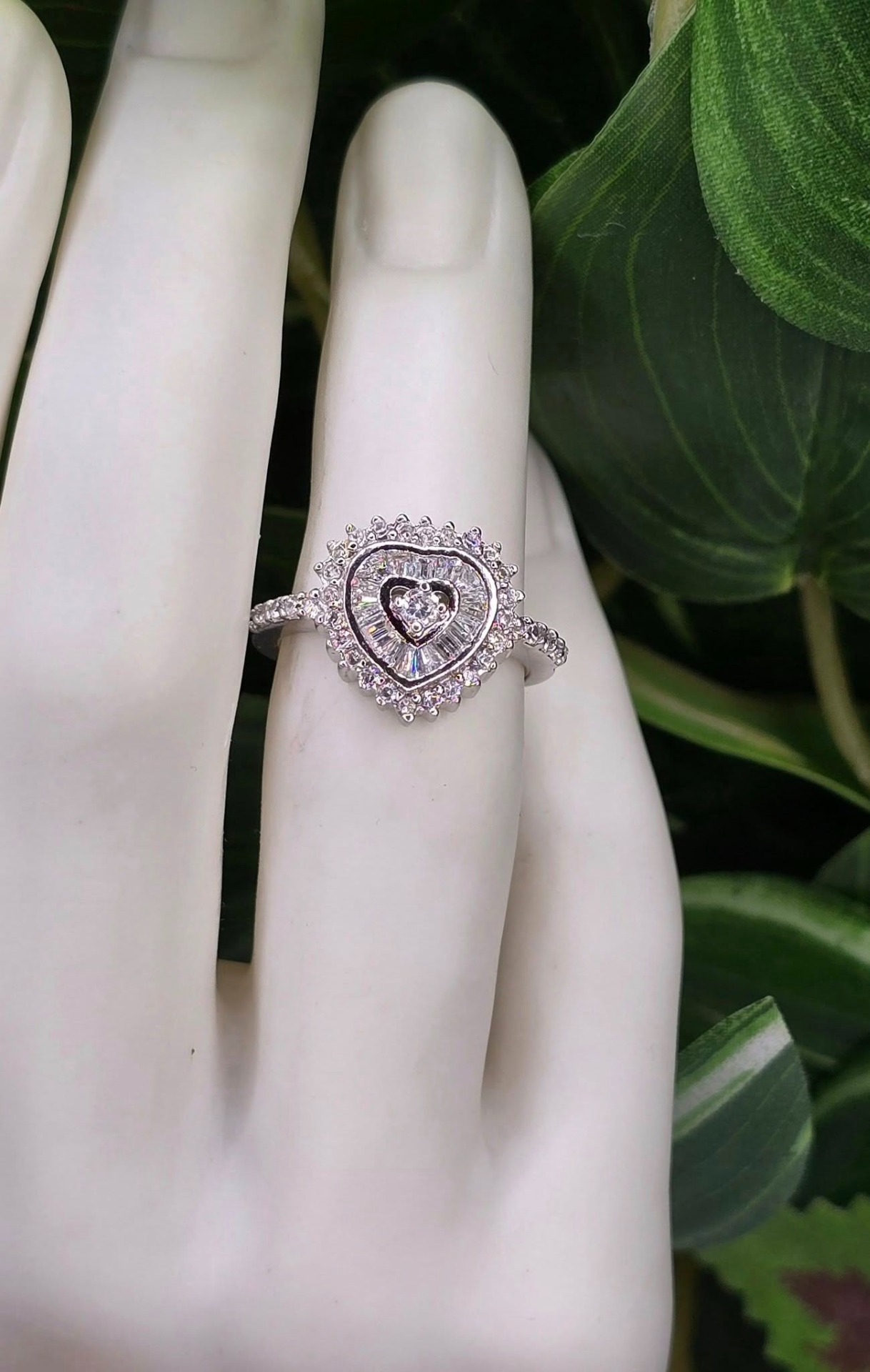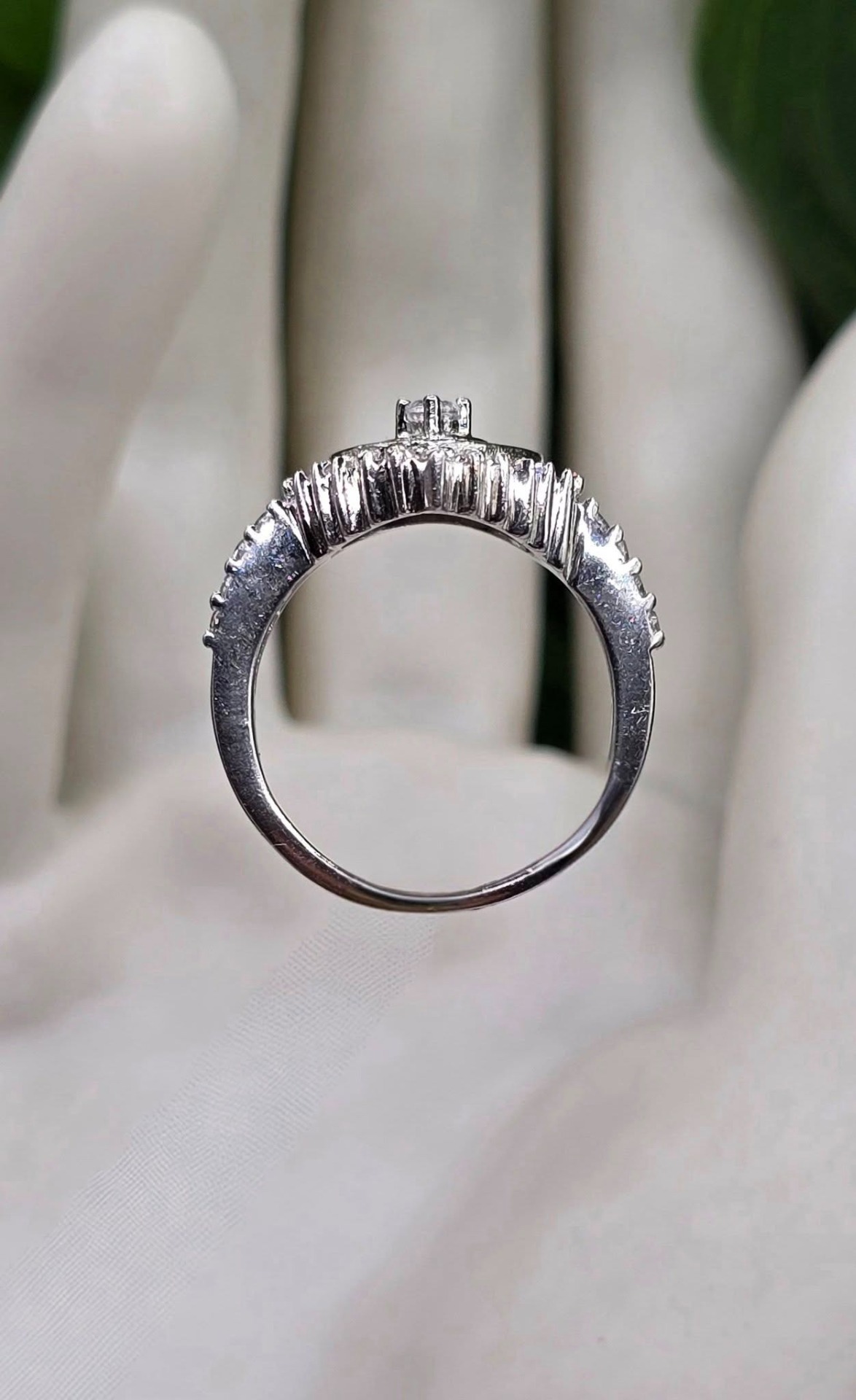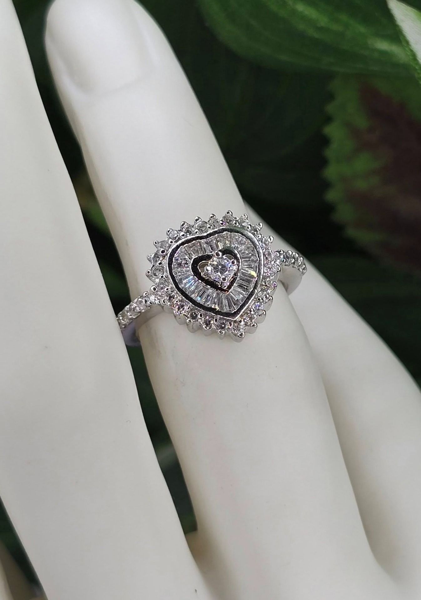 Inel vechi strălucitor, din argint, cu pietre cubic zirconia.