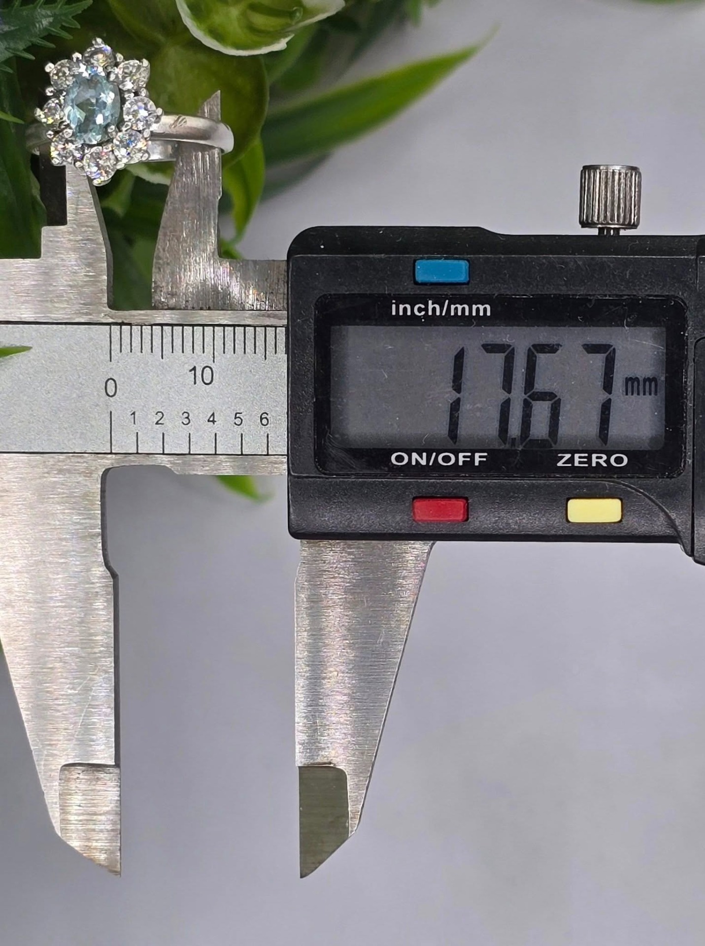Inel vechi strălucitor, din argint, cu topaz "sky blue" natural și pietre cubic zirconia.