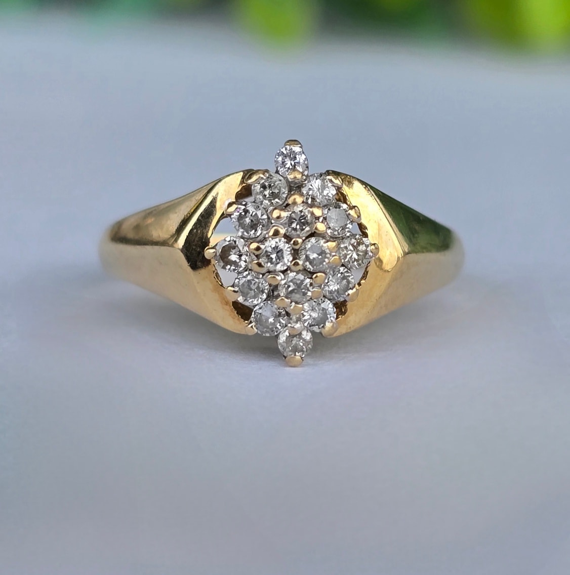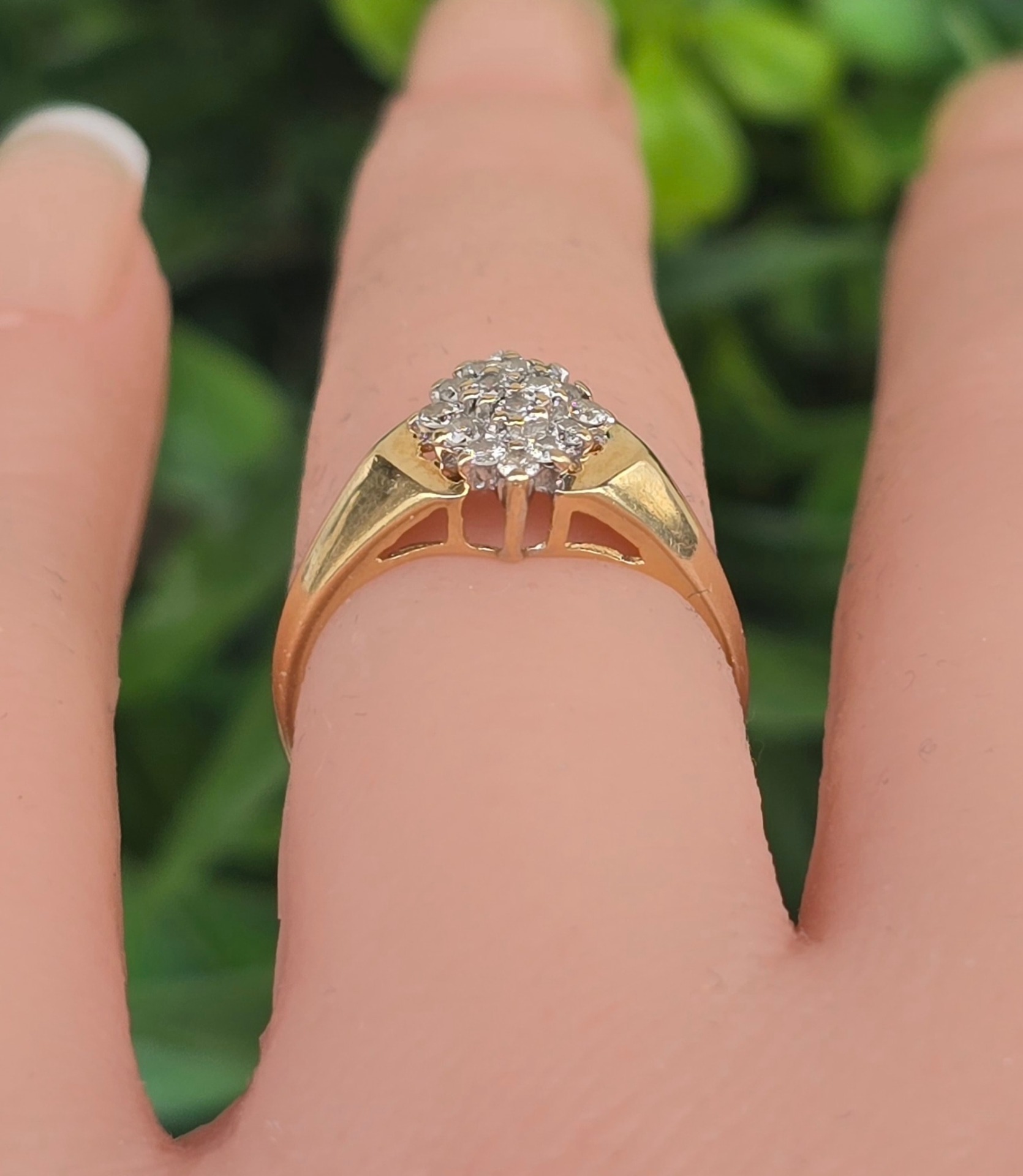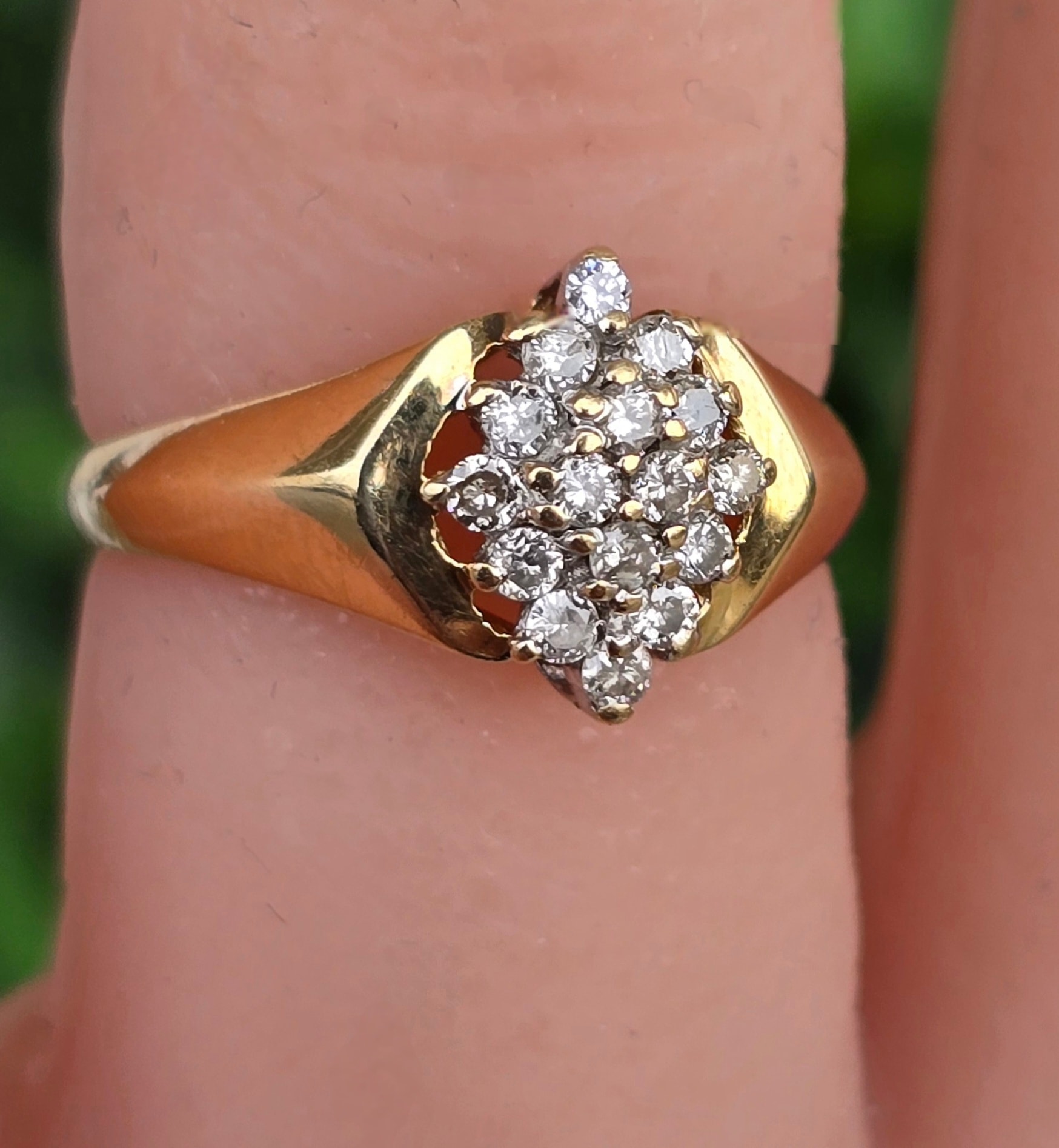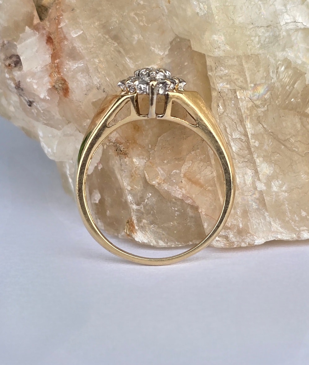 Inel vechi strălucitor, din aur de 14K, cu 16 diamante naturale.