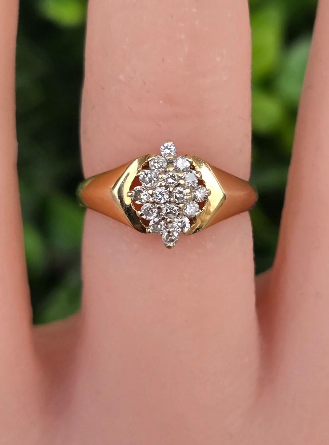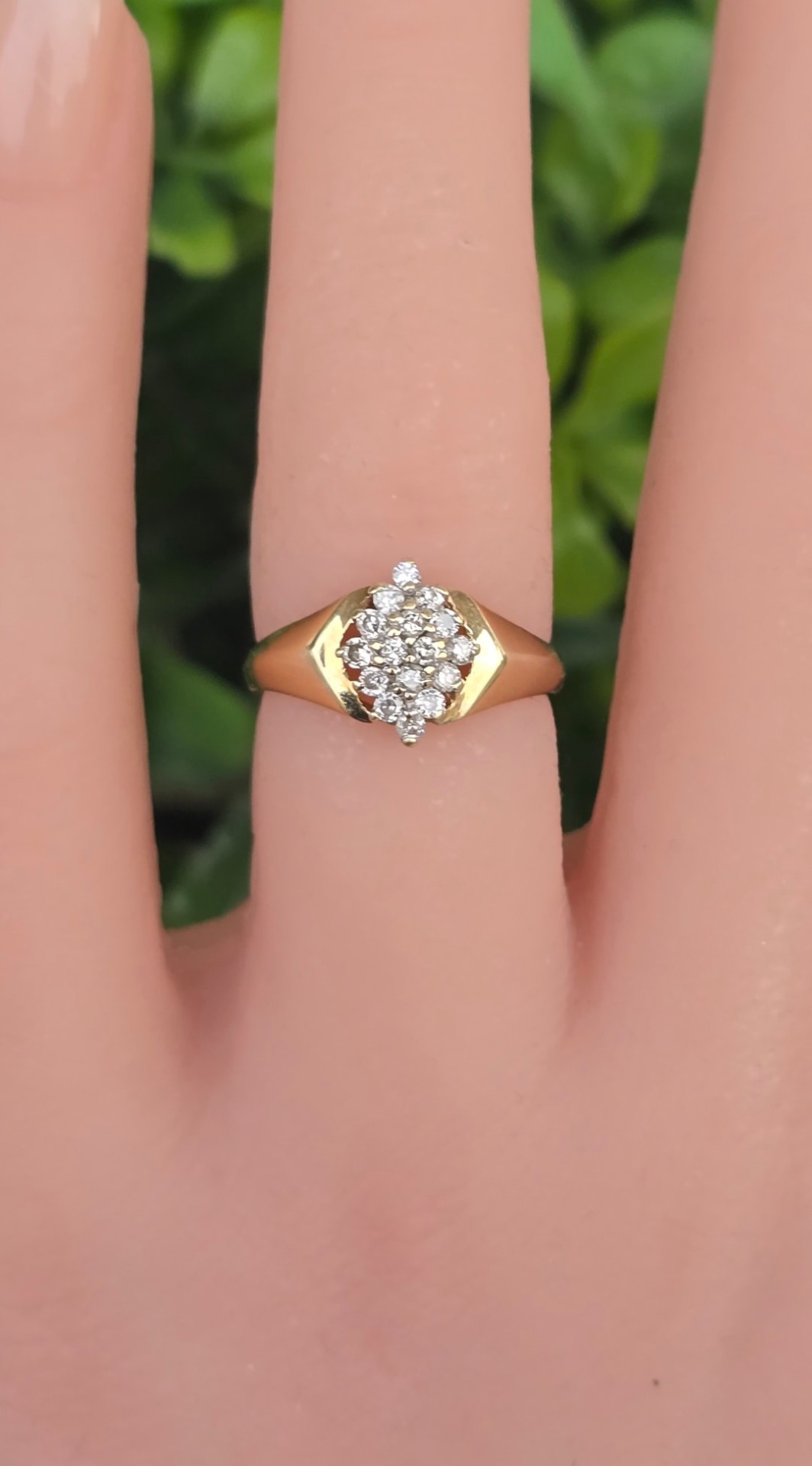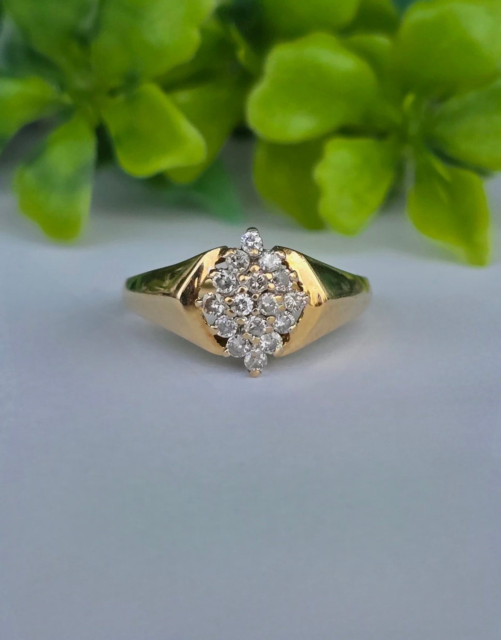 Inel vechi strălucitor, din aur de 14K, cu 16 diamante naturale.