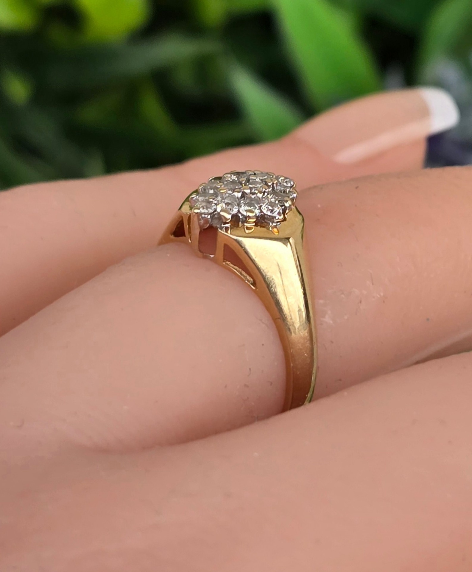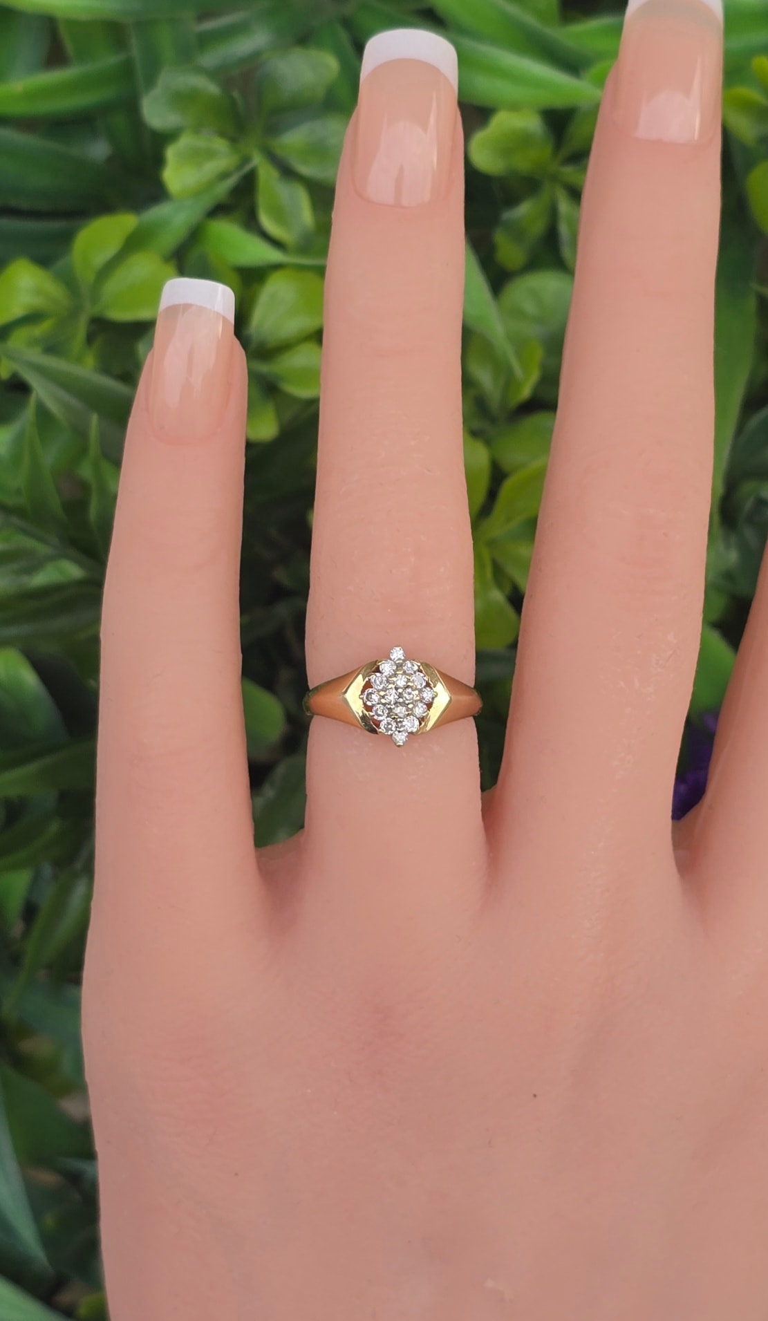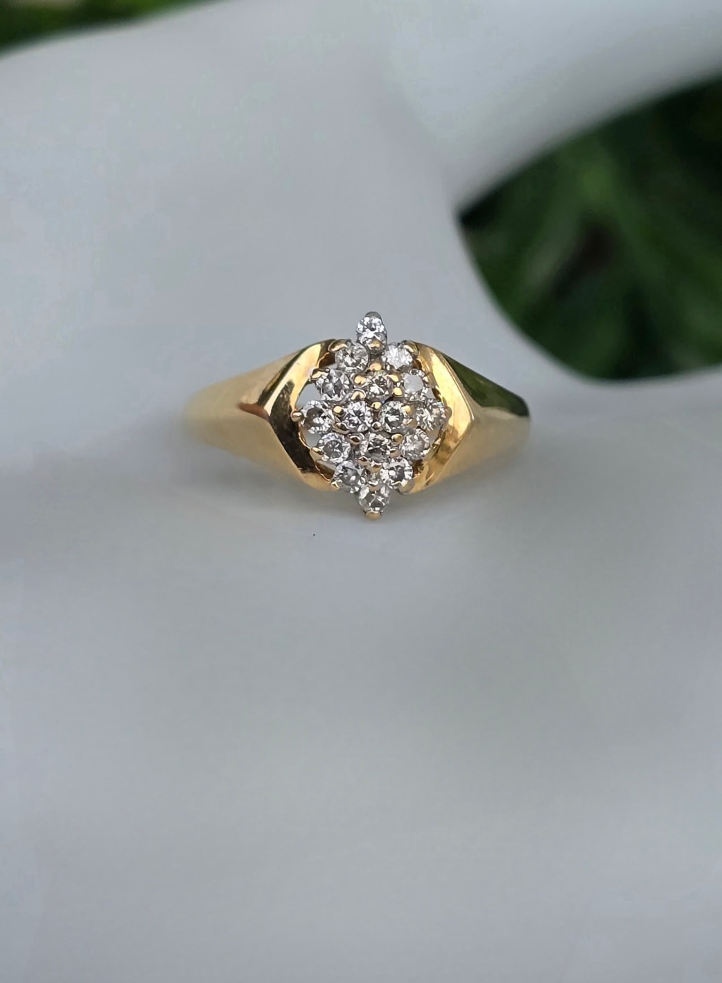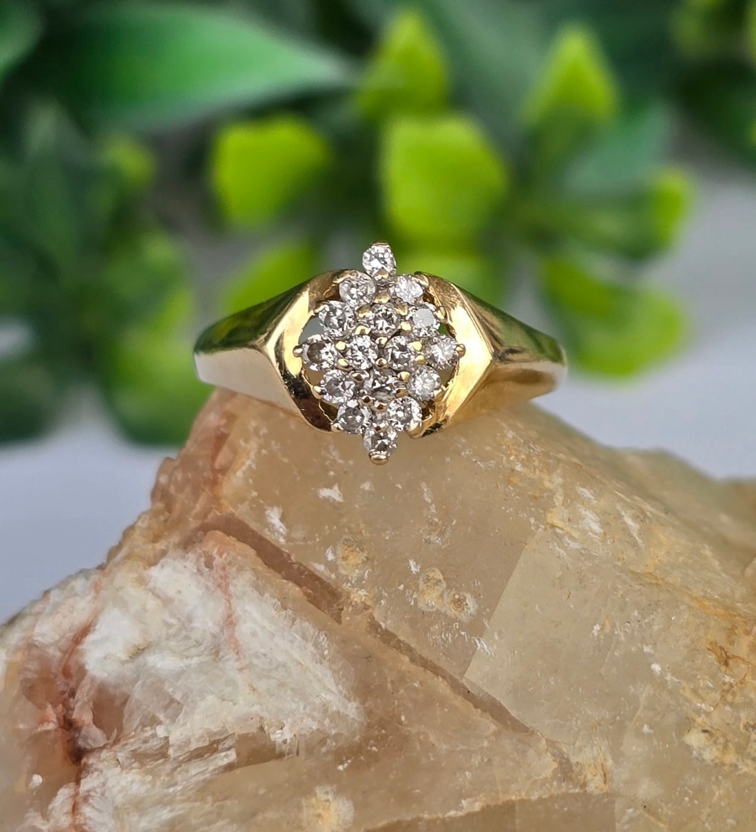 Inel vechi strălucitor, din aur de 14K, cu 16 diamante naturale.