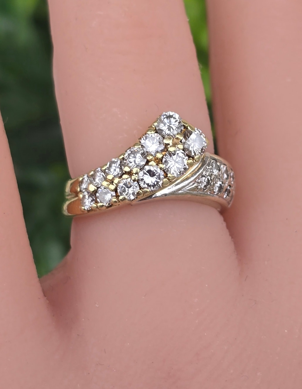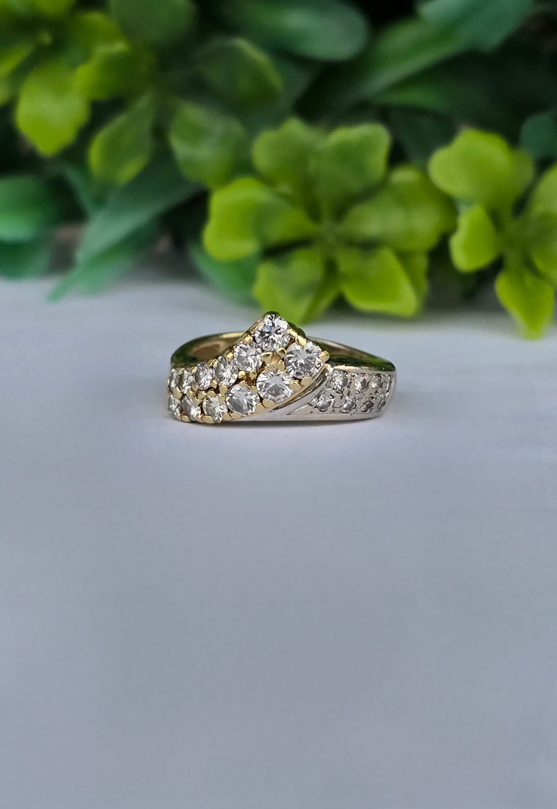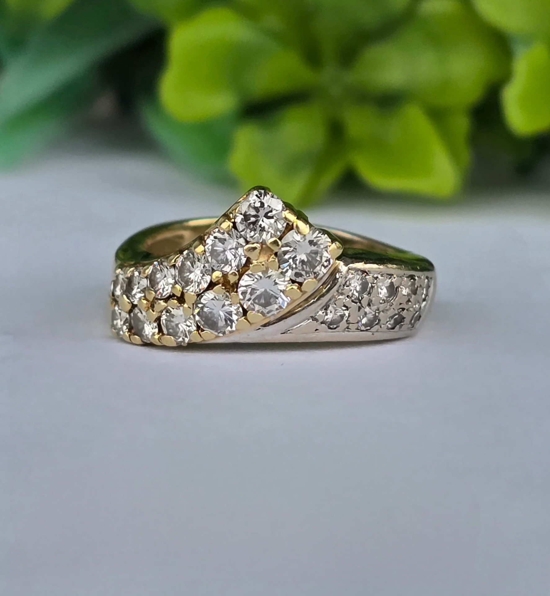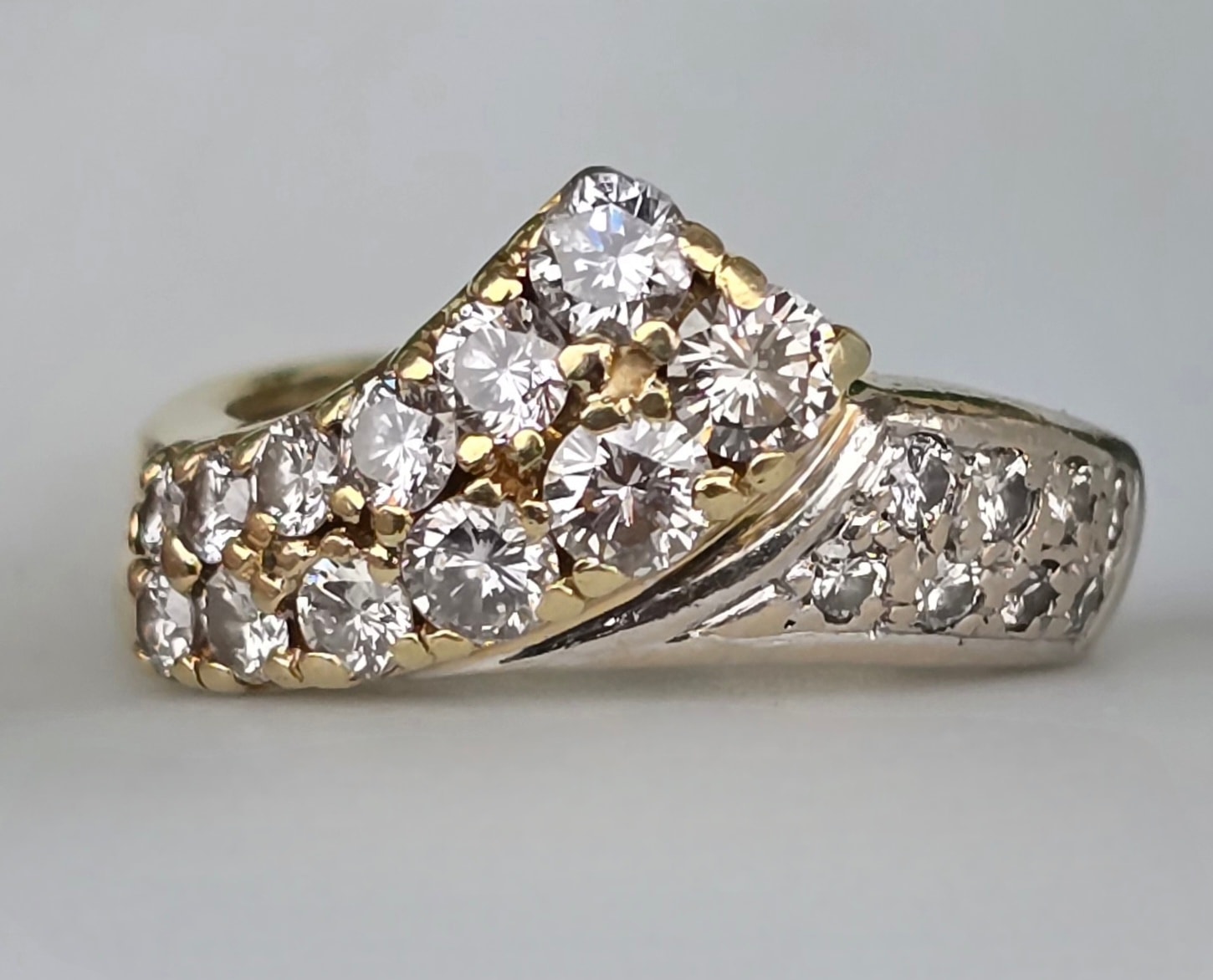 Inel vechi strălucitor, din aur de 14K, cu 20 superbe diamante naturale (1.02ct).