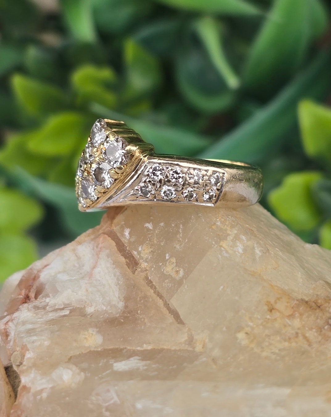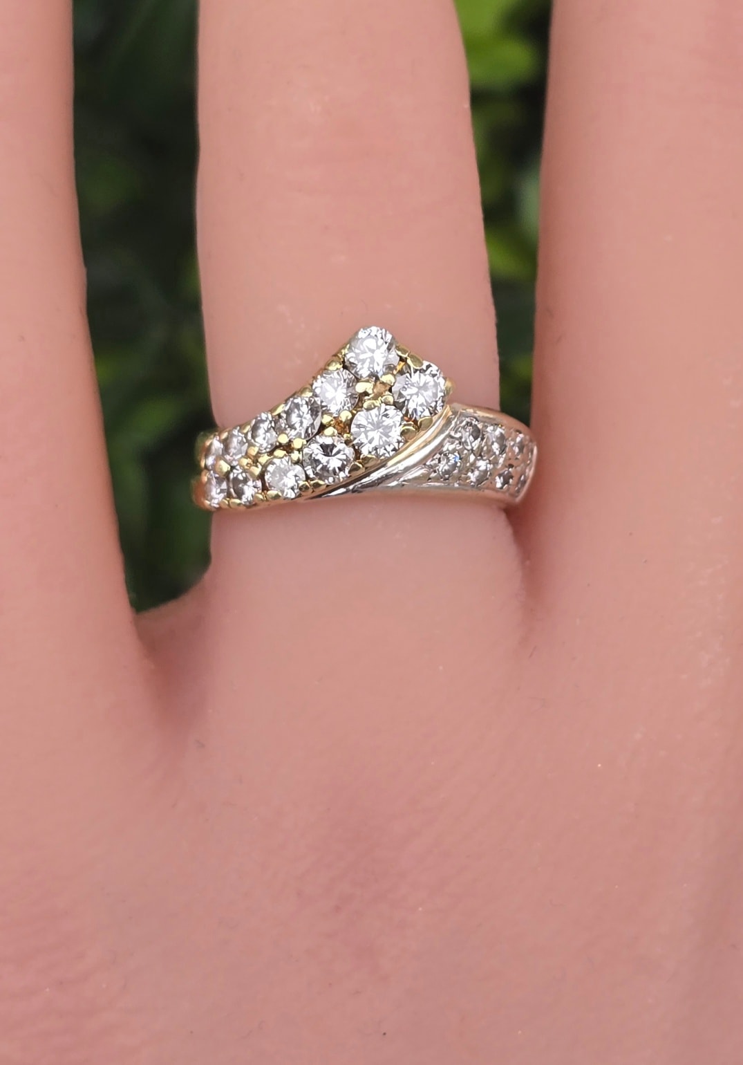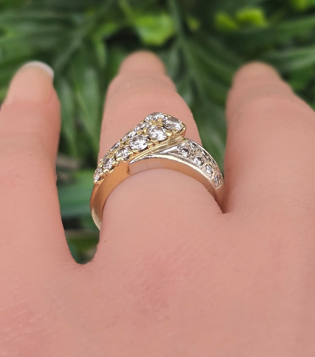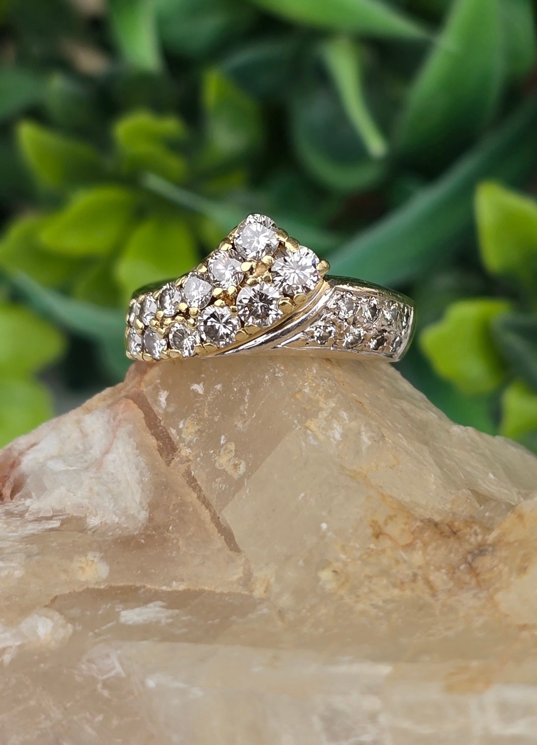 Inel vechi strălucitor, din aur de 14K, cu 20 superbe diamante naturale (1.02ct).