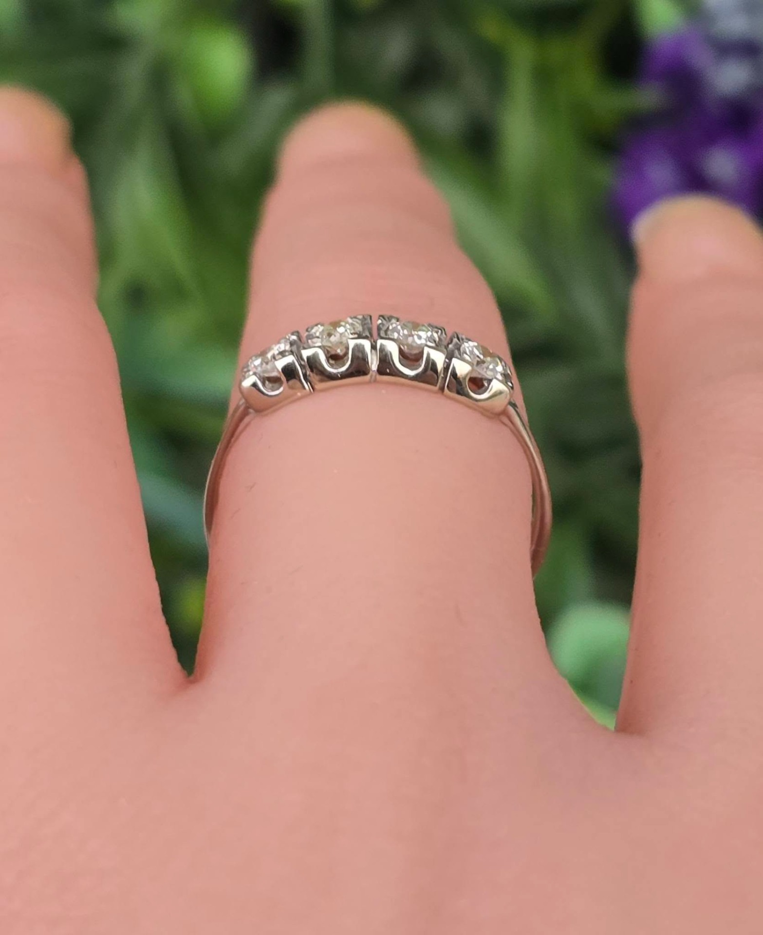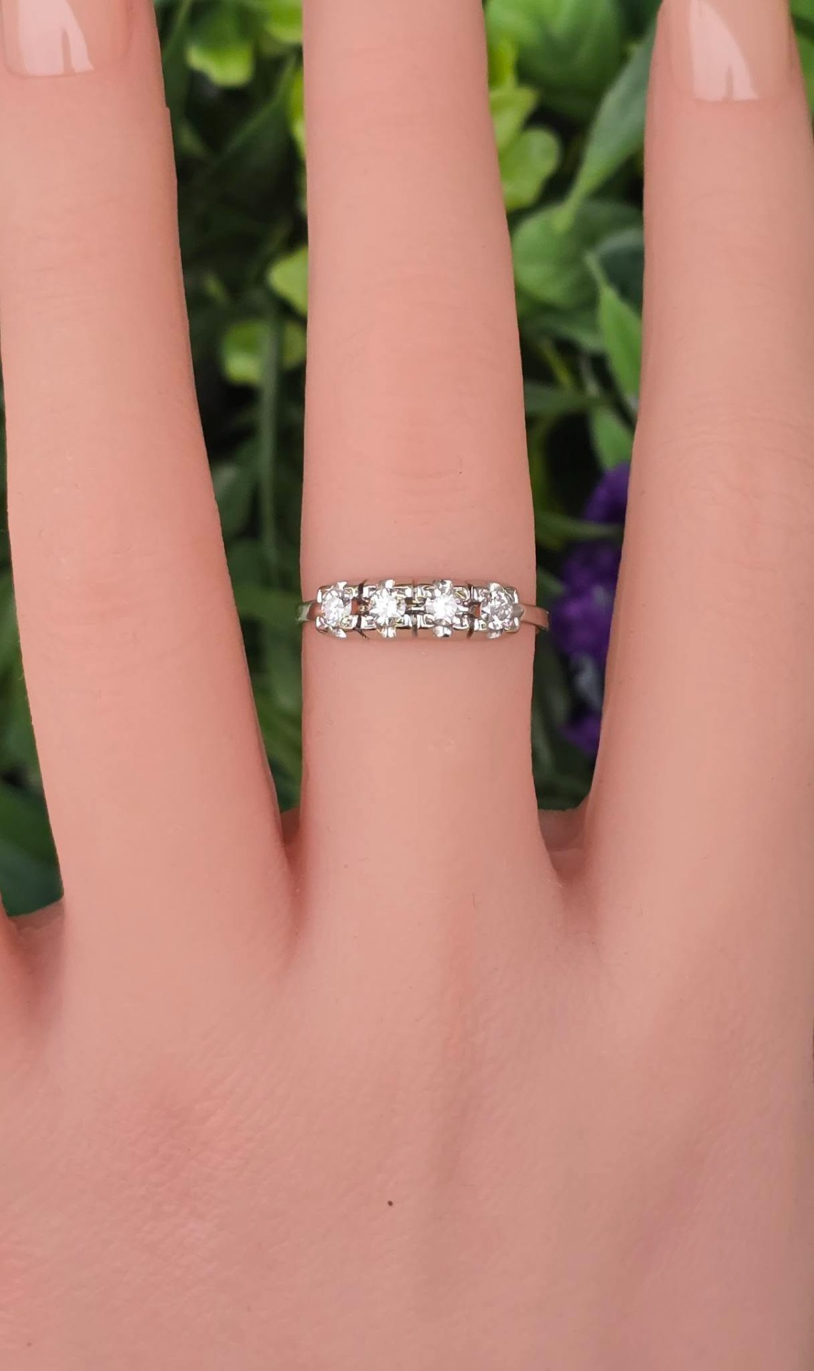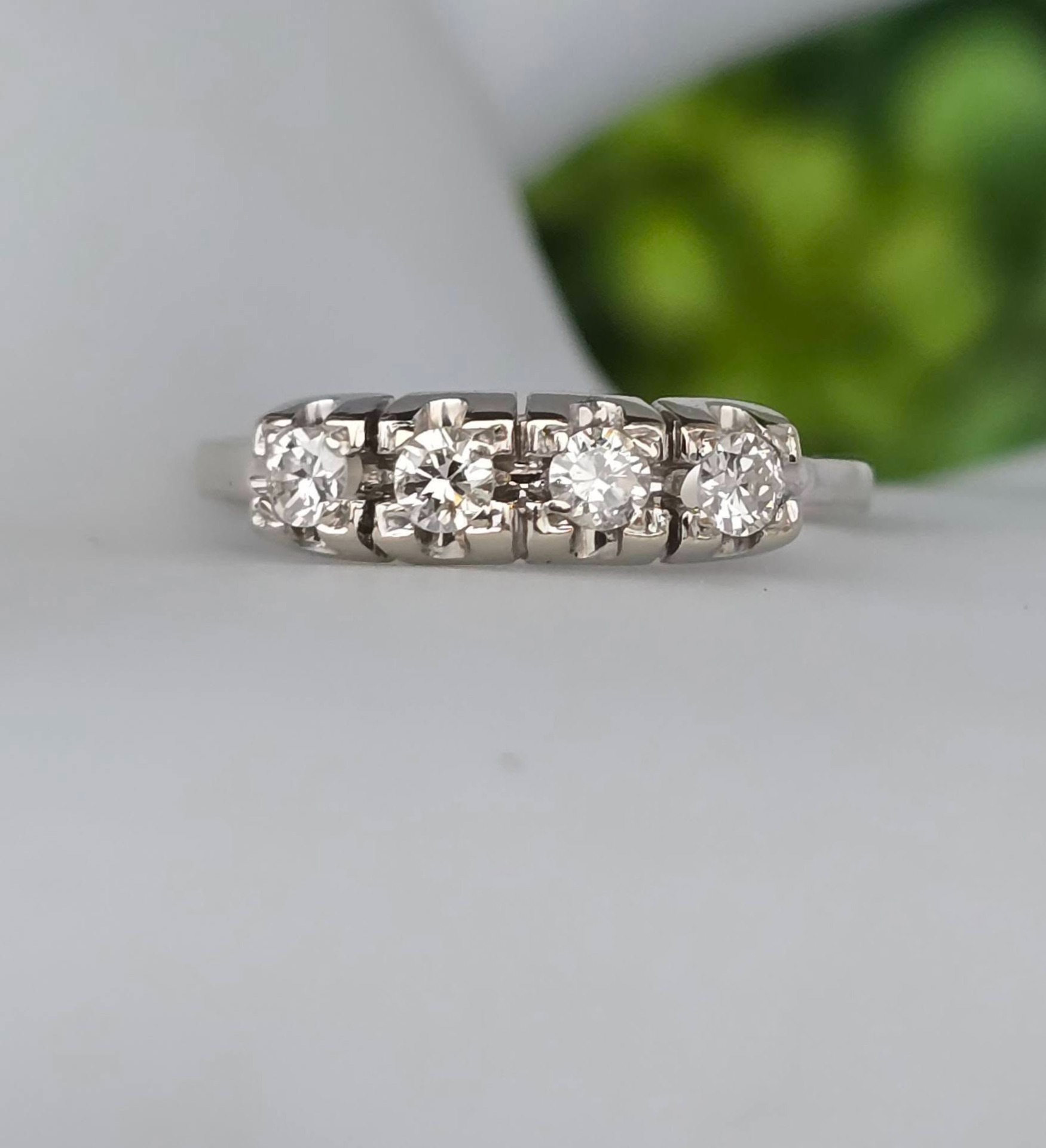 Inel vechi strălucitor, din aur de 14K, cu 4 superbe diamante naturale de calitate superioară.