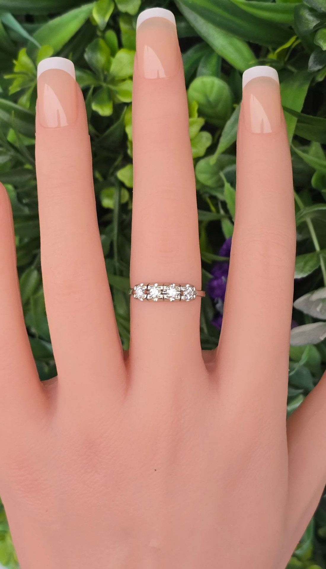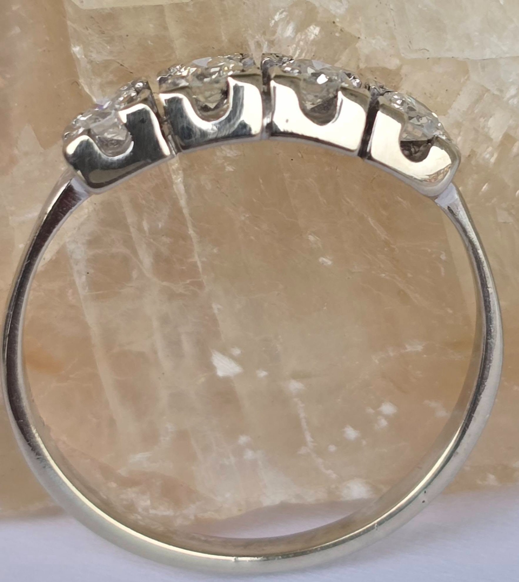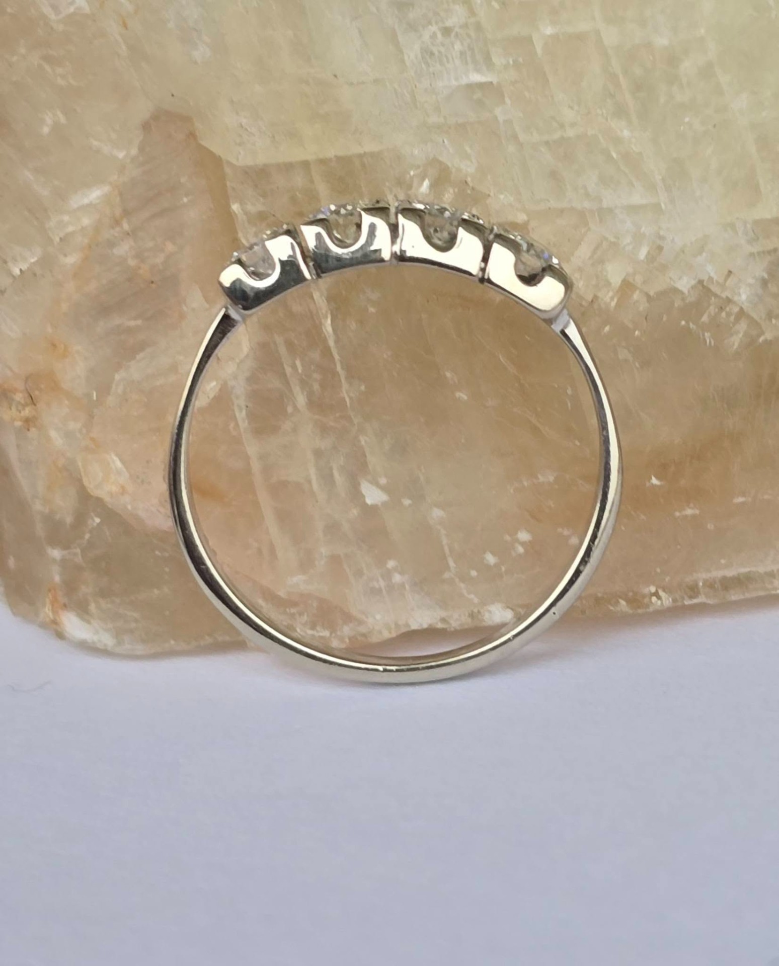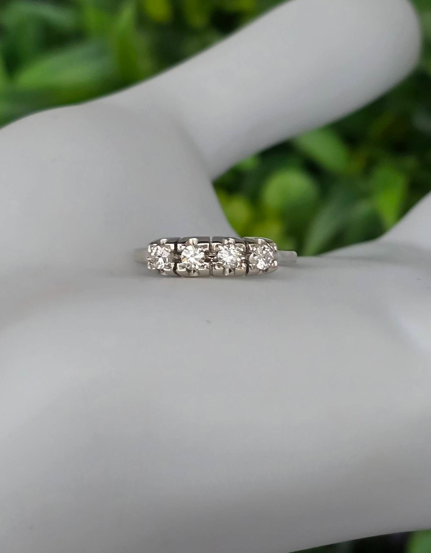 Inel vechi strălucitor, din aur de 14K, cu 4 superbe diamante naturale de calitate superioară.