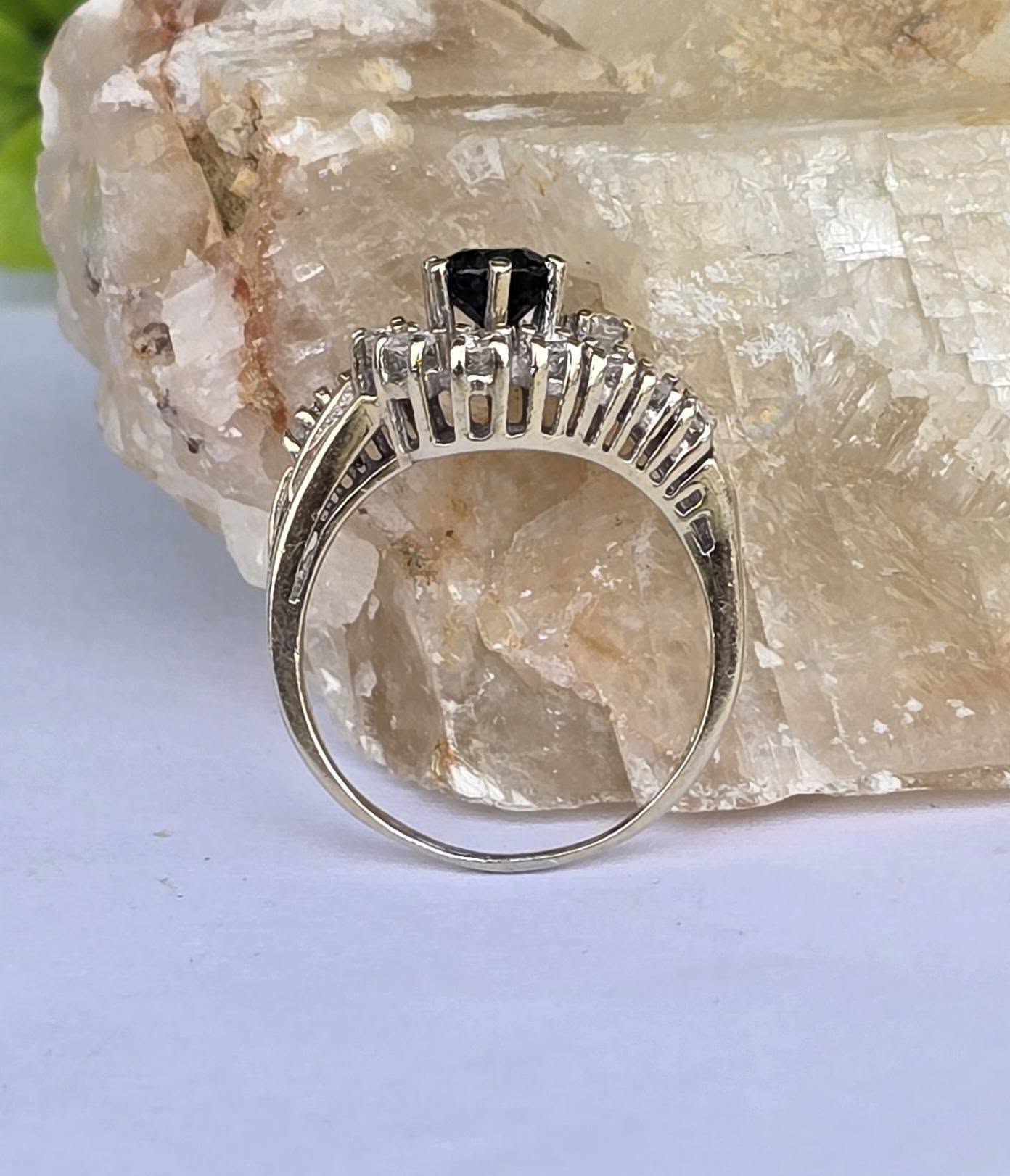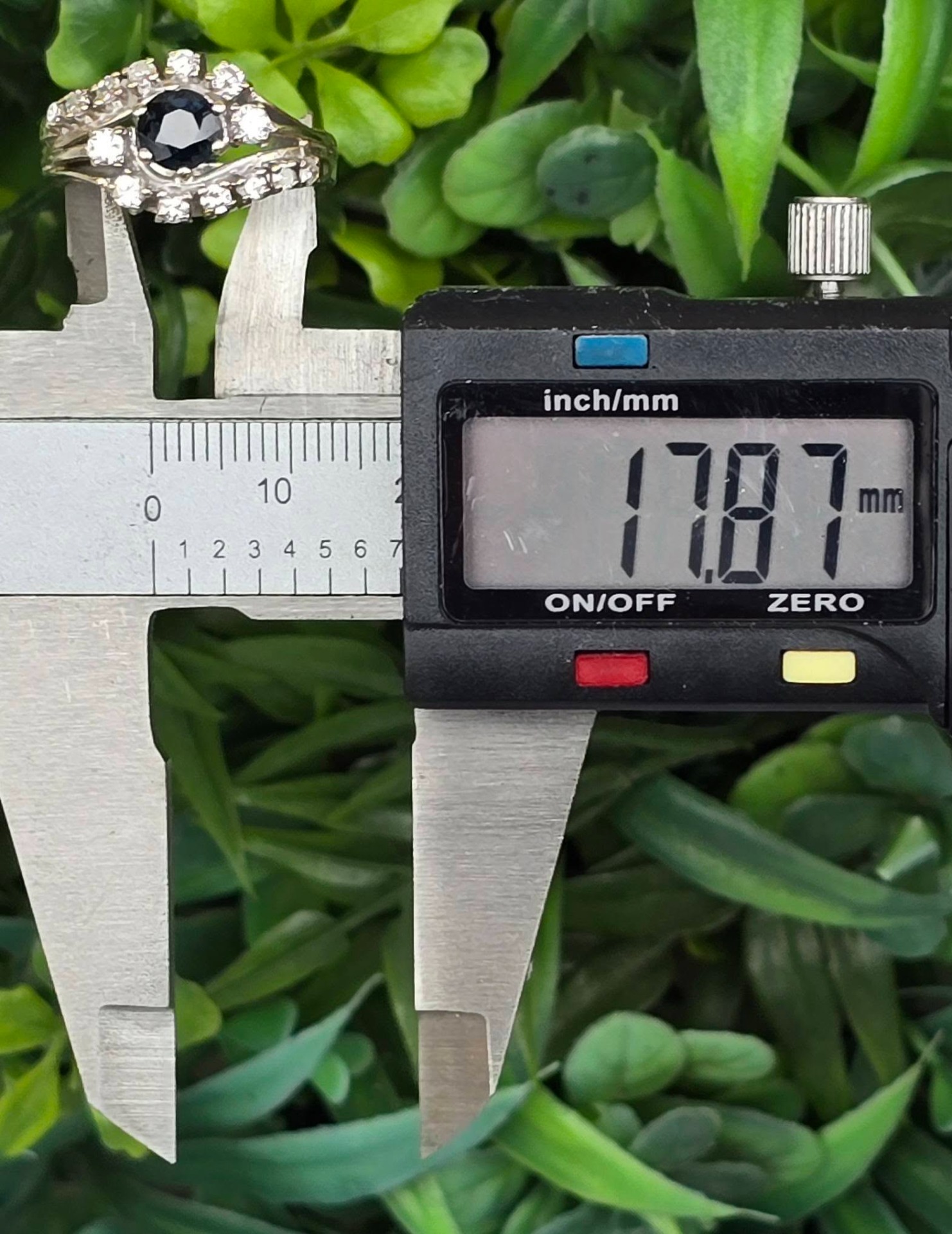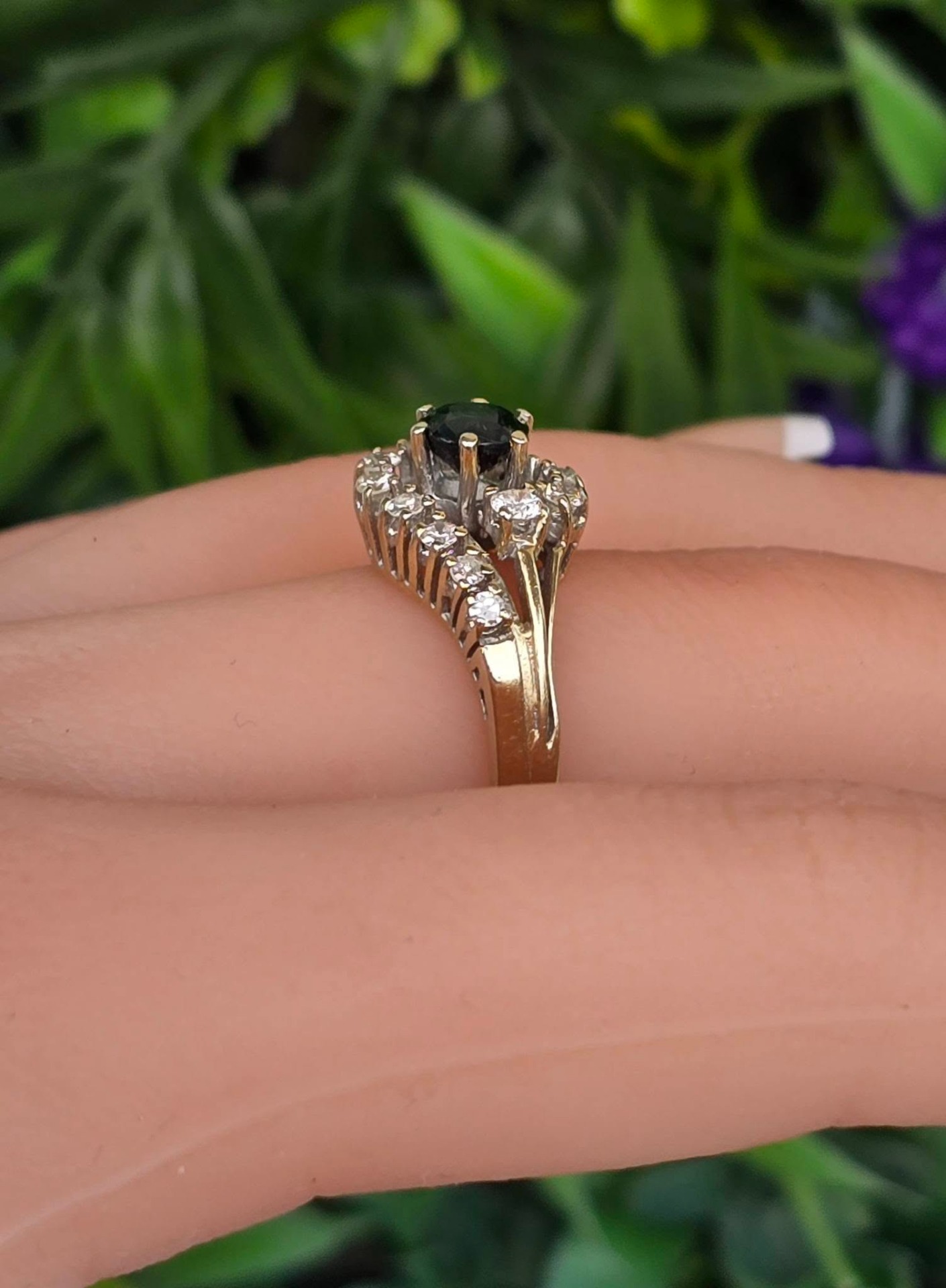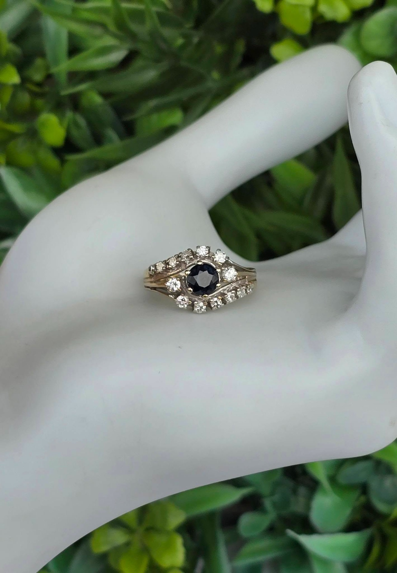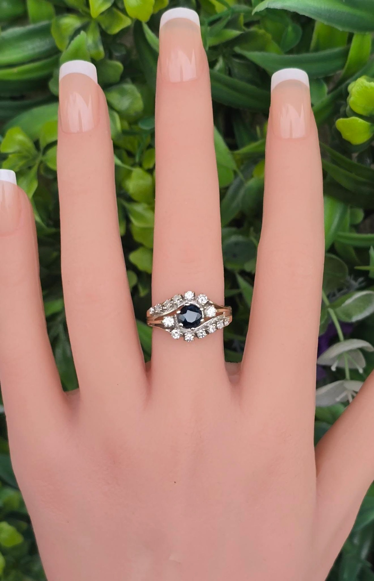 Inel vechi strălucitor, din aur de 14K, cu safir și 14 diamante naturale (0.54ct).