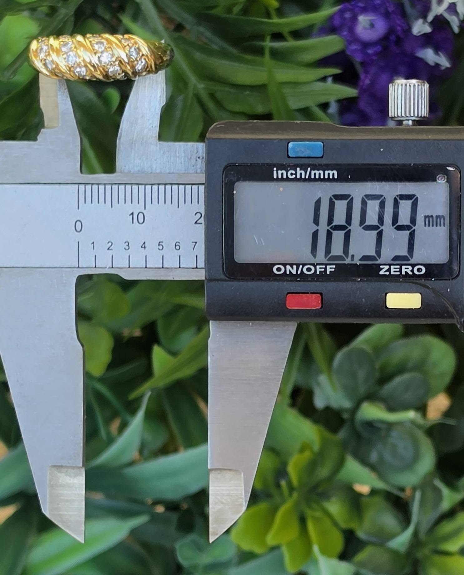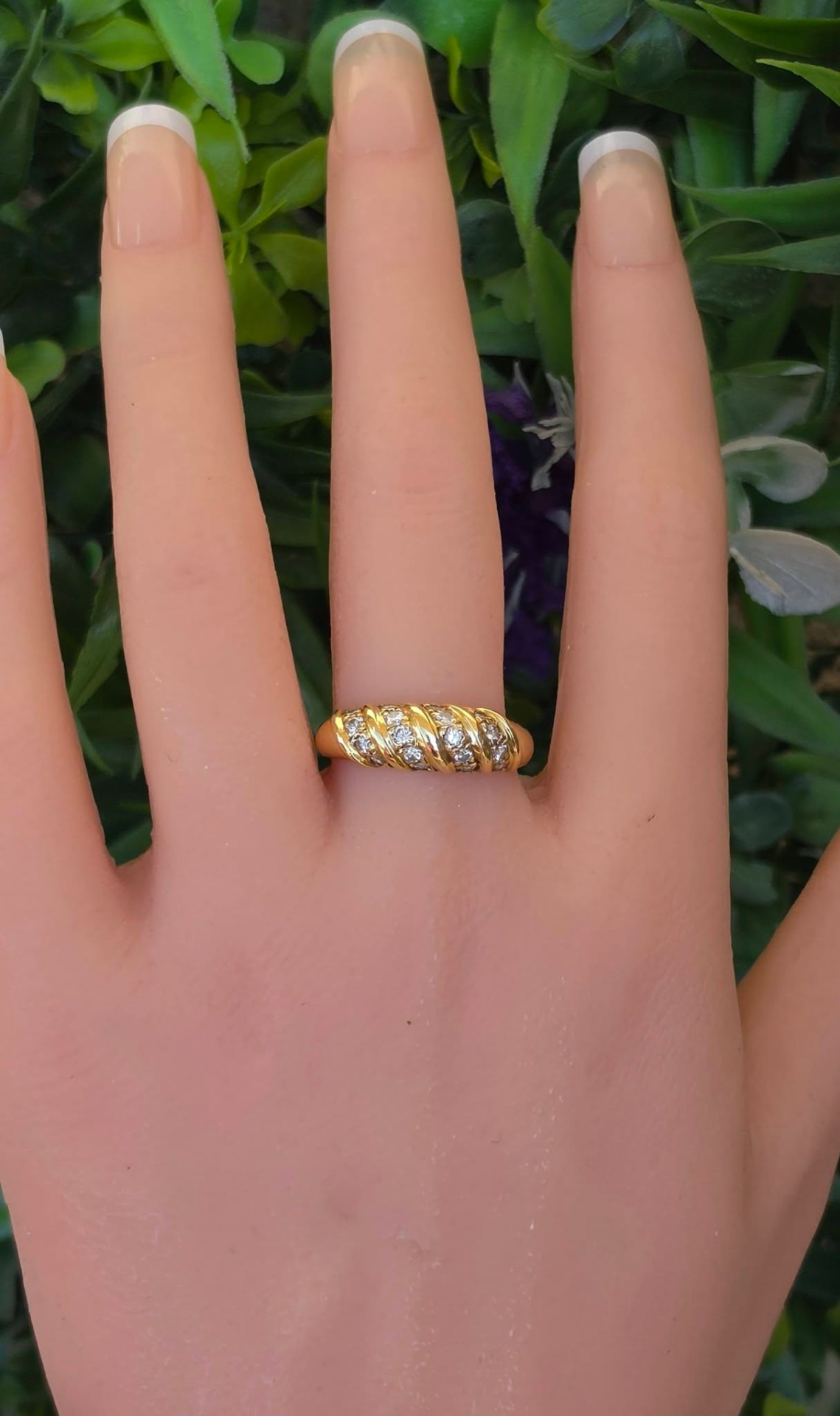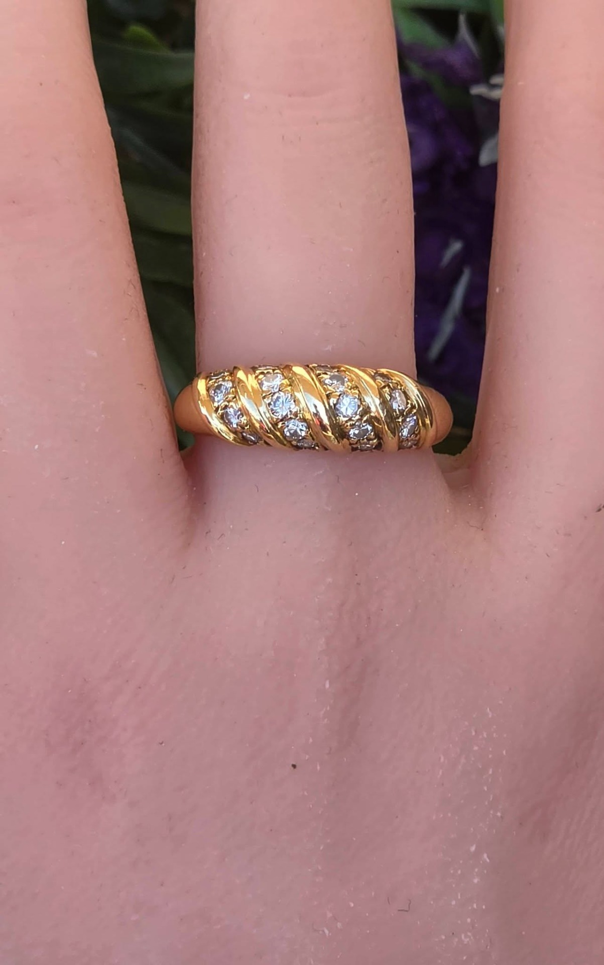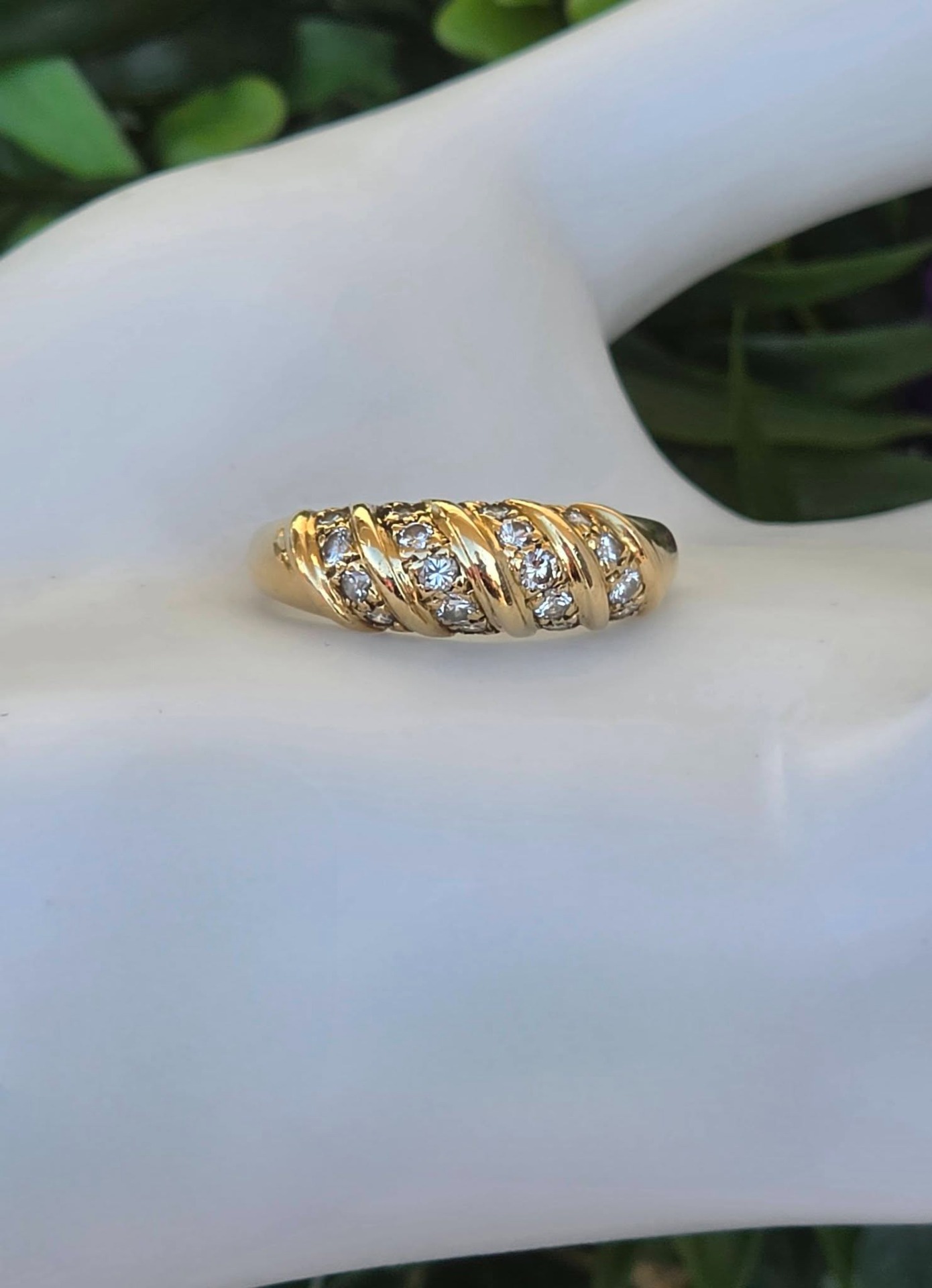 Inel vechi strălucitor, din aur de 18K, cu 18 diamante naturale de calitate superioară.