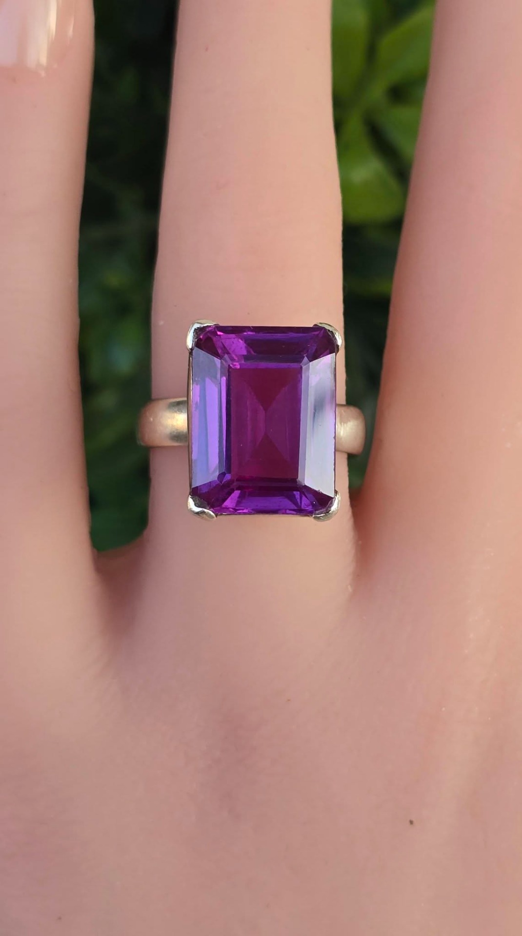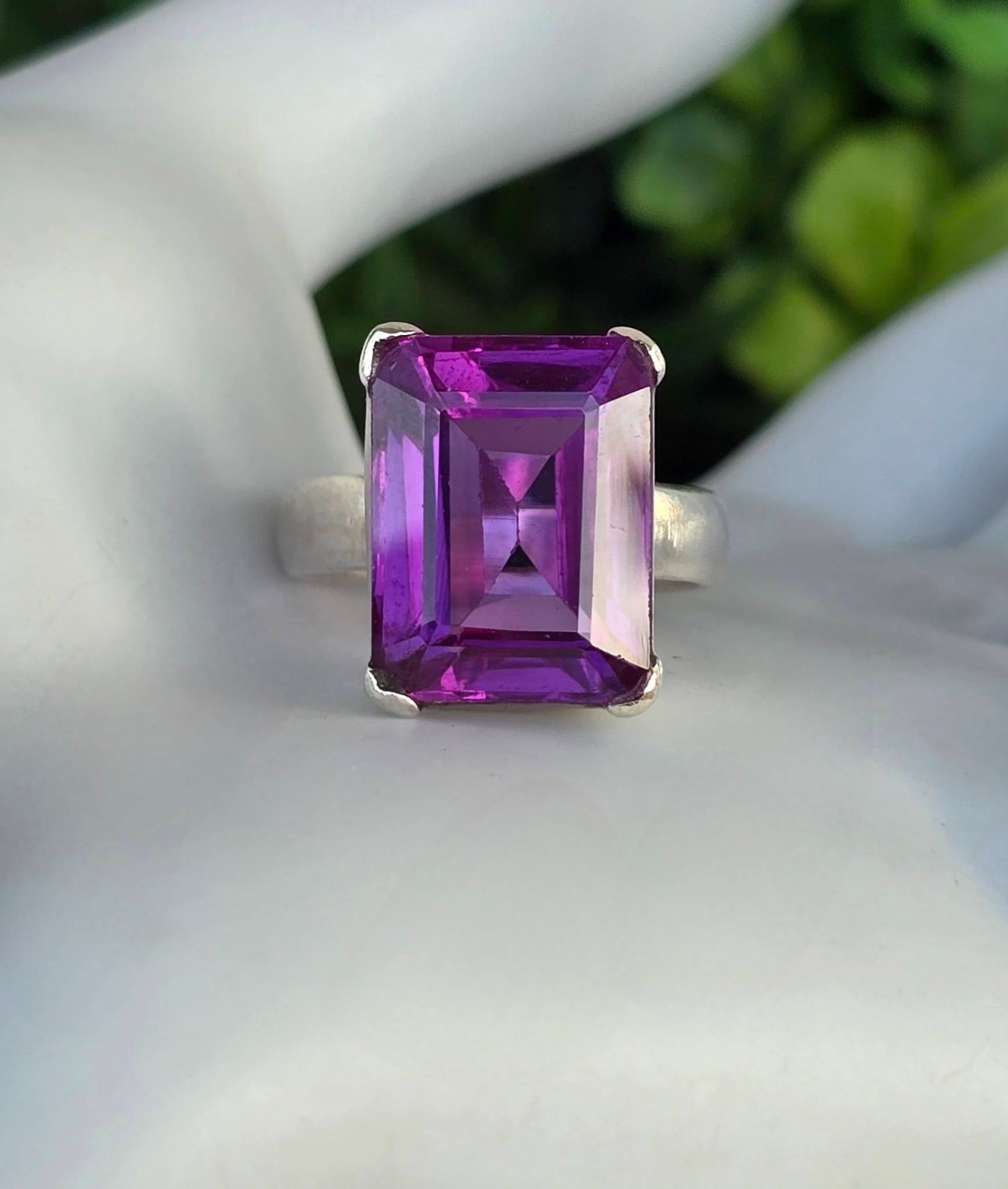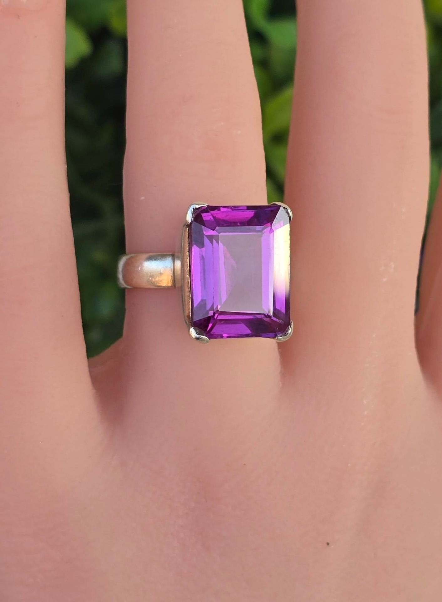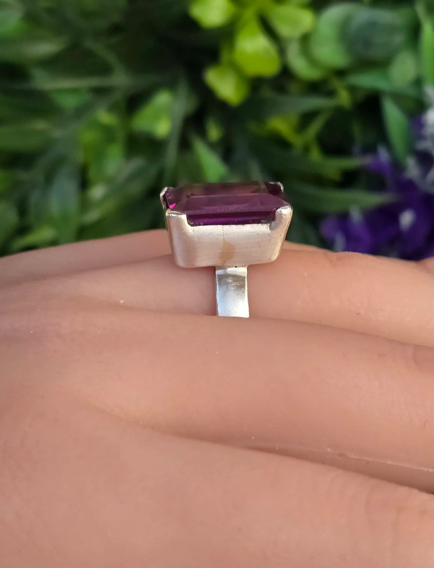 Inel vechi superb, din argint, cu un frumos safir mov de sinteză.