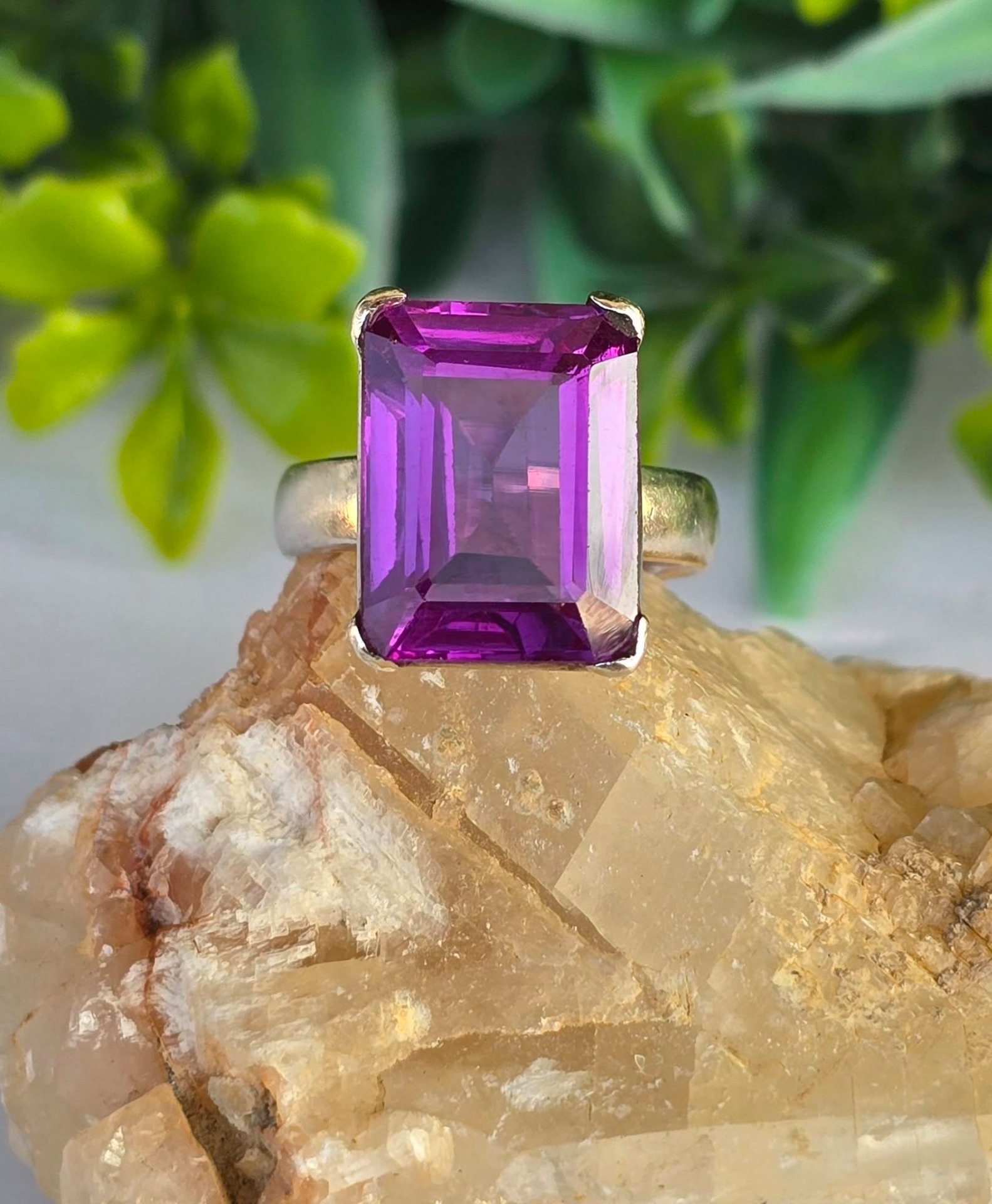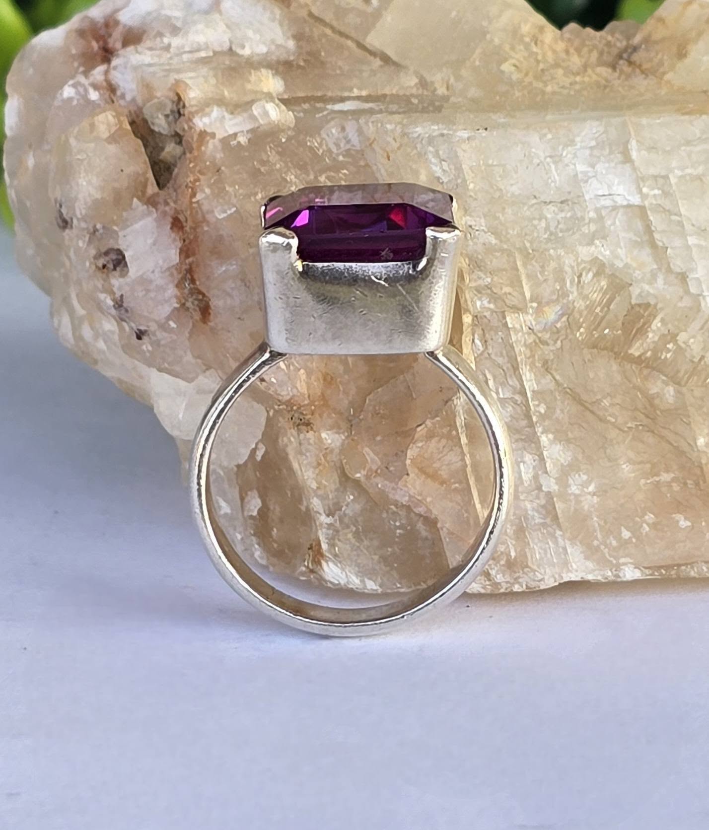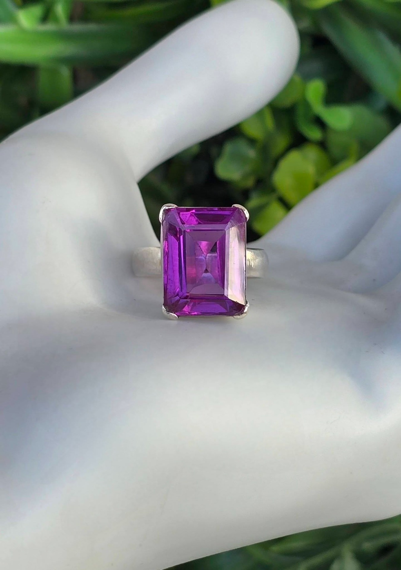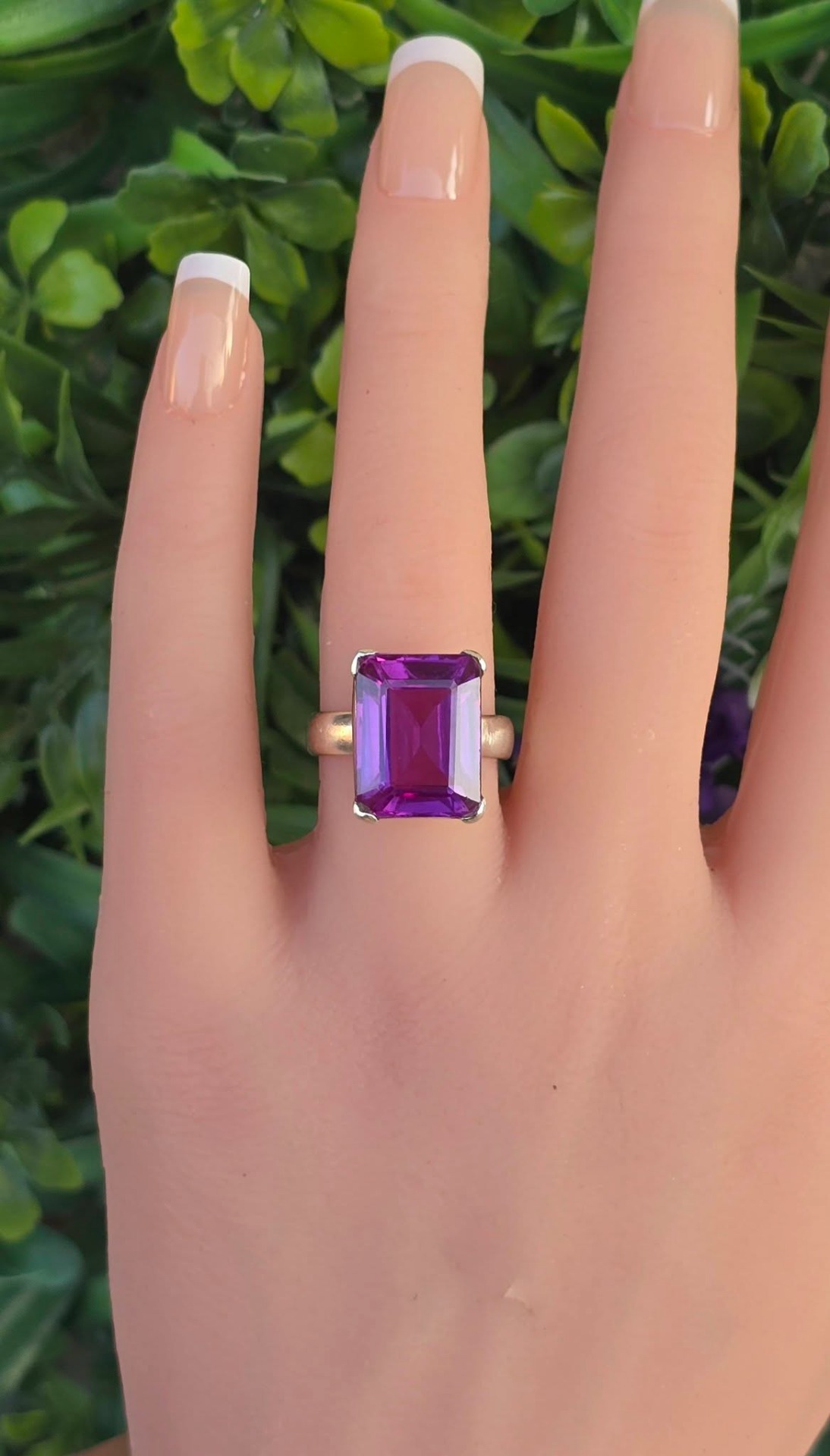 Inel vechi superb, din argint, cu un frumos safir mov de sinteză.
