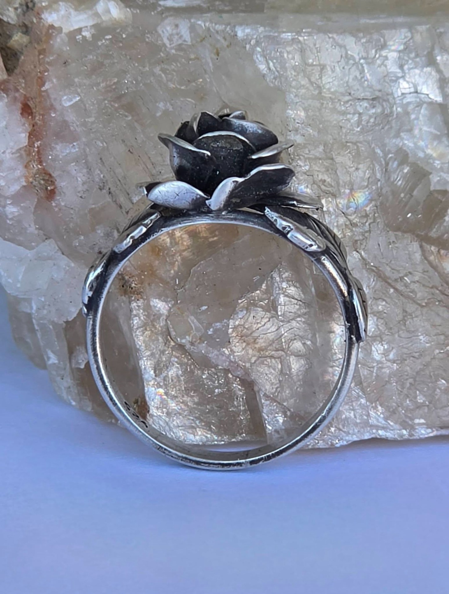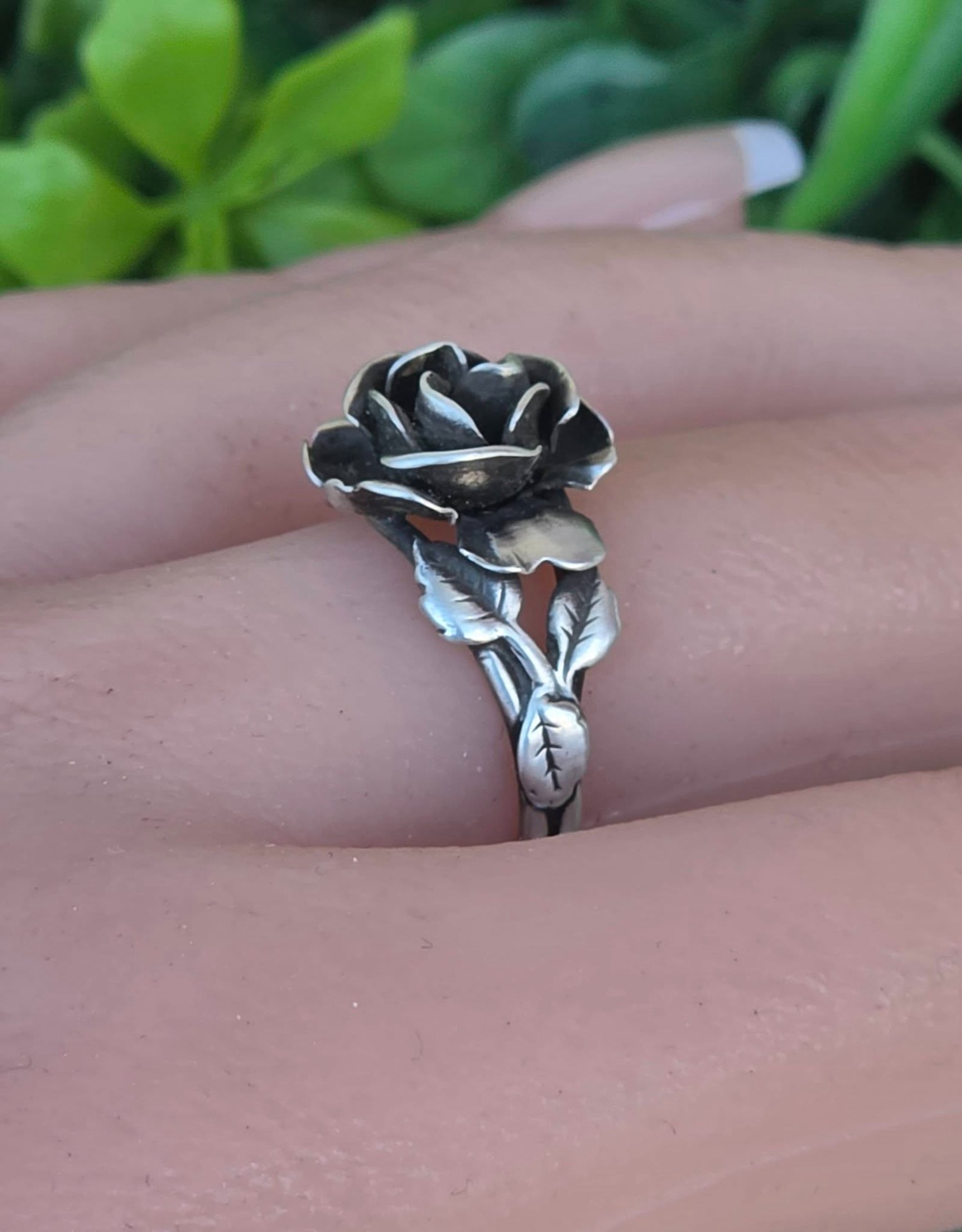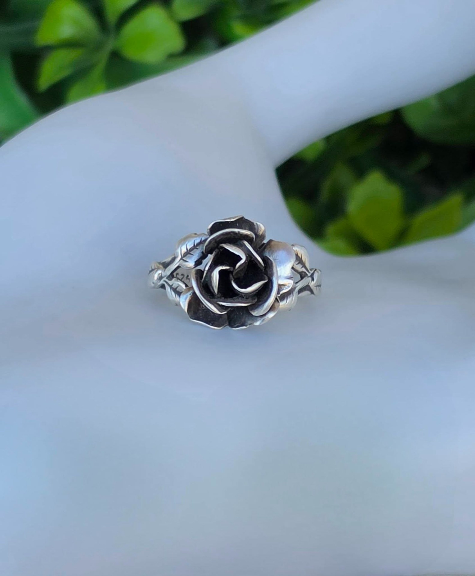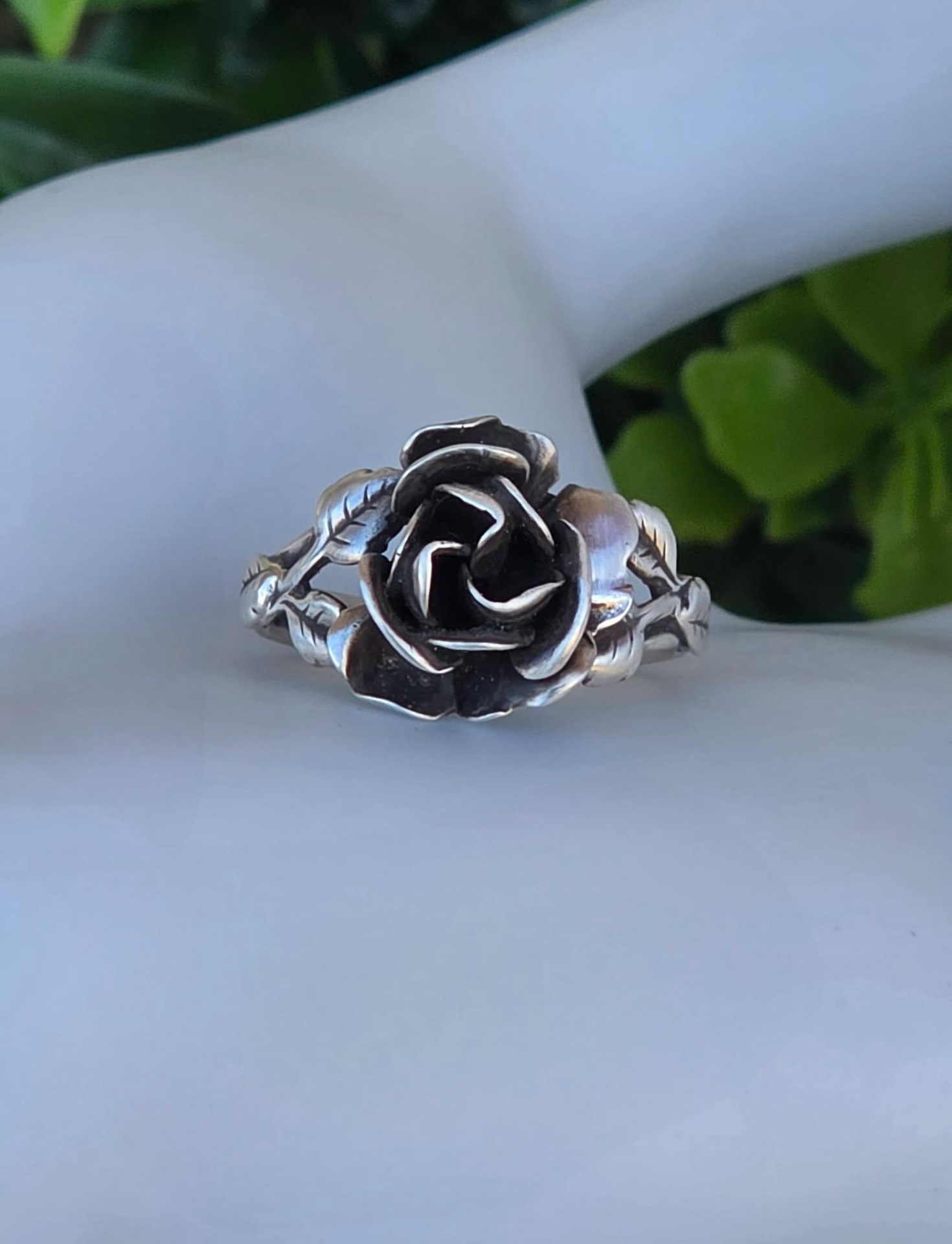 Inel vechi superb, din argint, de colecție, frumos stilizat cu trandafir.