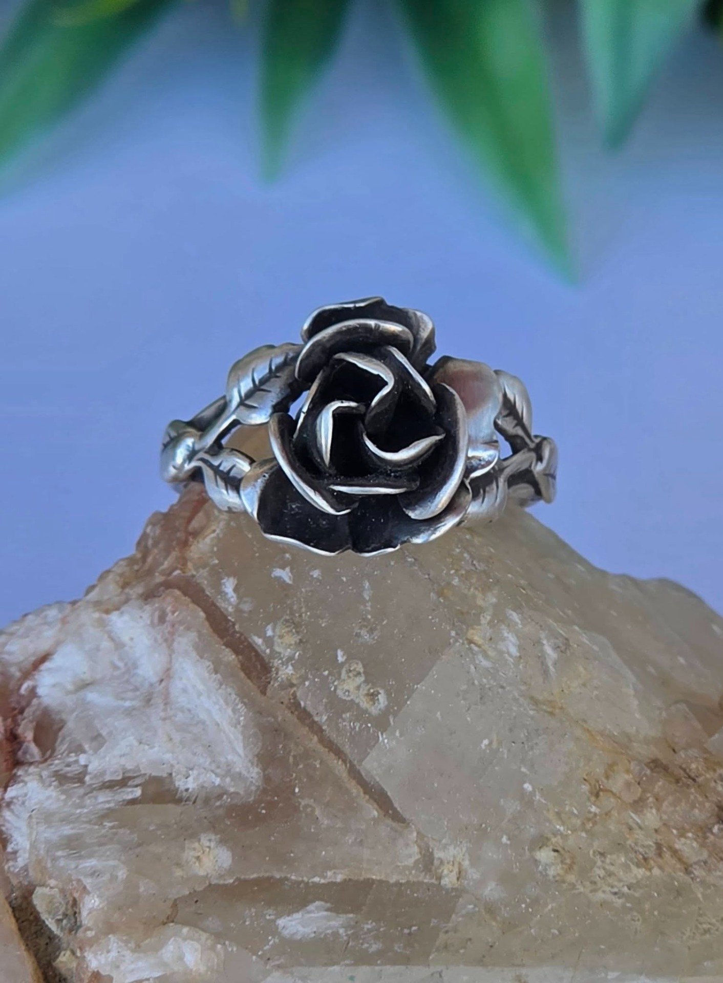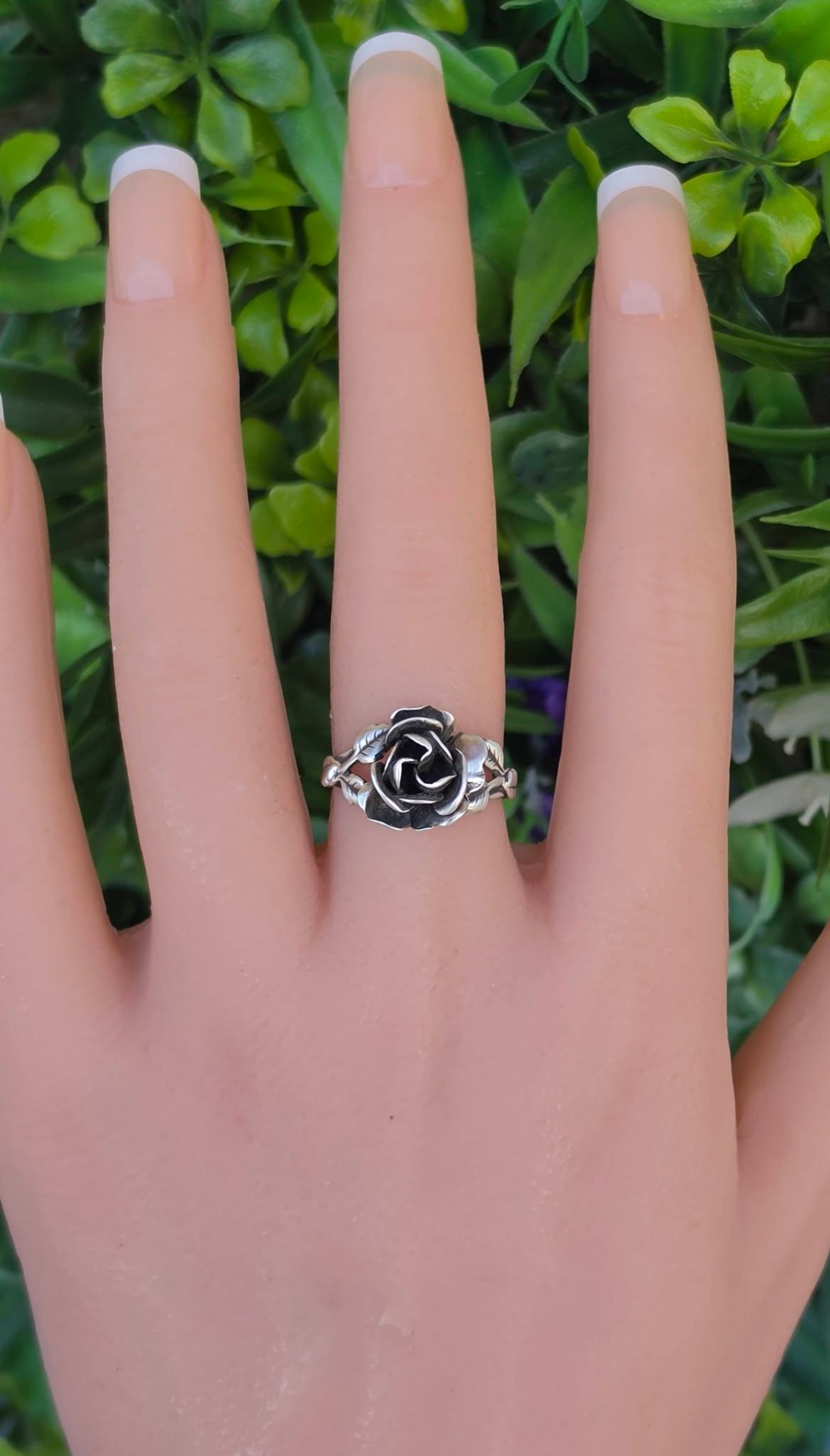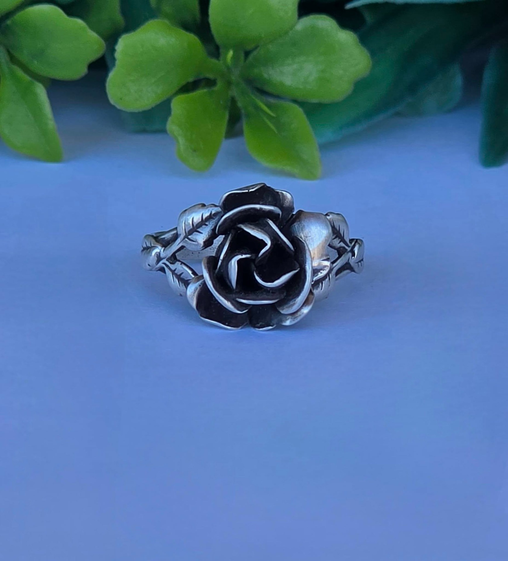 Inel vechi superb, din argint, de colecție, frumos stilizat cu trandafir.