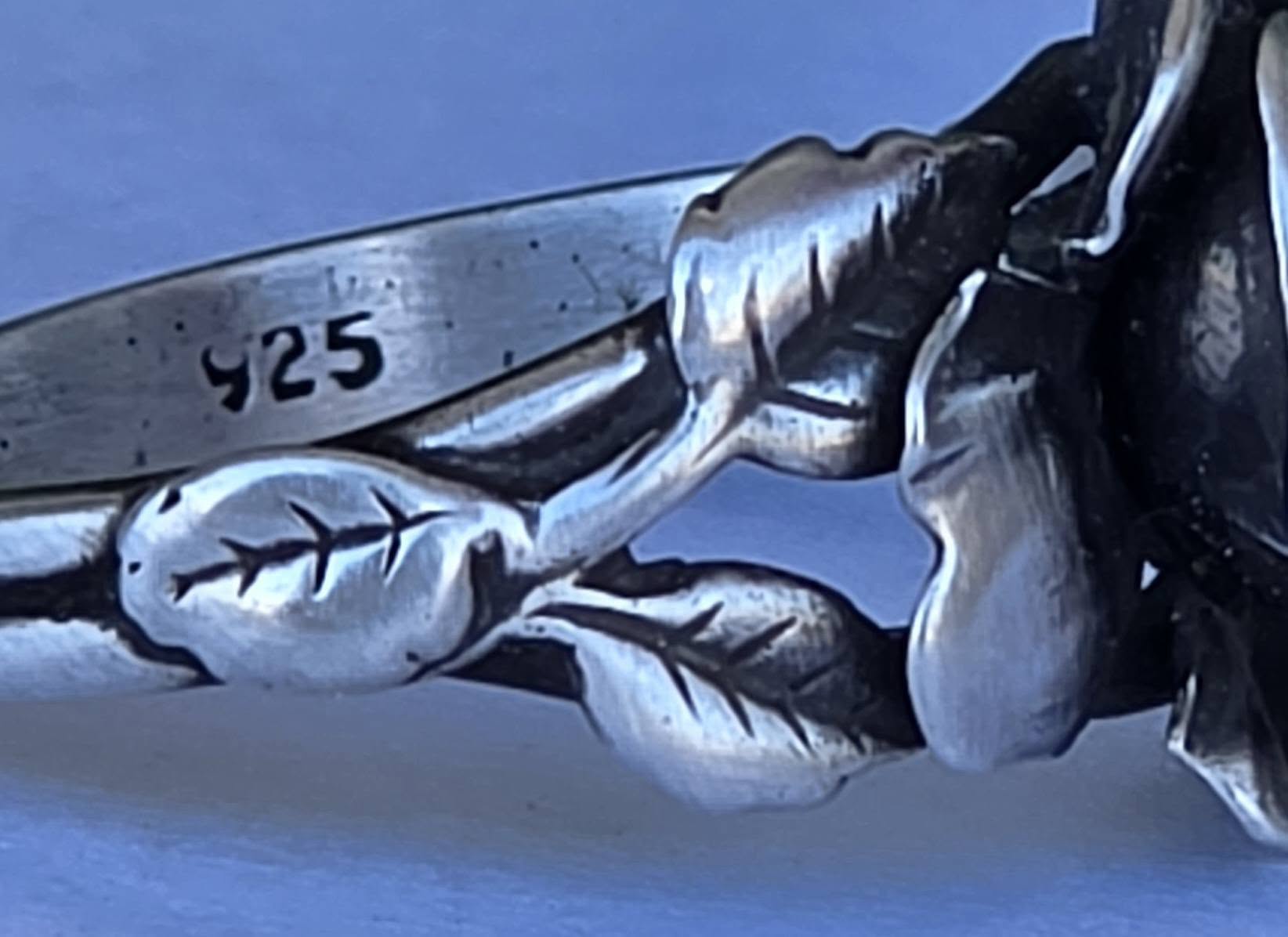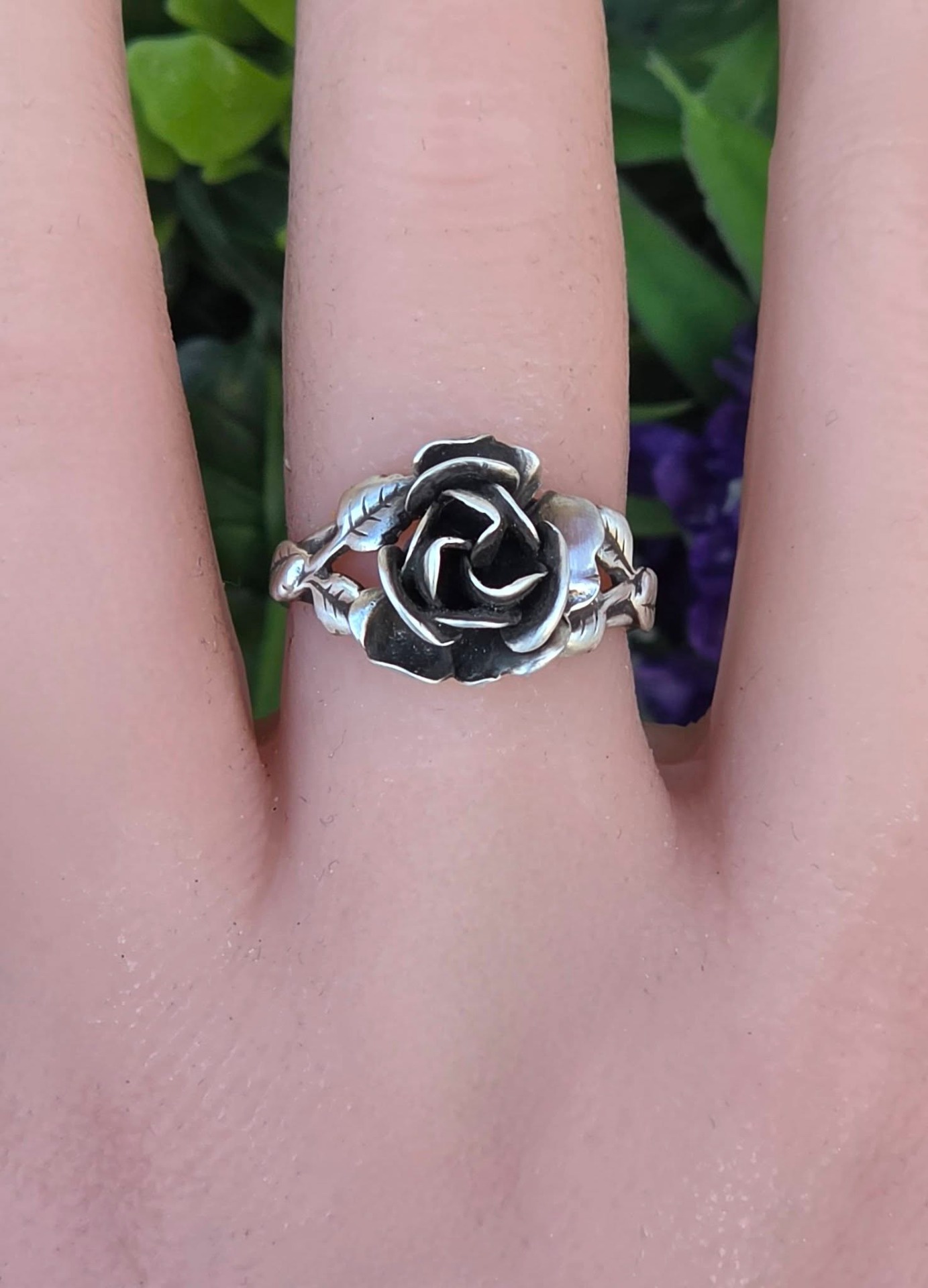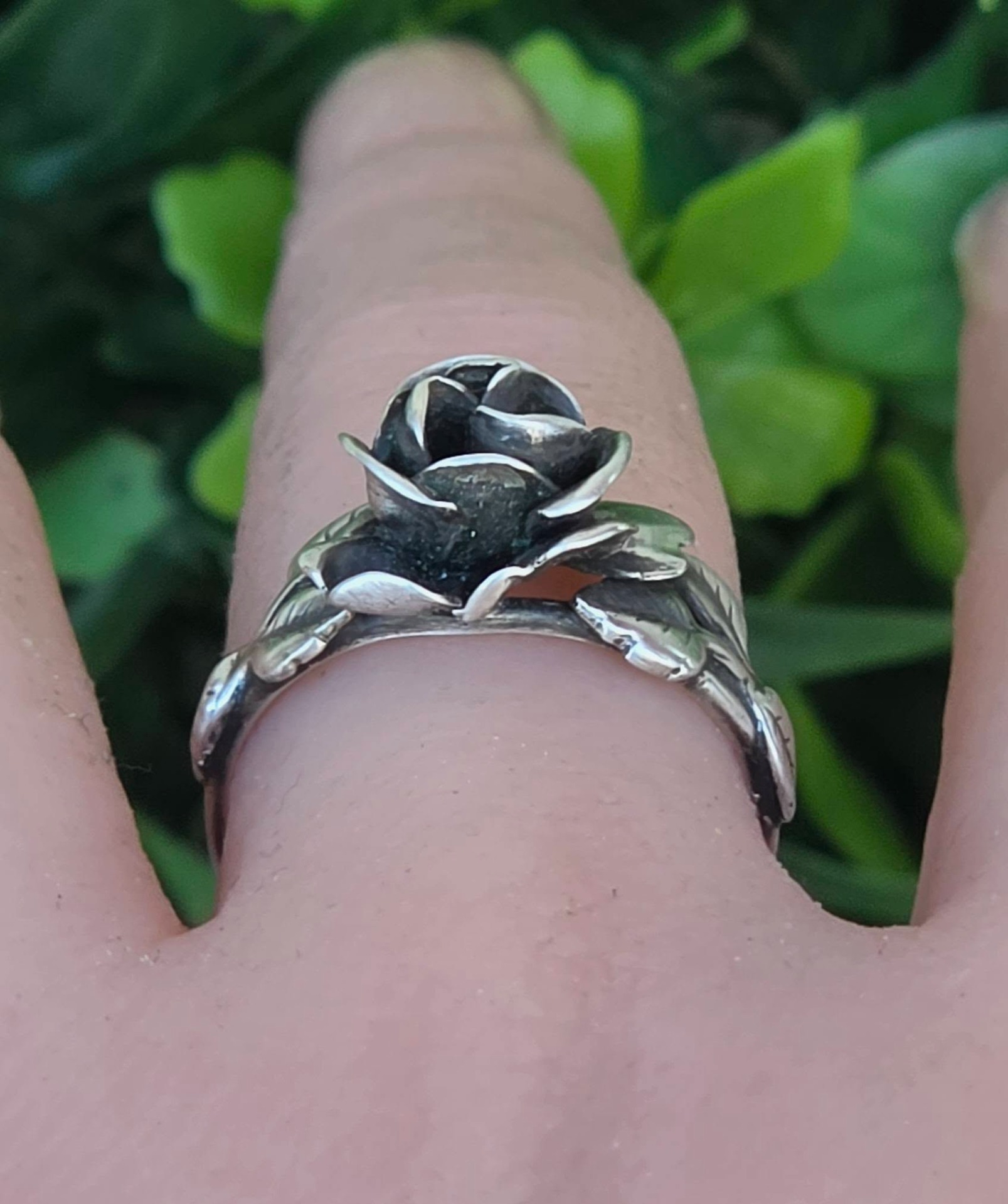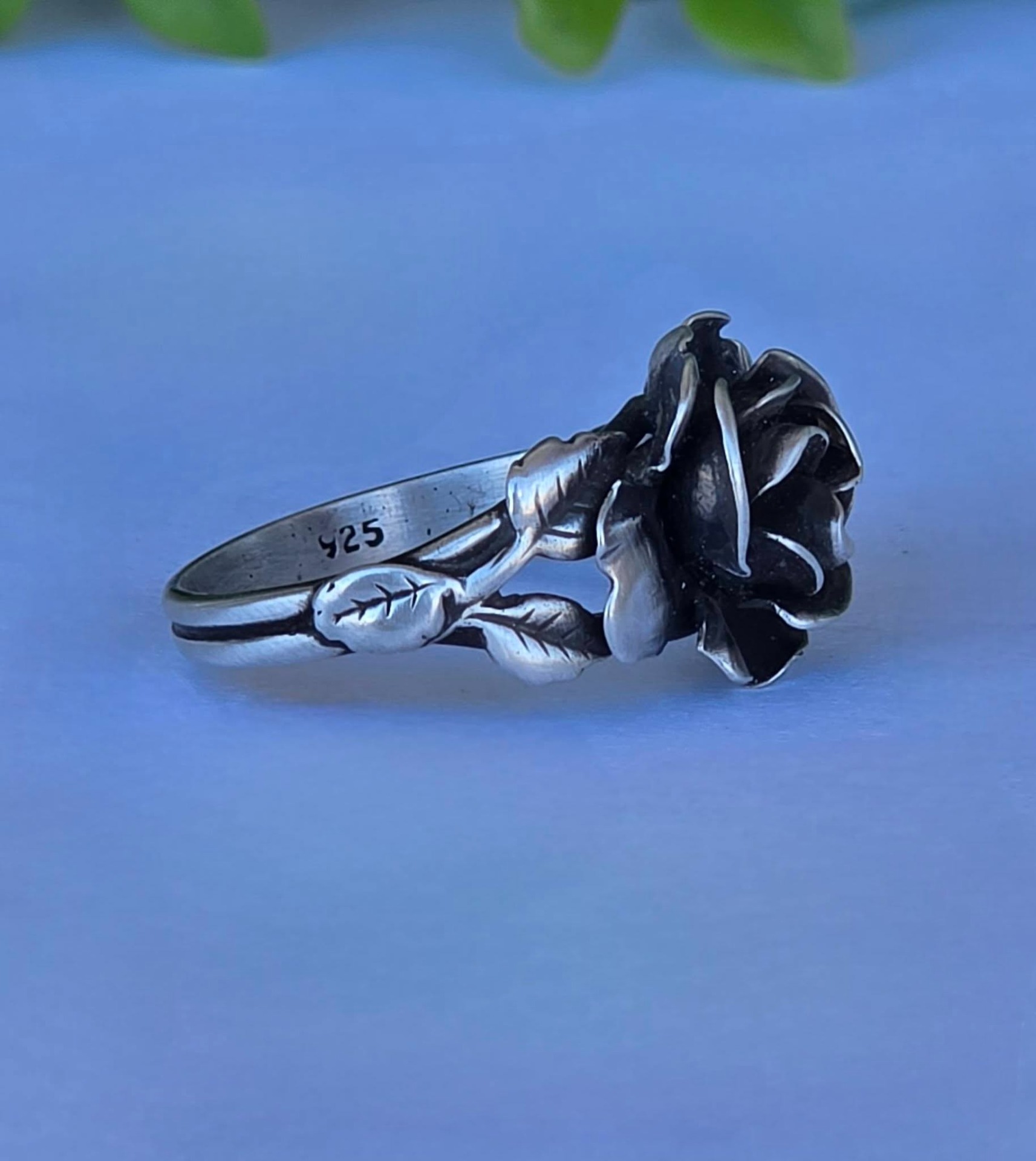 Inel vechi superb, din argint, de colecție, frumos stilizat cu trandafir.