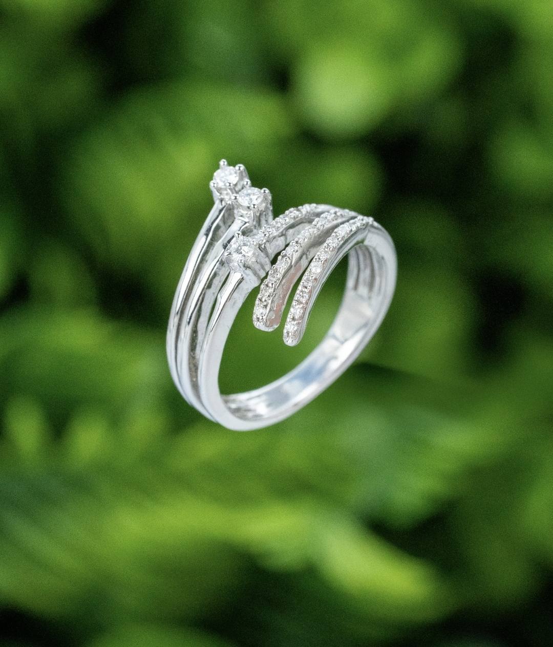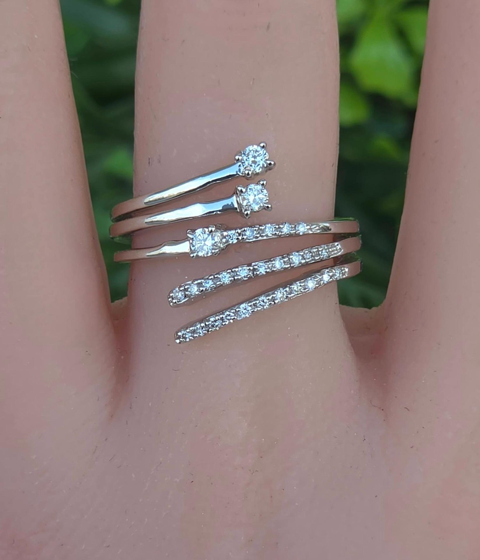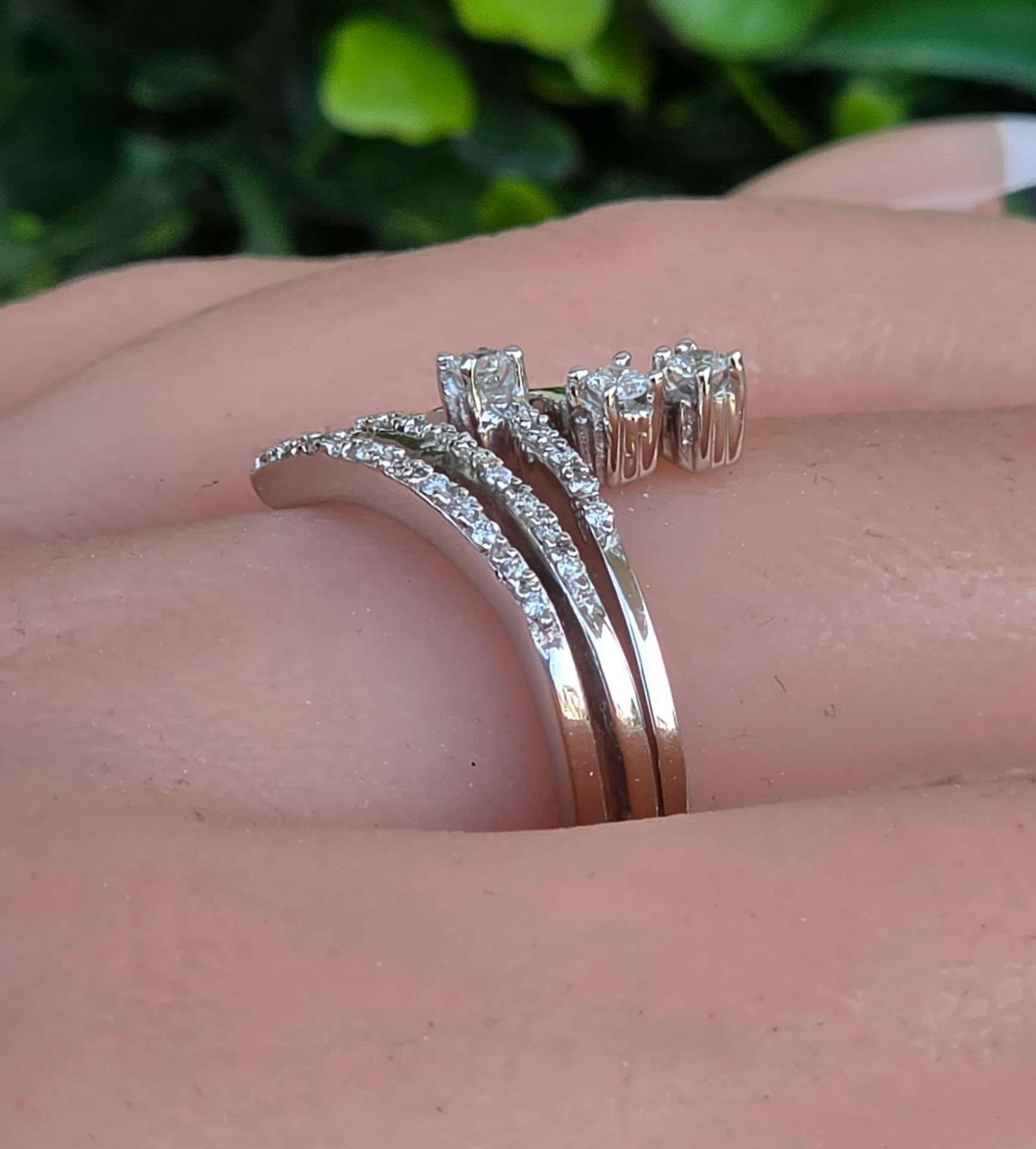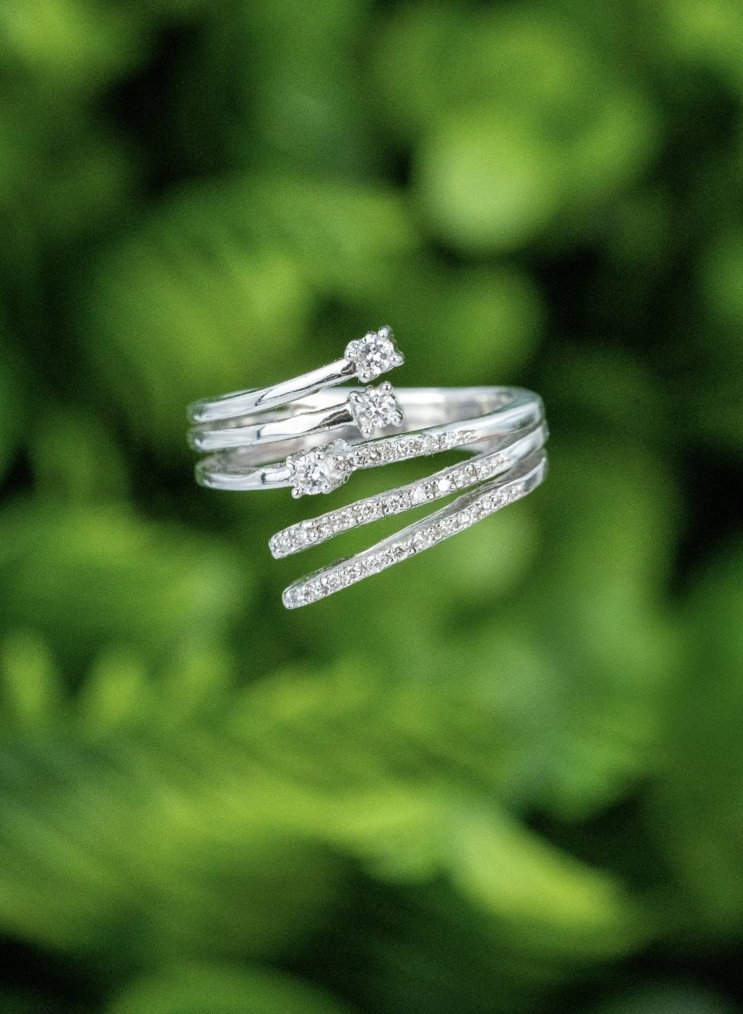 Inel vechi superb, din aur alb de 18K, cu 29 diamante naturale de calitate excelentă.