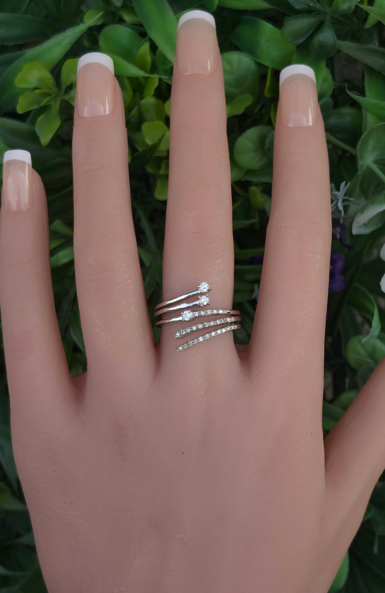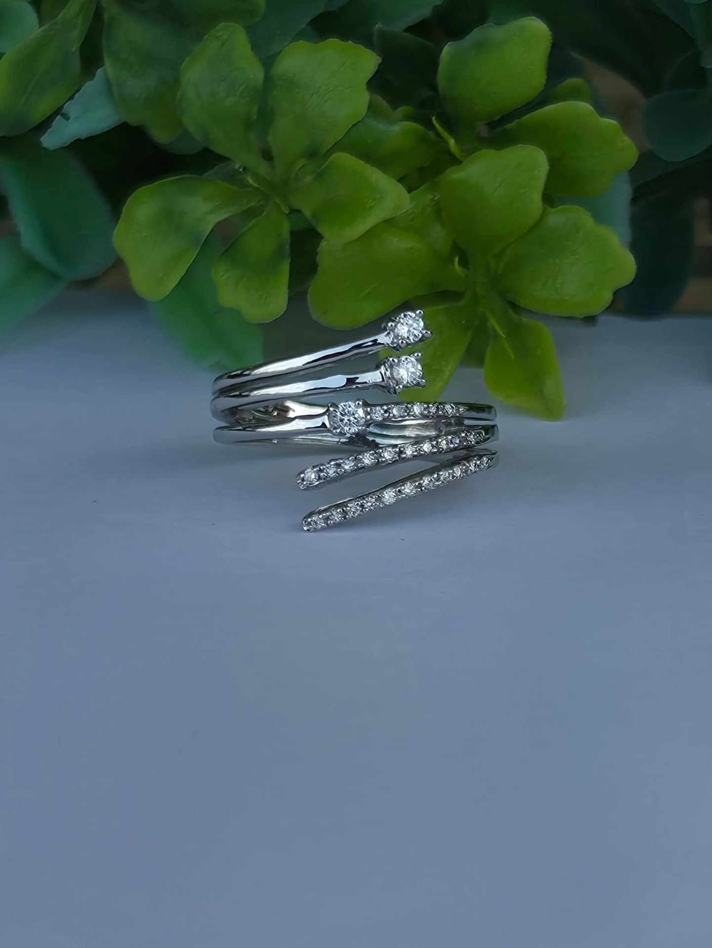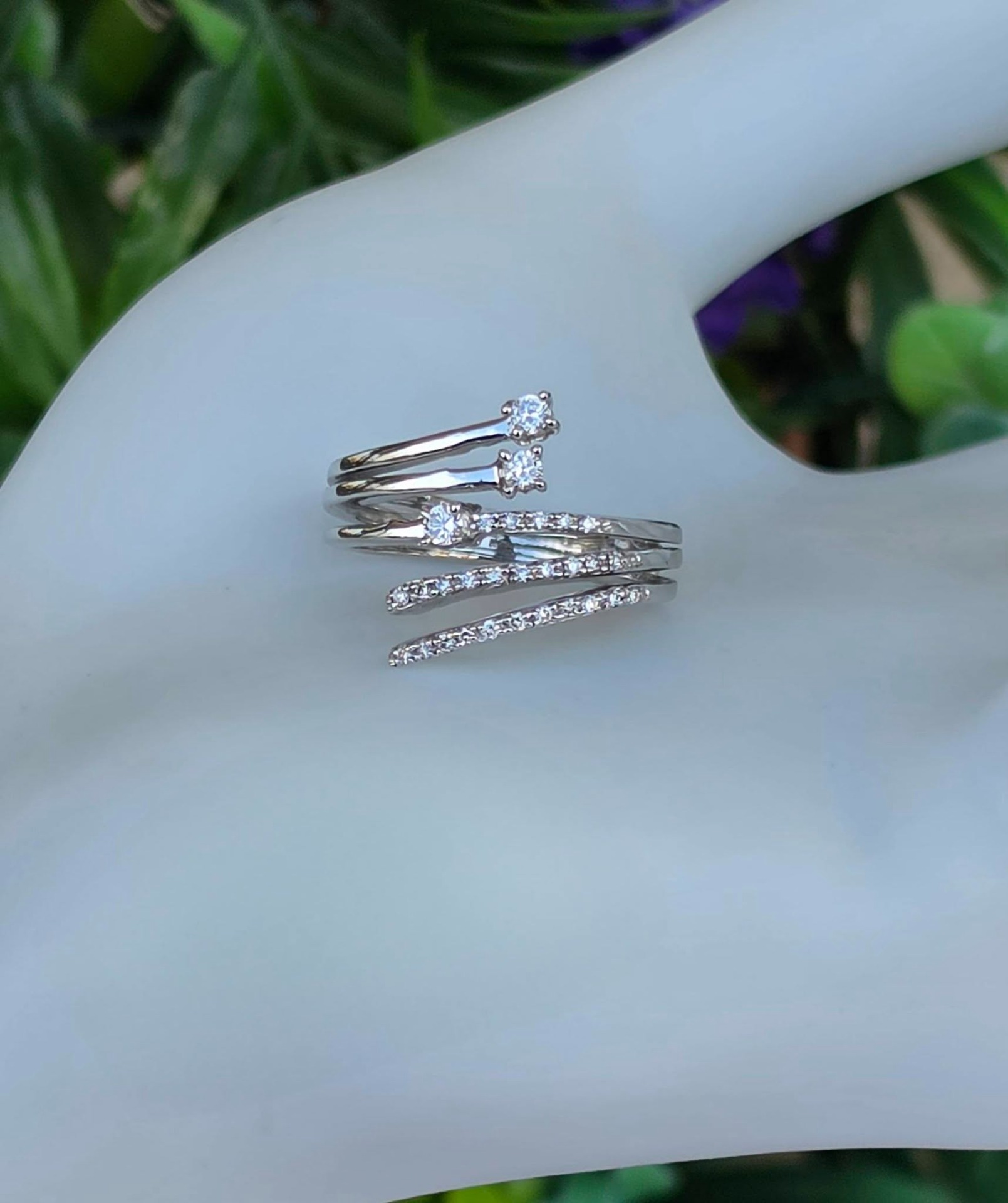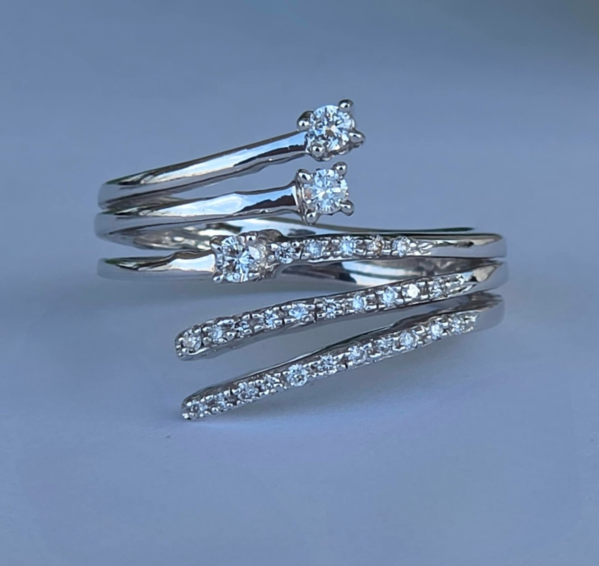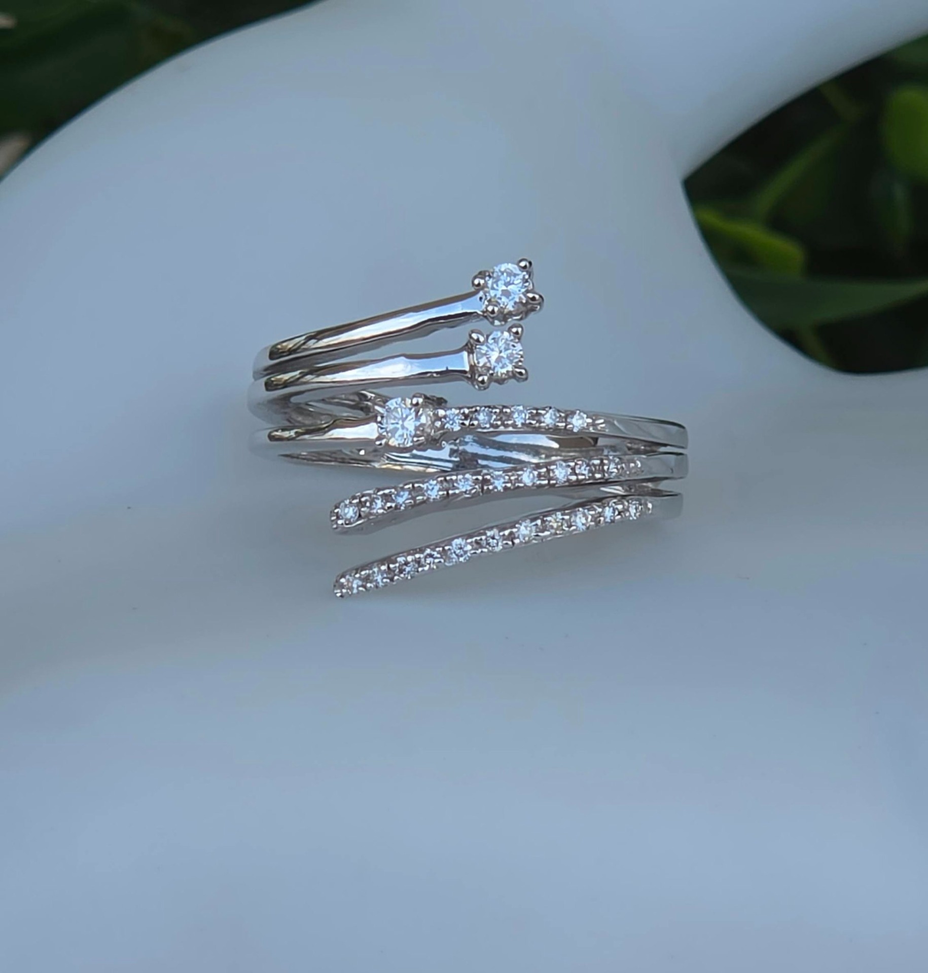Inel vechi superb, din aur alb de 18K, cu 29 diamante naturale de calitate excelentă.