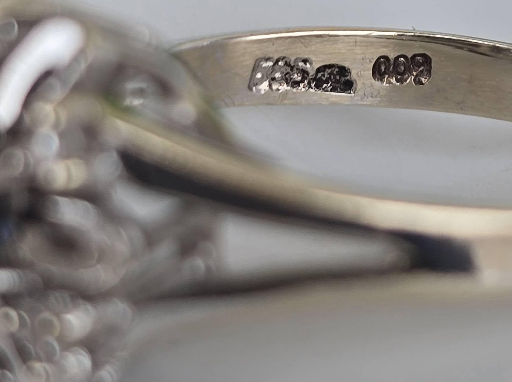 Prezintă marcaj 585 pentru puritate aur de 14K, marcaj "0.09" pentru caratajul diamantelor și marcaj de meșter.