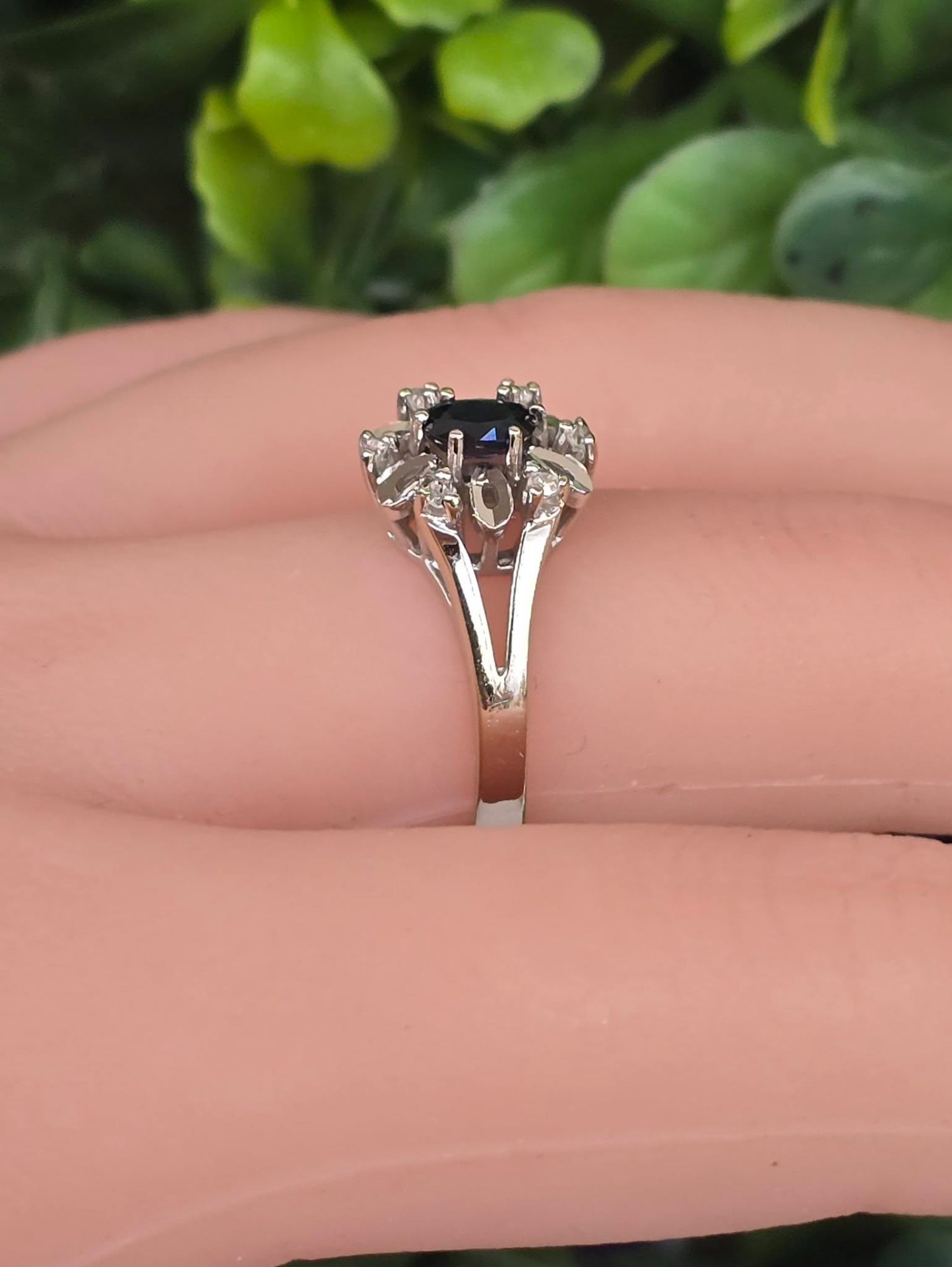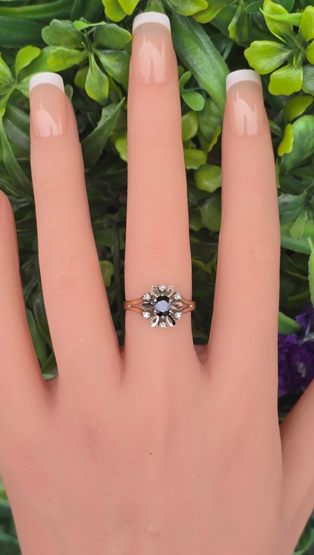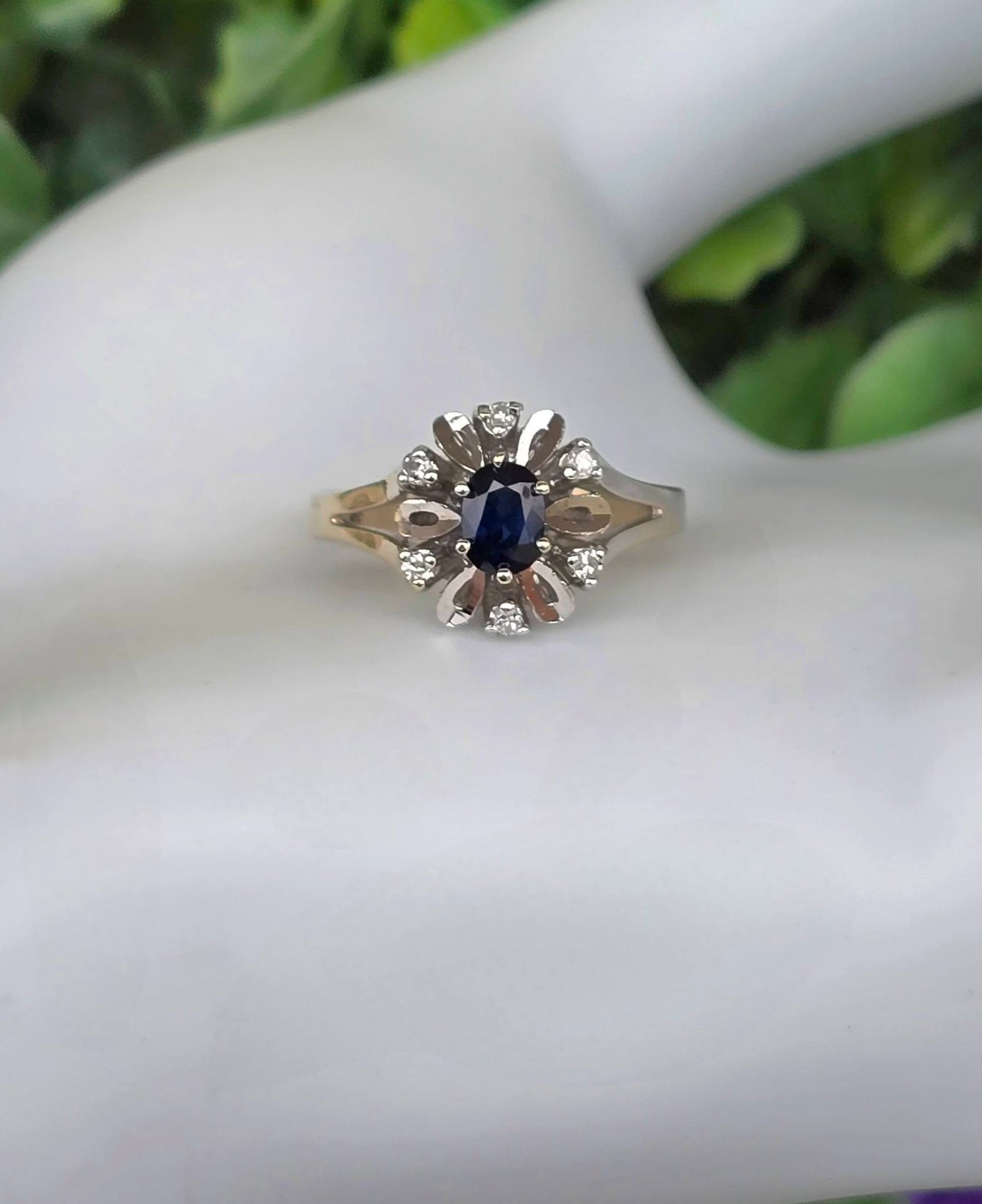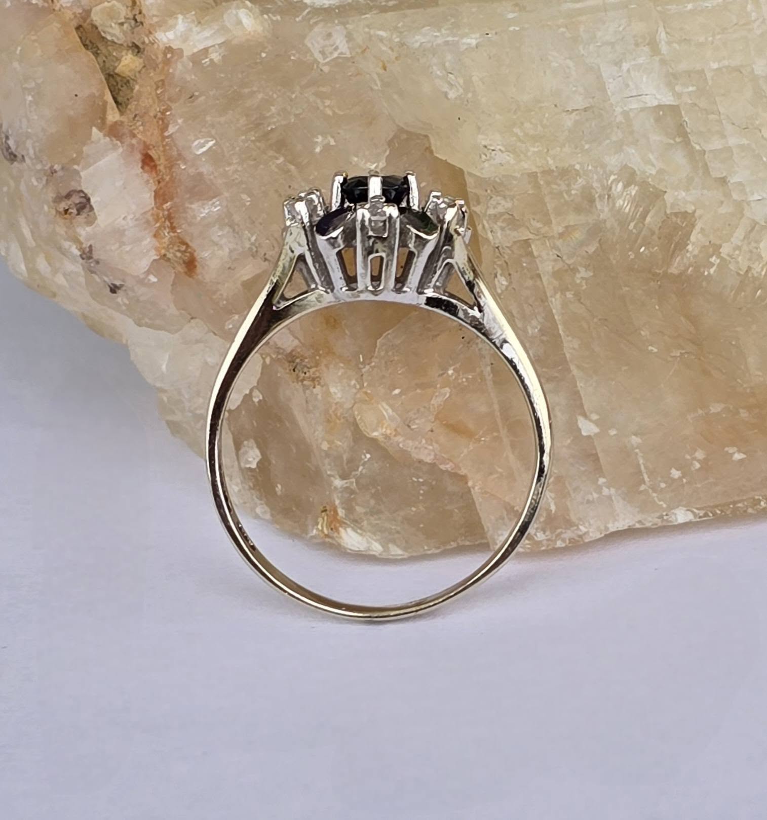 Inel vechi superb, din aur de 14K, cu safir și 6 diamante naturale.