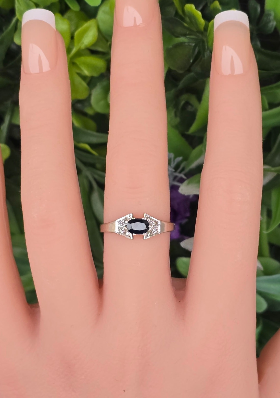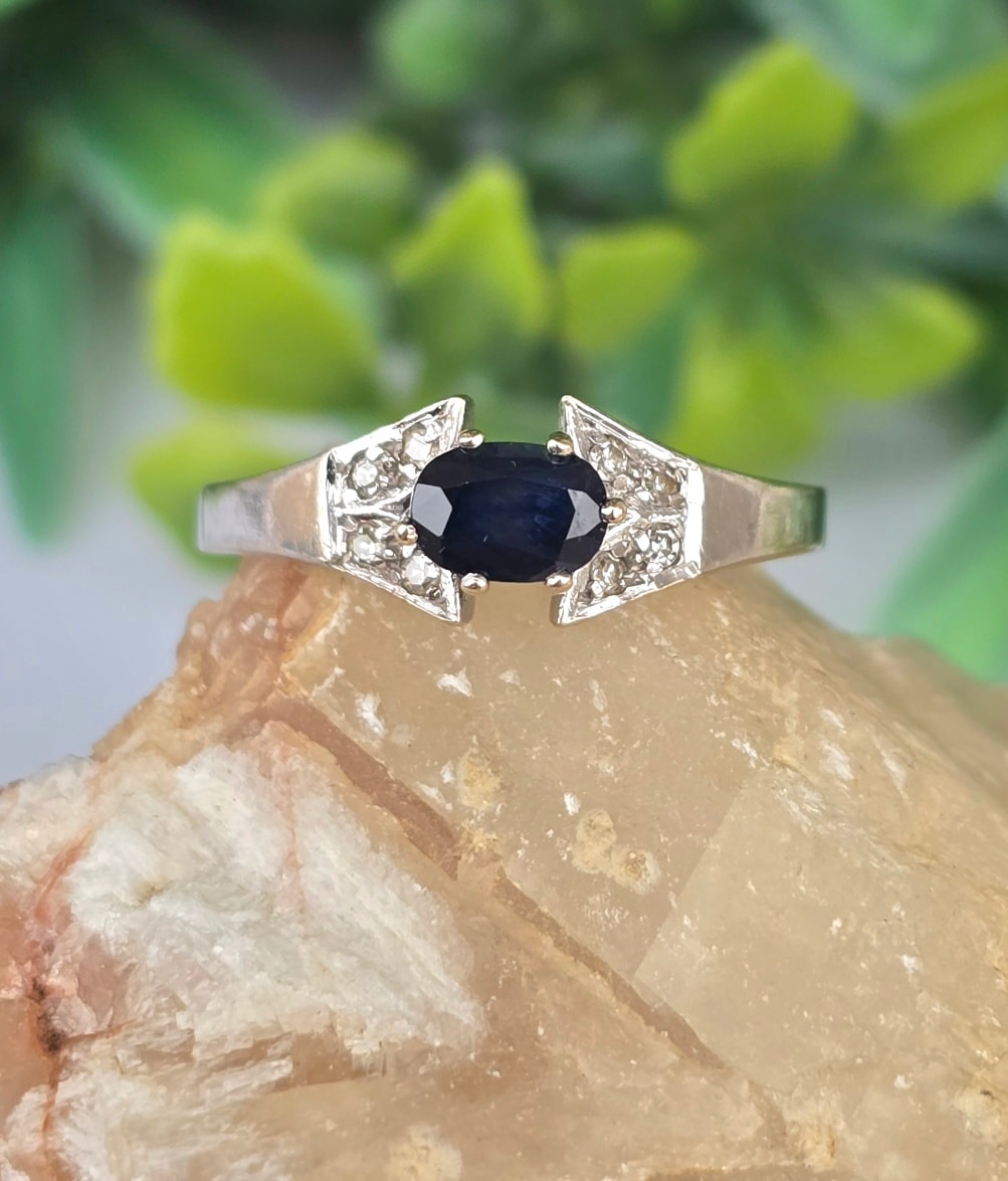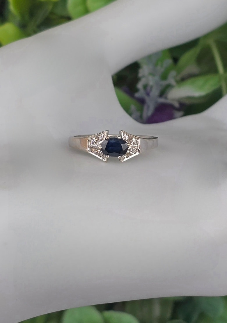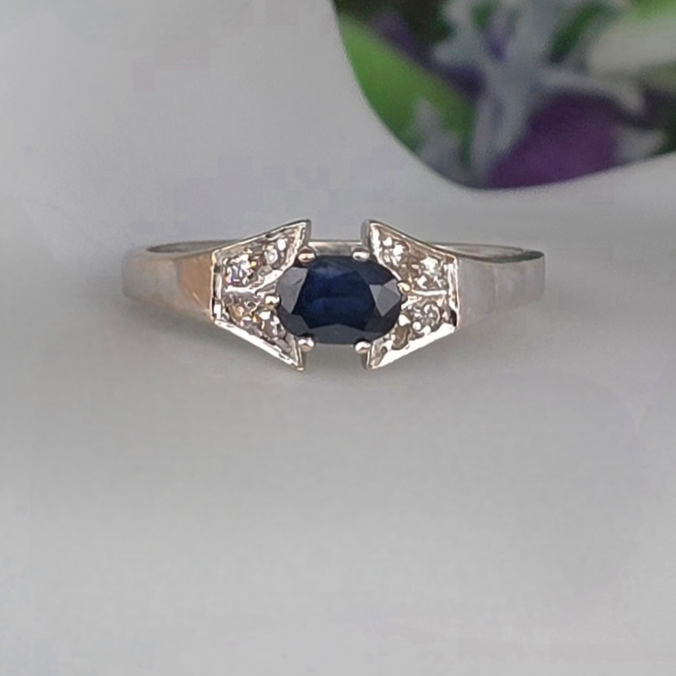 Inel vechi superb, din aur de 14K, cu safir și 8 diamante naturale.