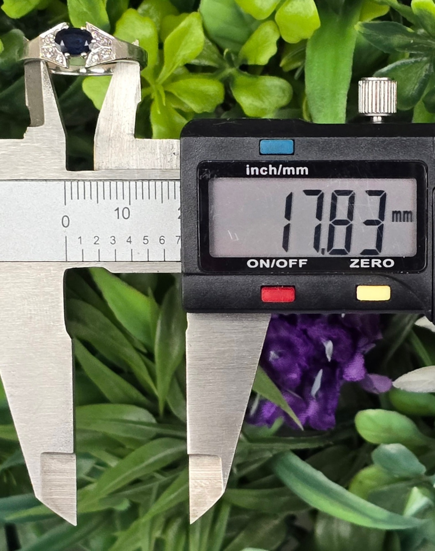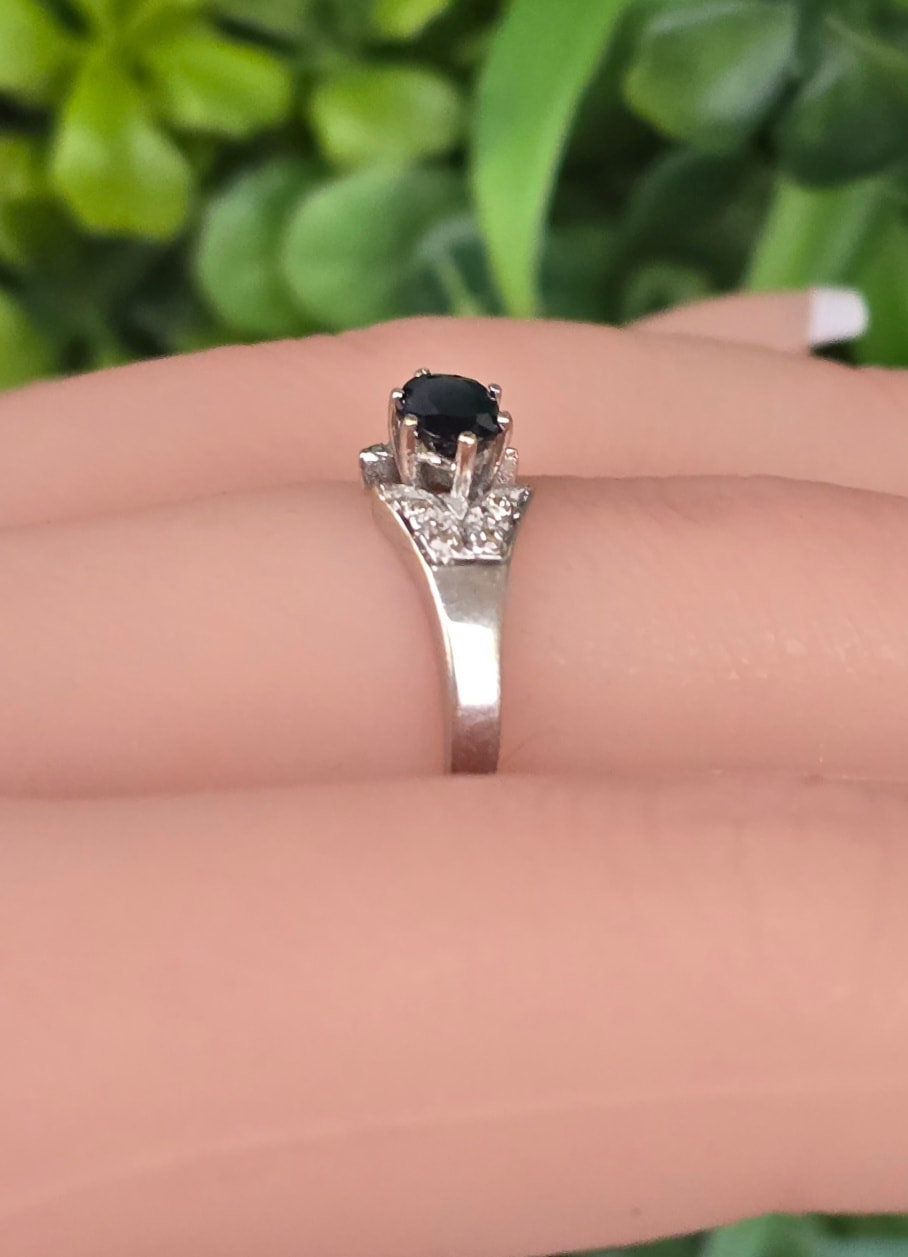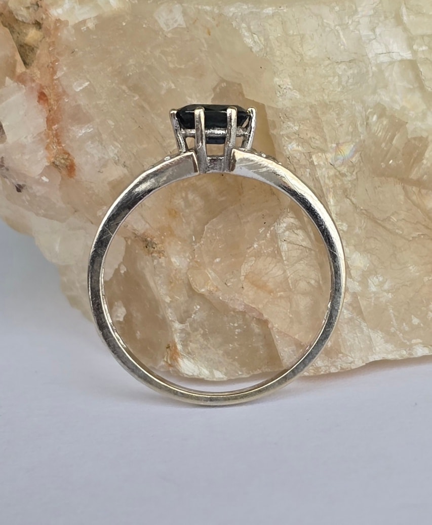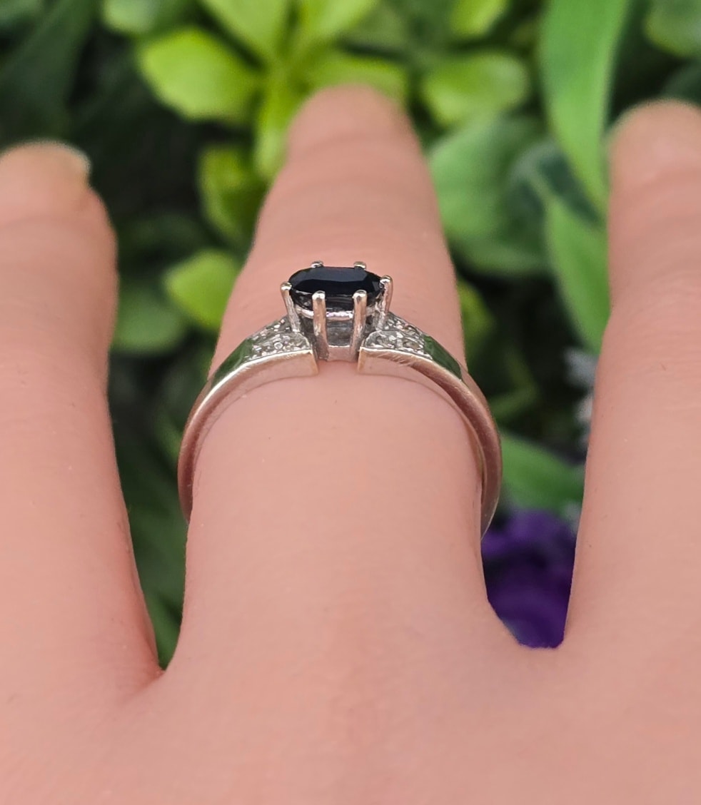 Inel vechi superb, din aur de 14K, cu safir și 8 diamante naturale.
