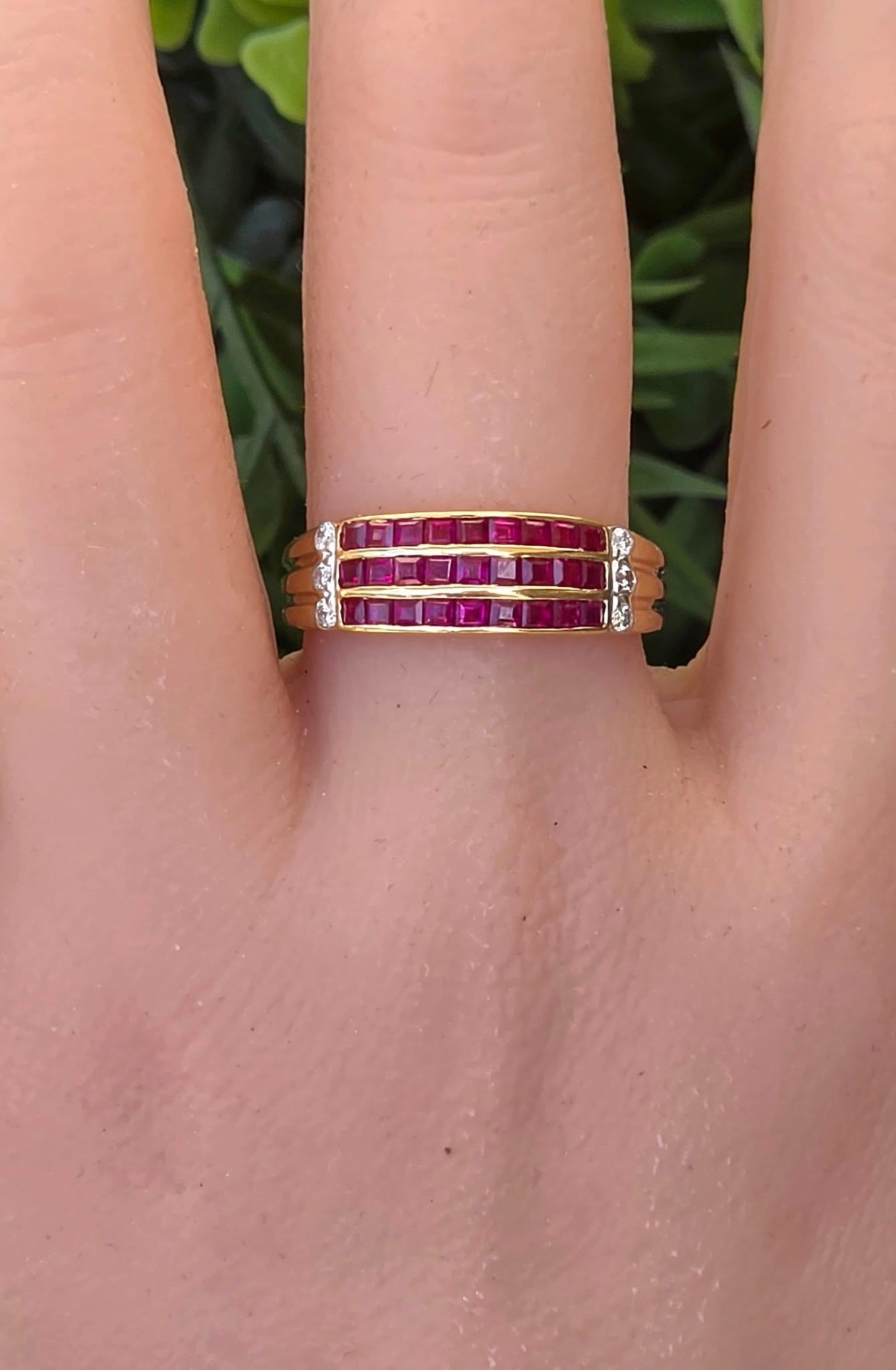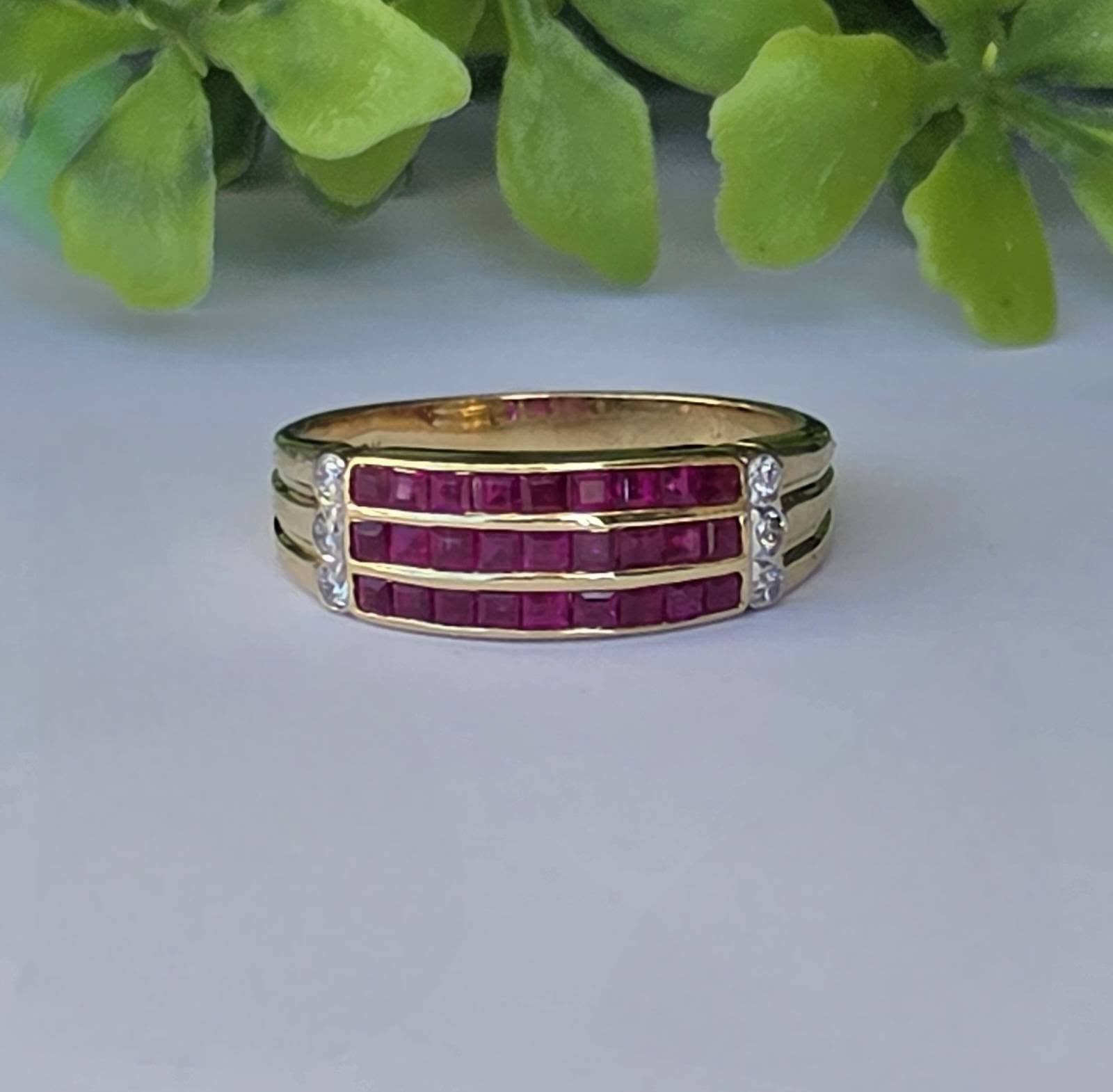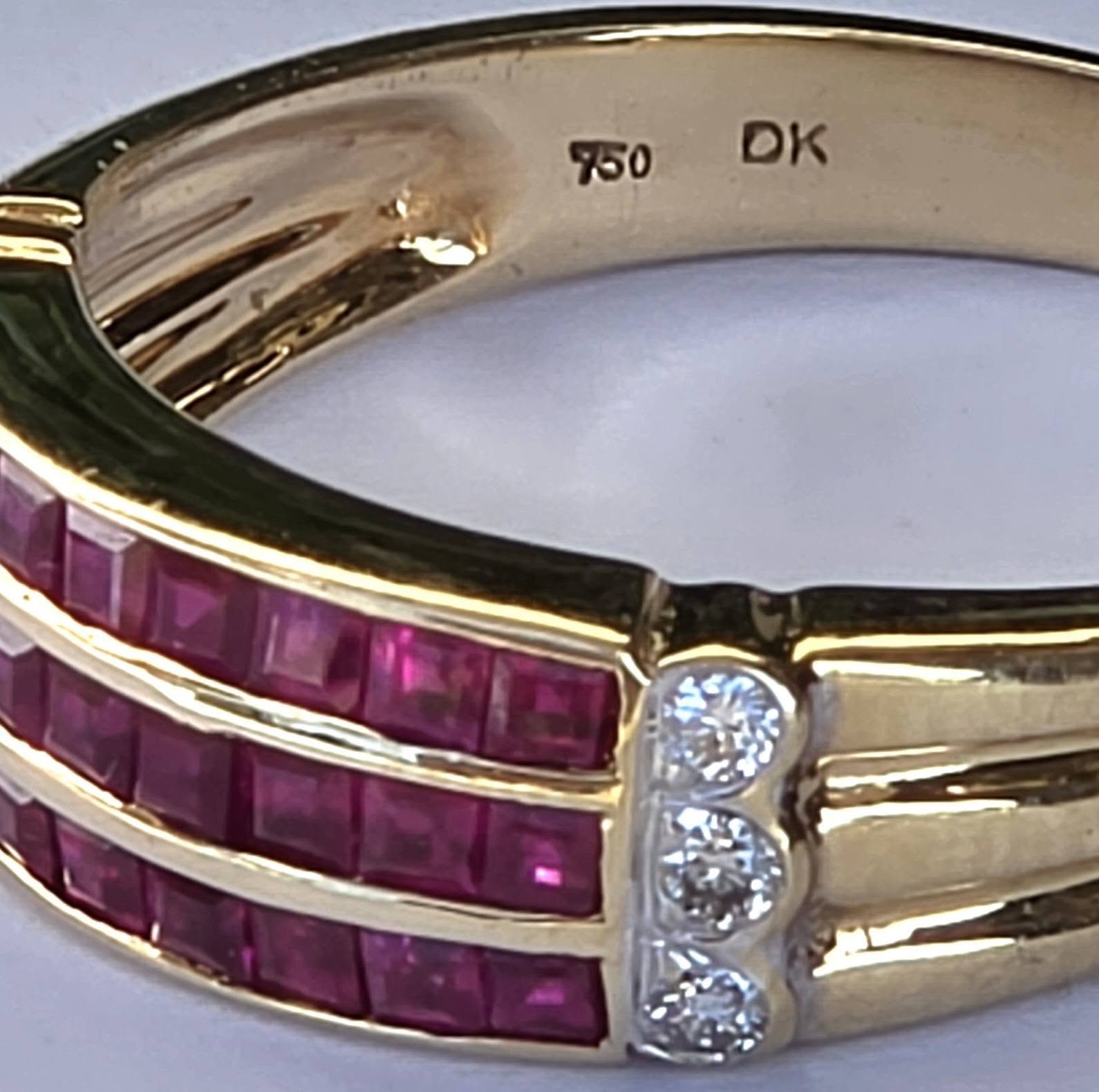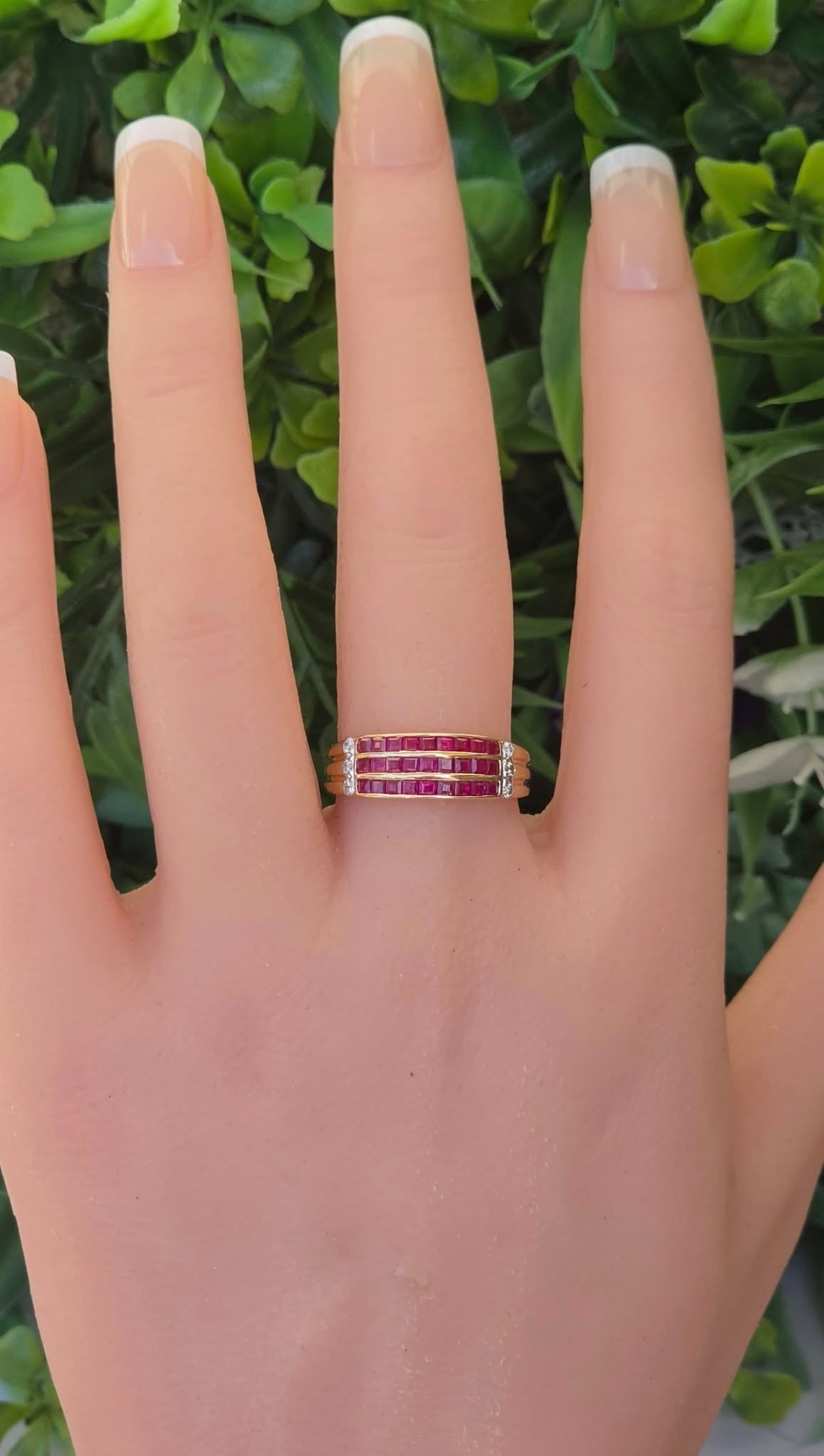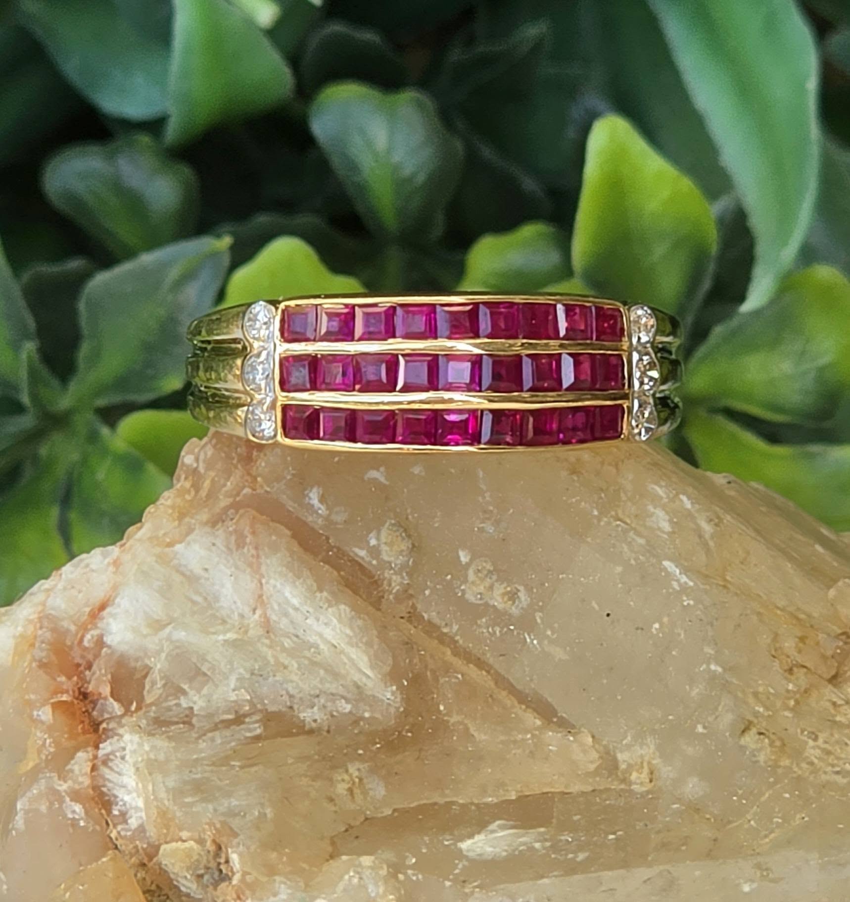 Inel vechi superb, din aur de 18K, cu 27 rubine și 6 diamante naturale, de calitate superioară.