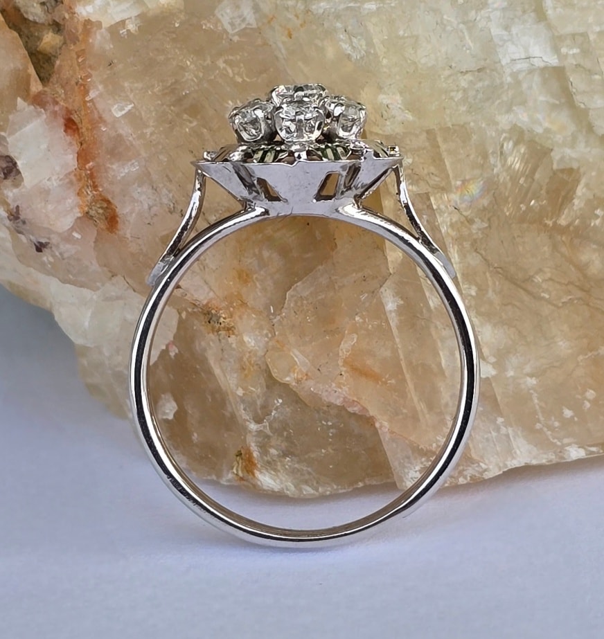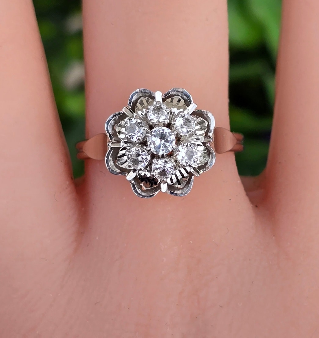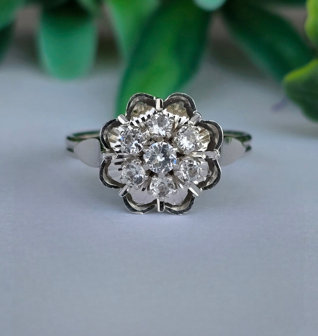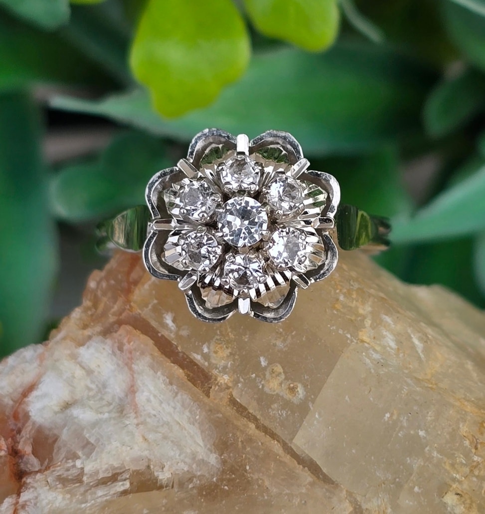Inel vechi superb, din aur de 18K, cu 7 safire albe naturale.