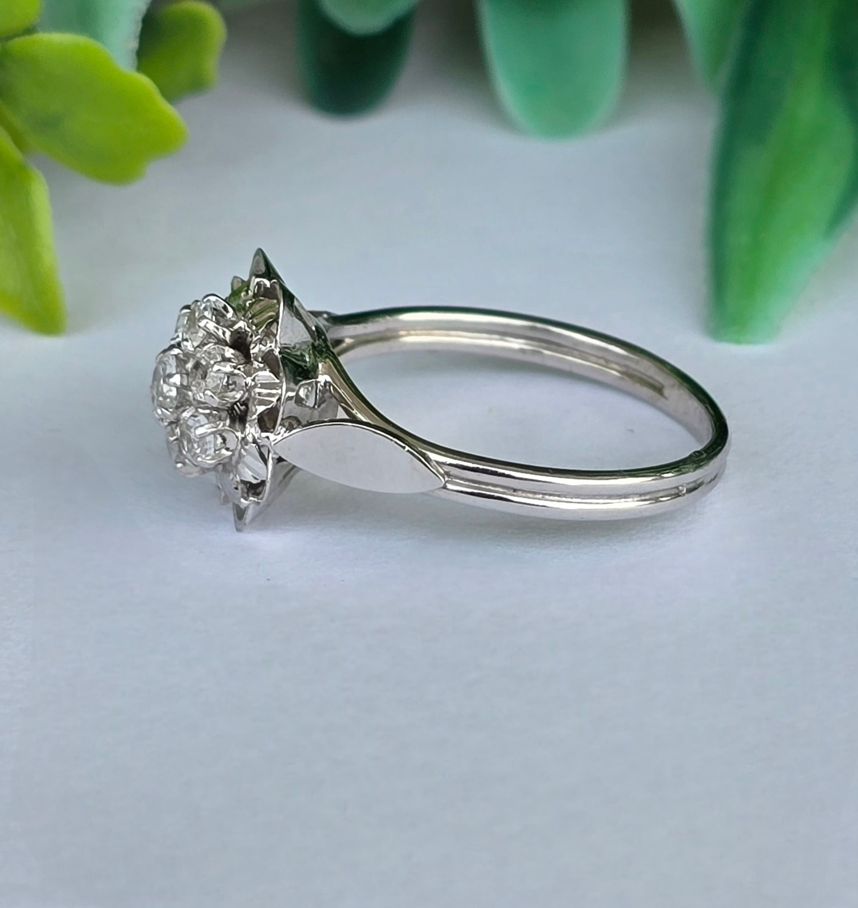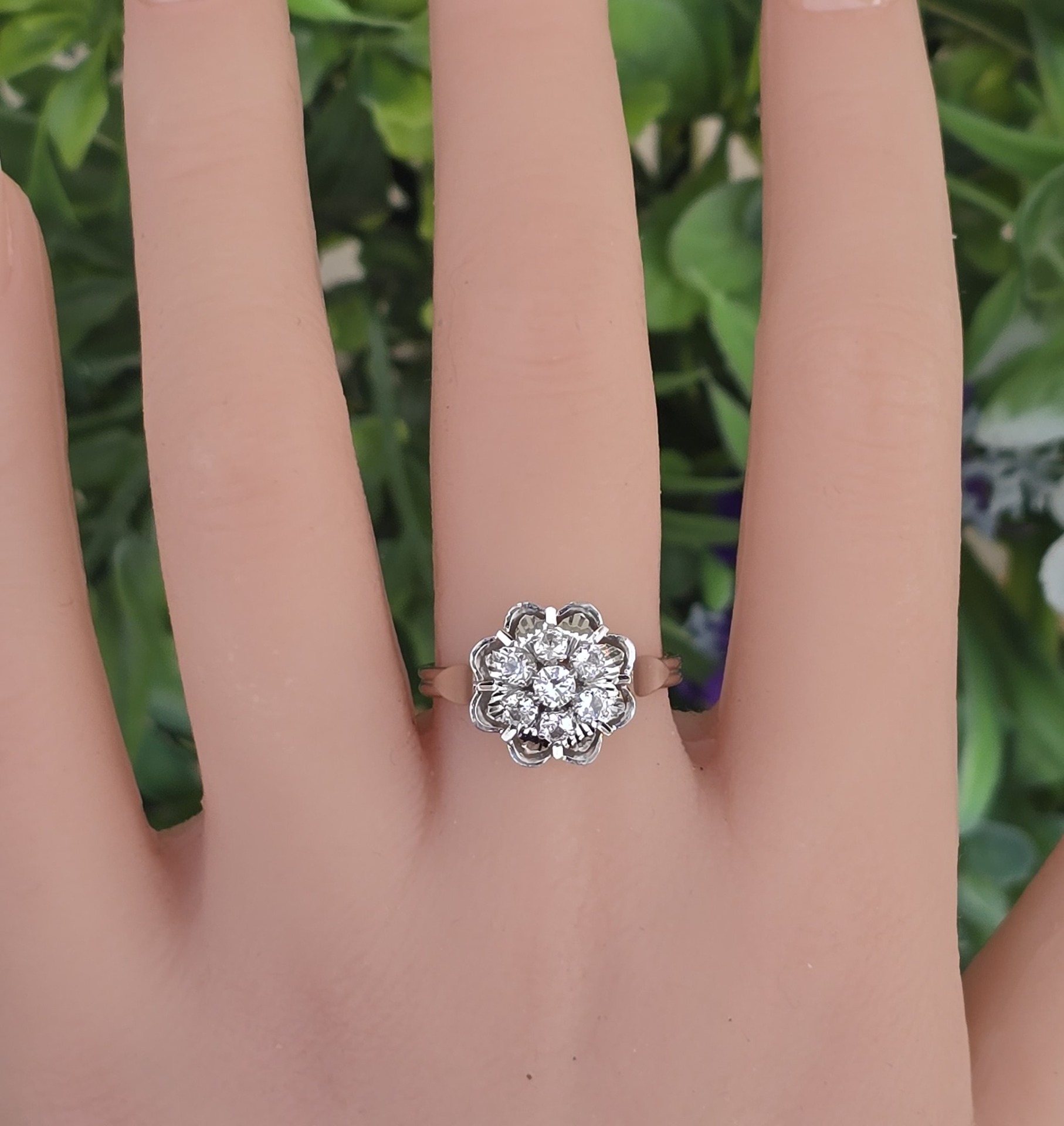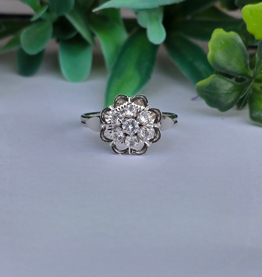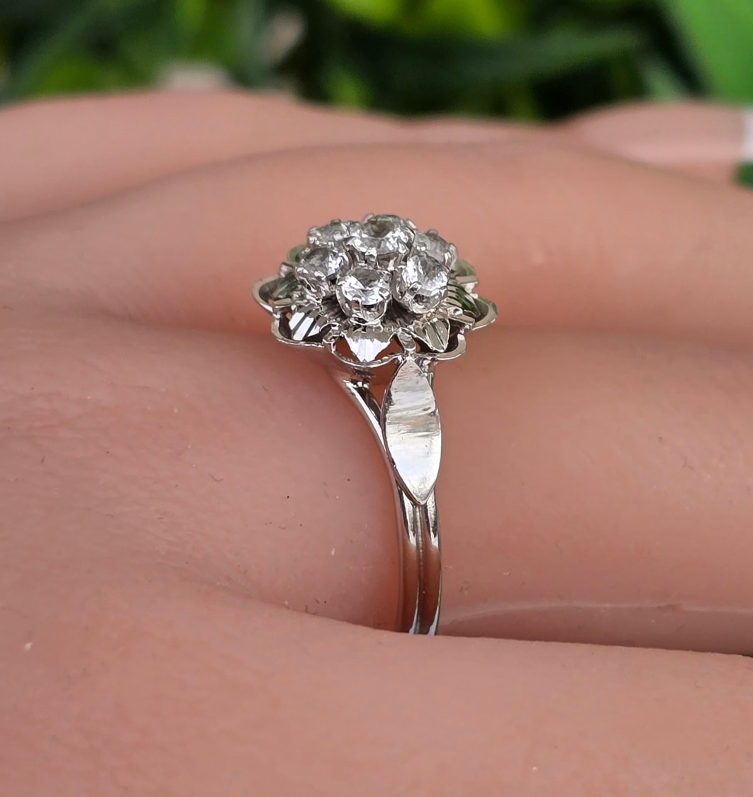 Inel vechi superb, din aur de 18K, cu 7 safire albe naturale.