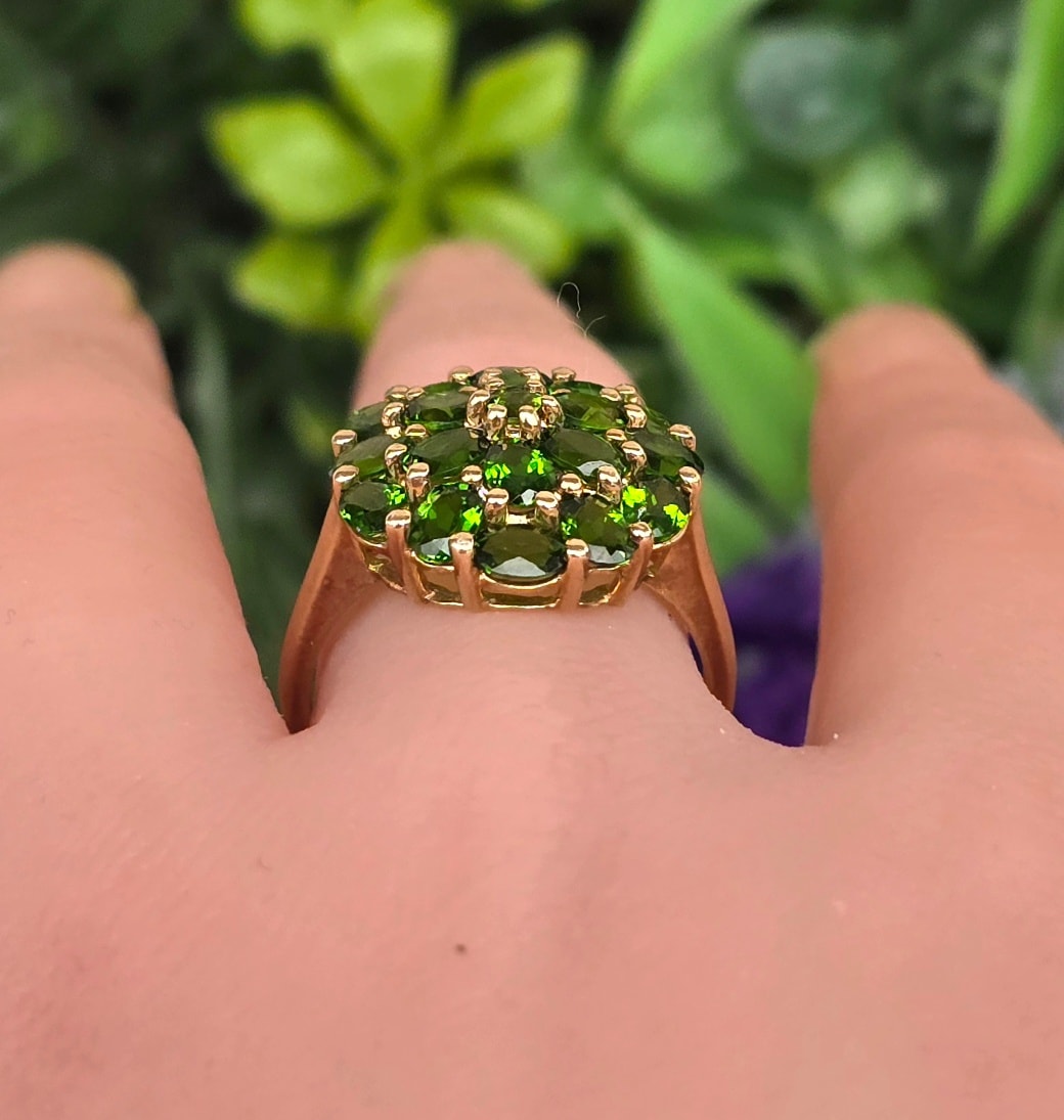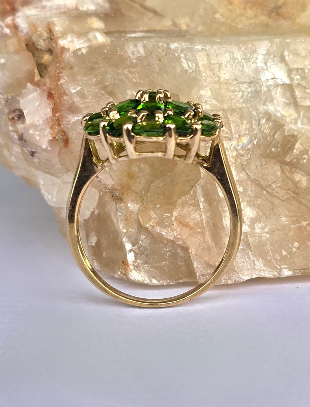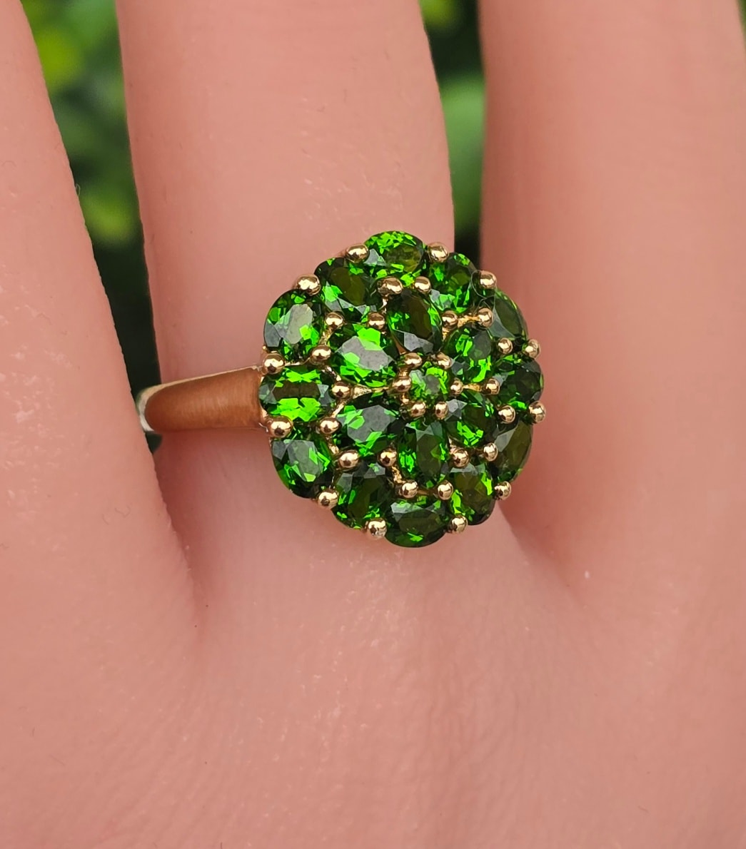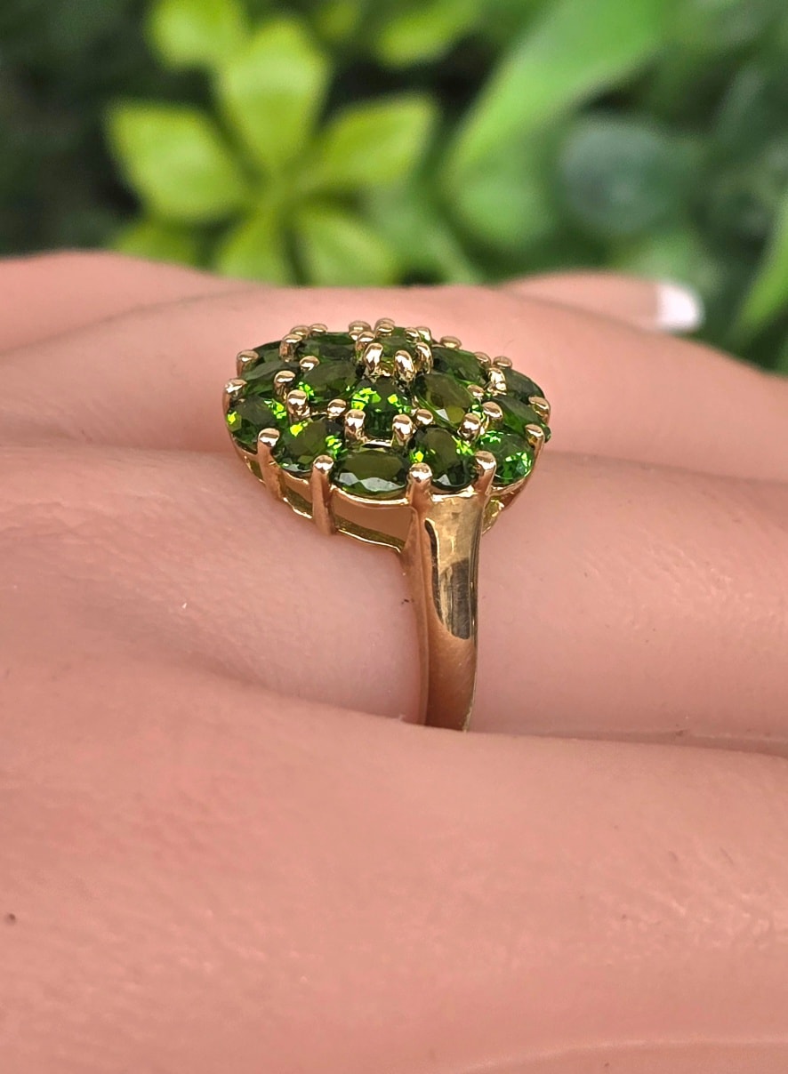 Inel vechi superb, din aur de 8K, cu 19 crom diopsid naturale.