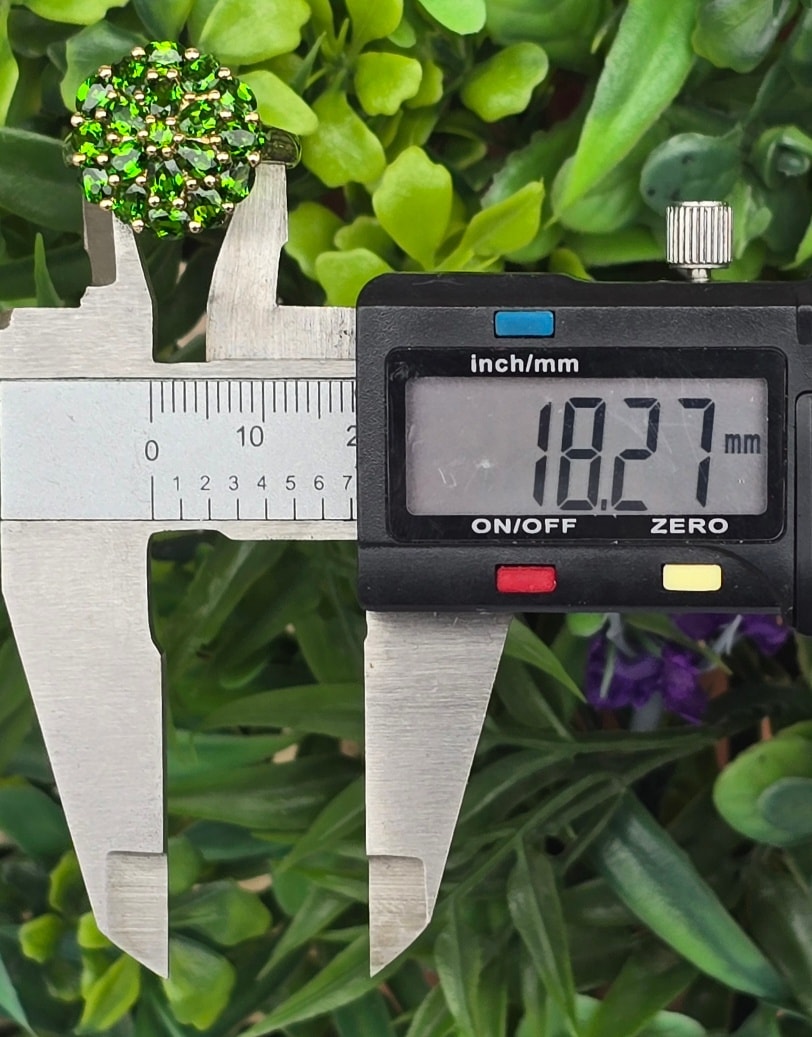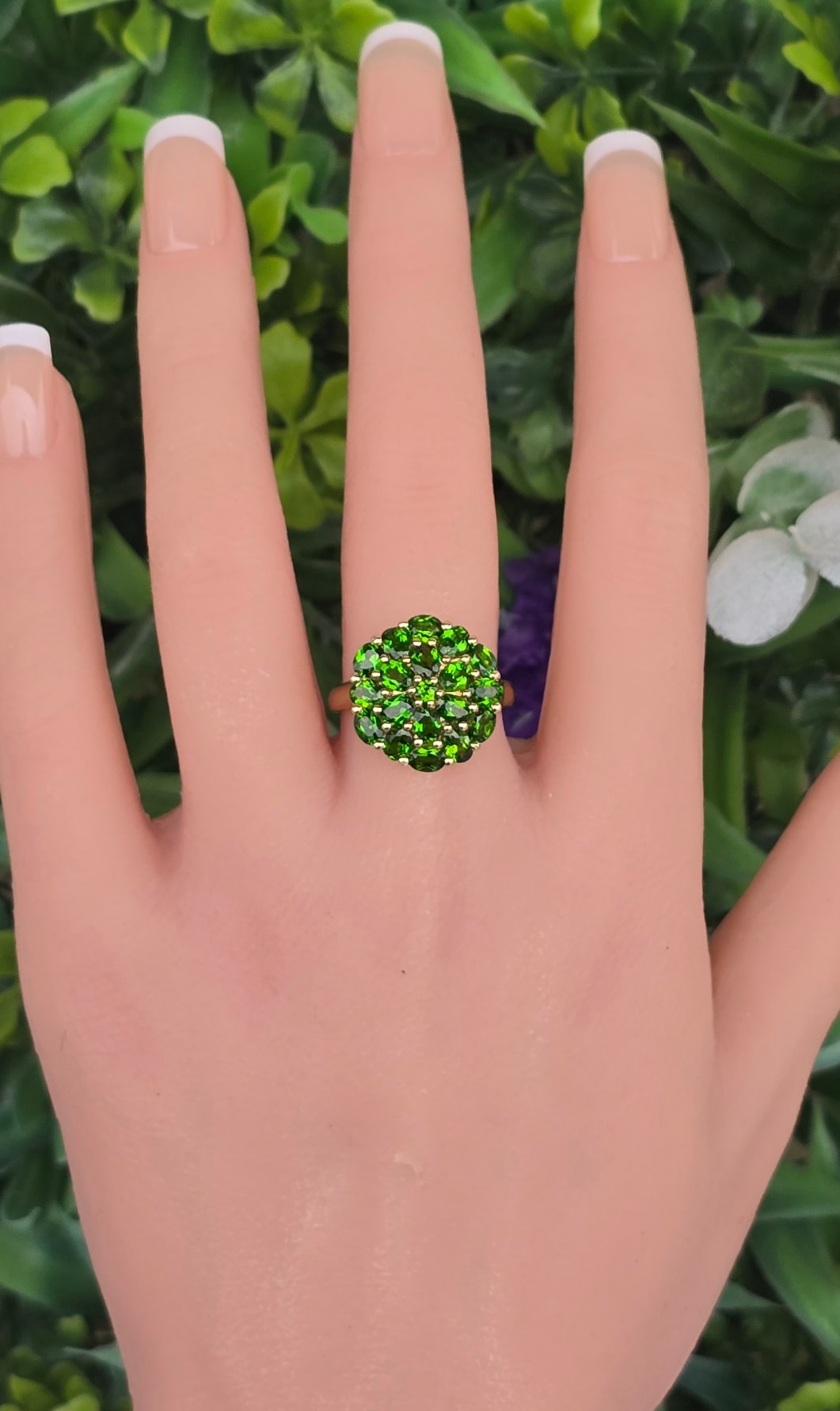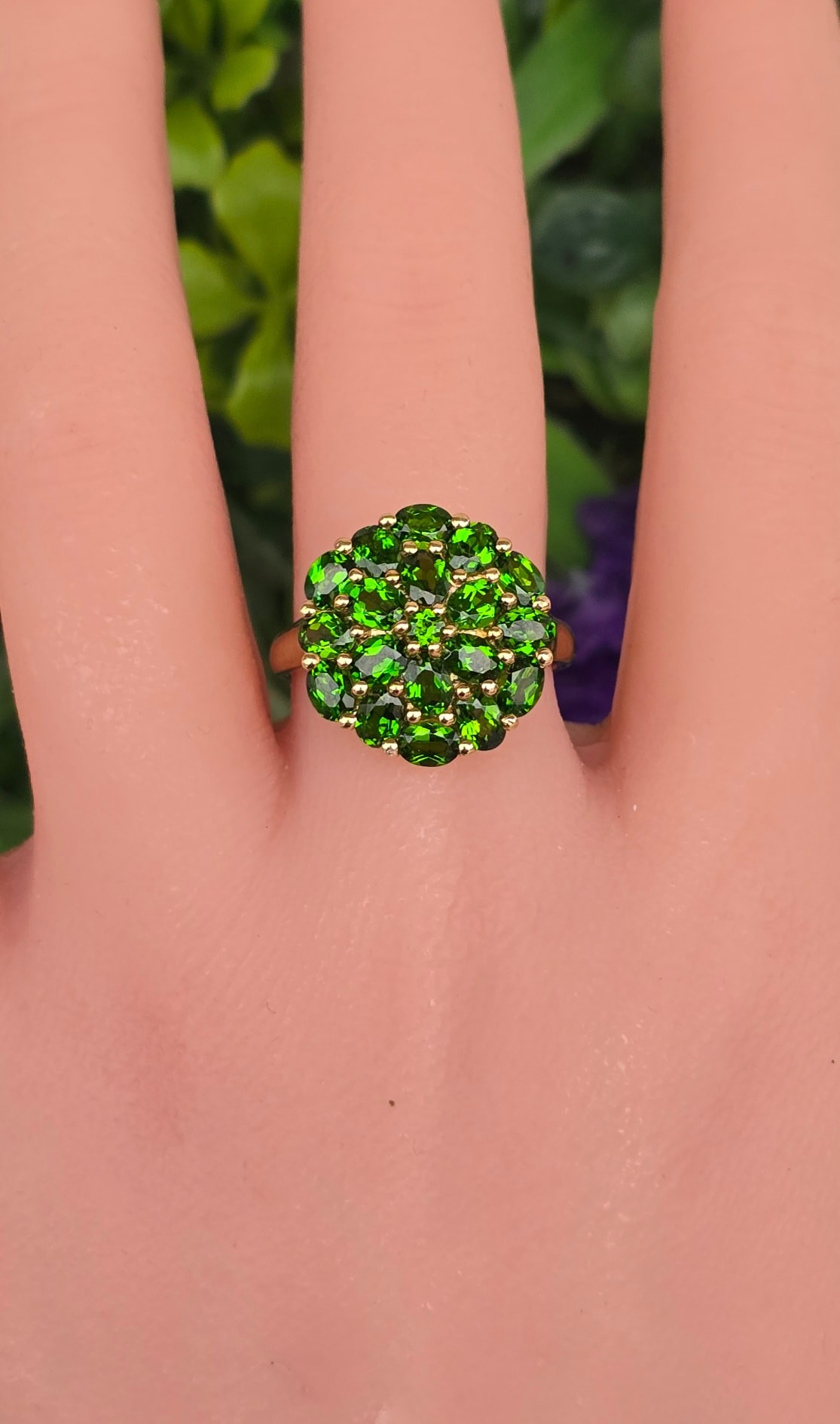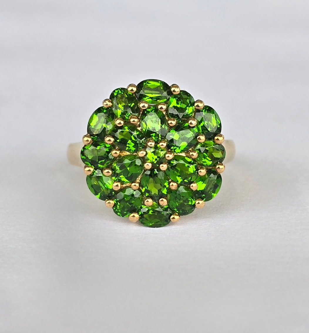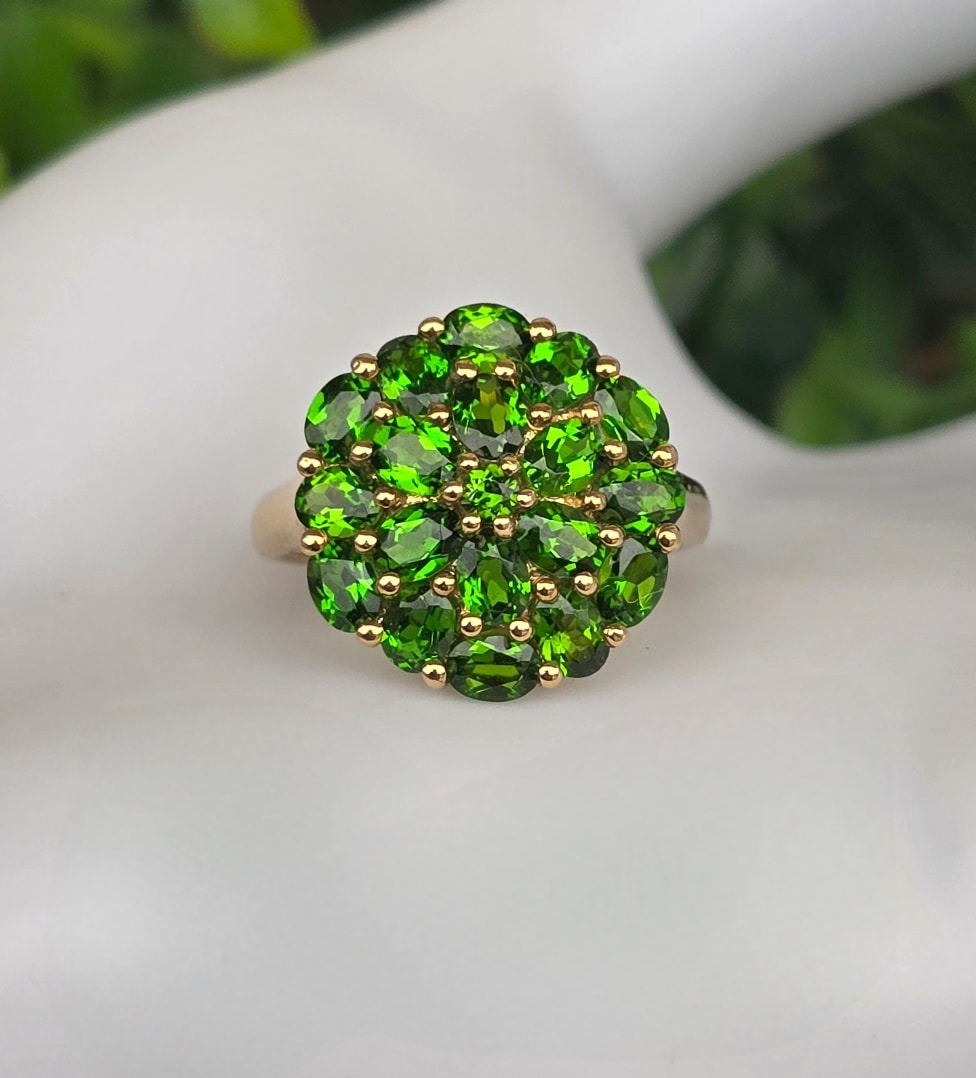 Inel vechi superb, din aur de 8K, cu 19 crom diopsid naturale.