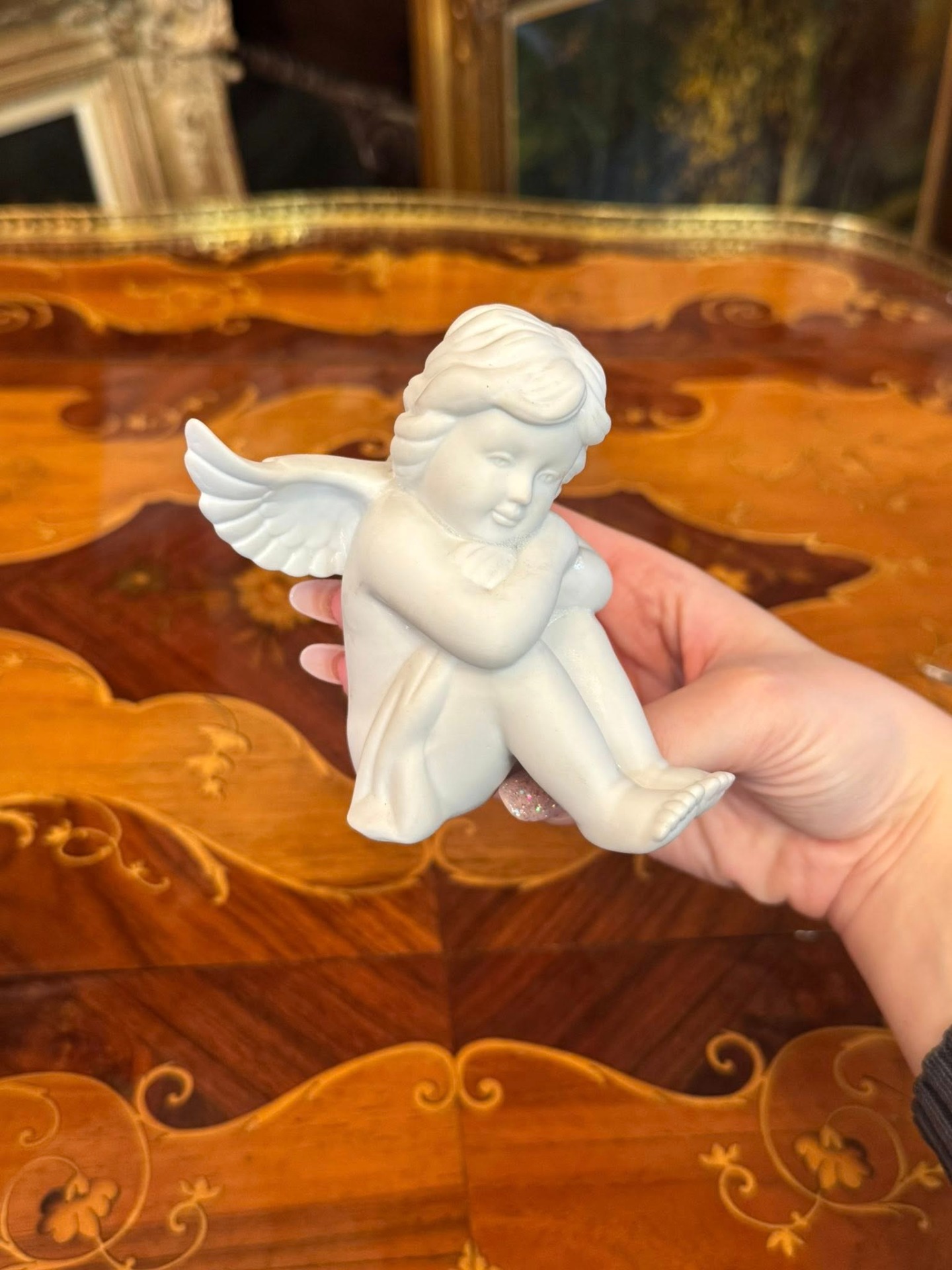 Îngeraș din porțelan alb, mat (biscuit), reprezentând un îngeraș,