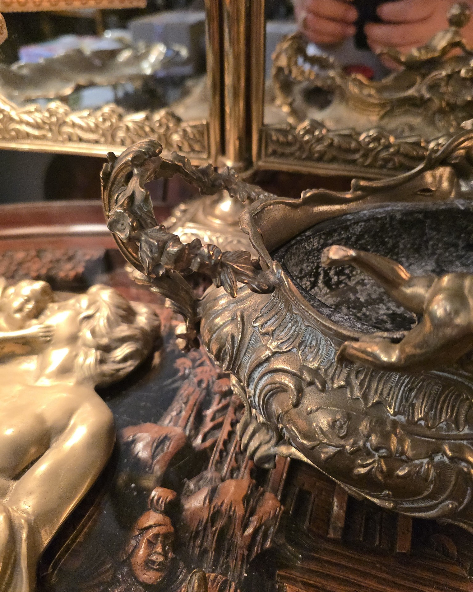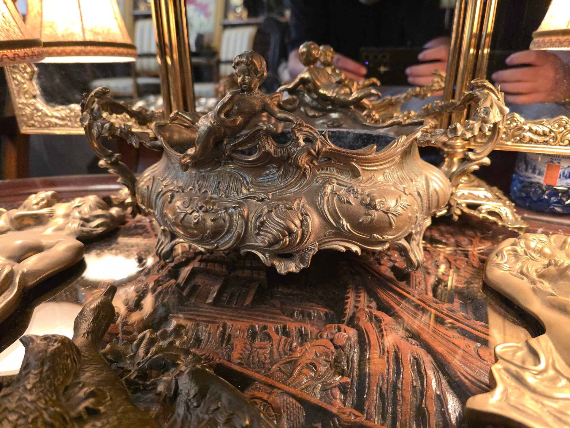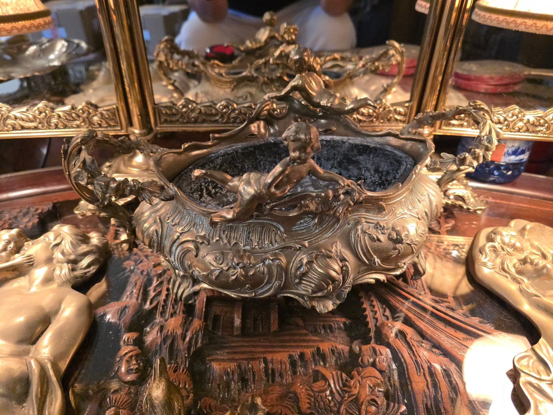 Jardiniera din bronz cu amorasi.