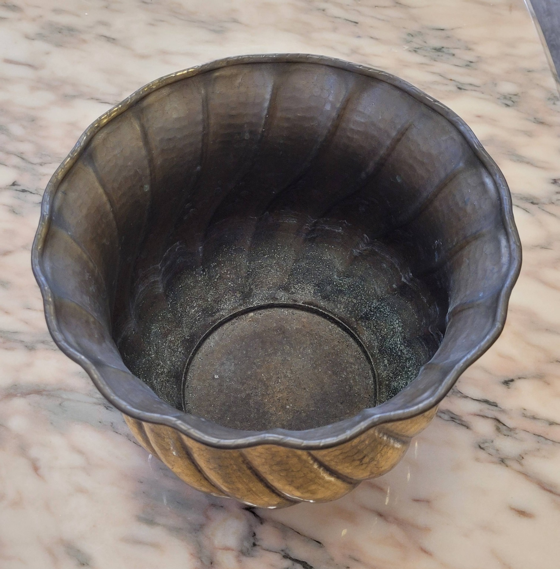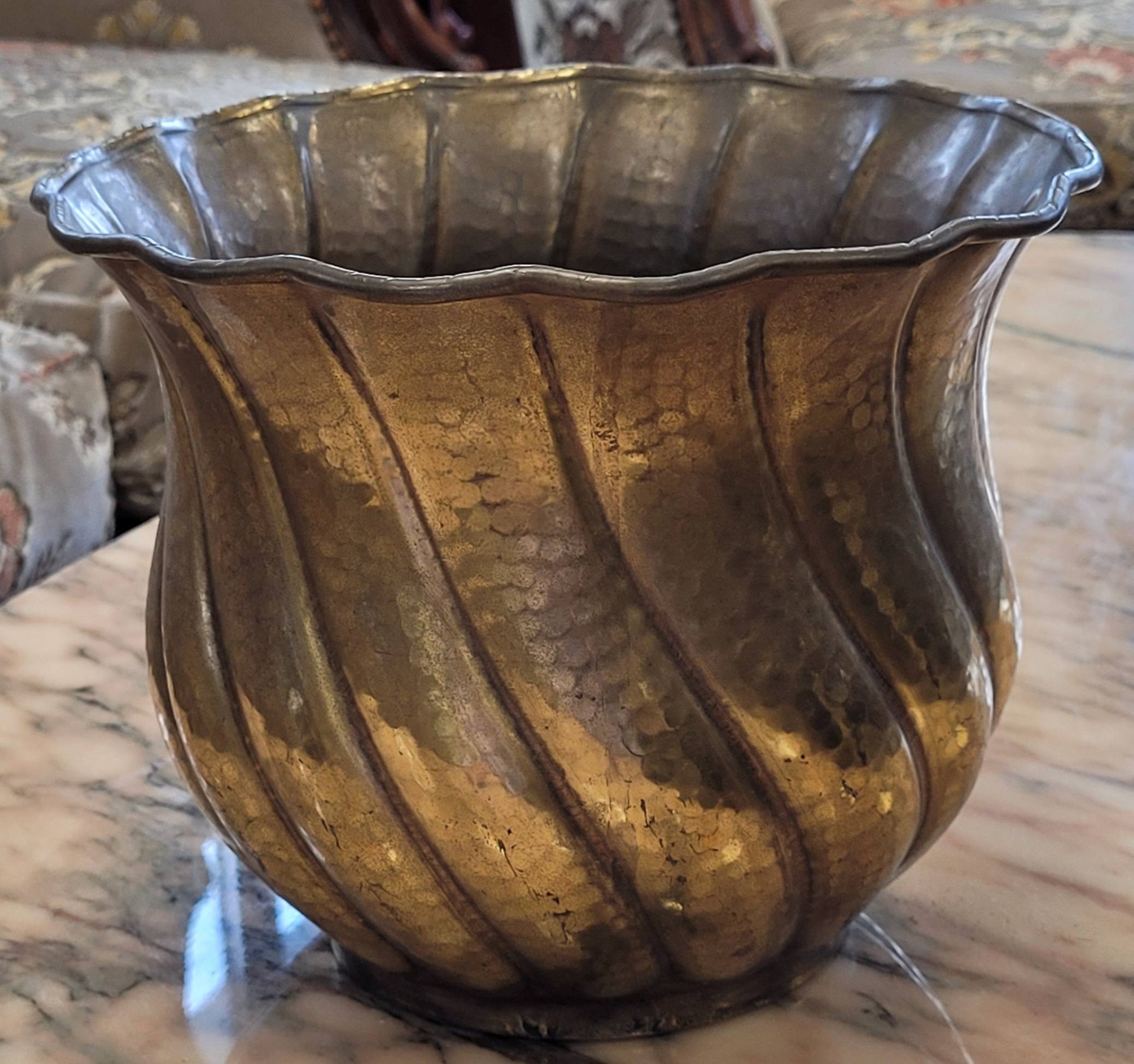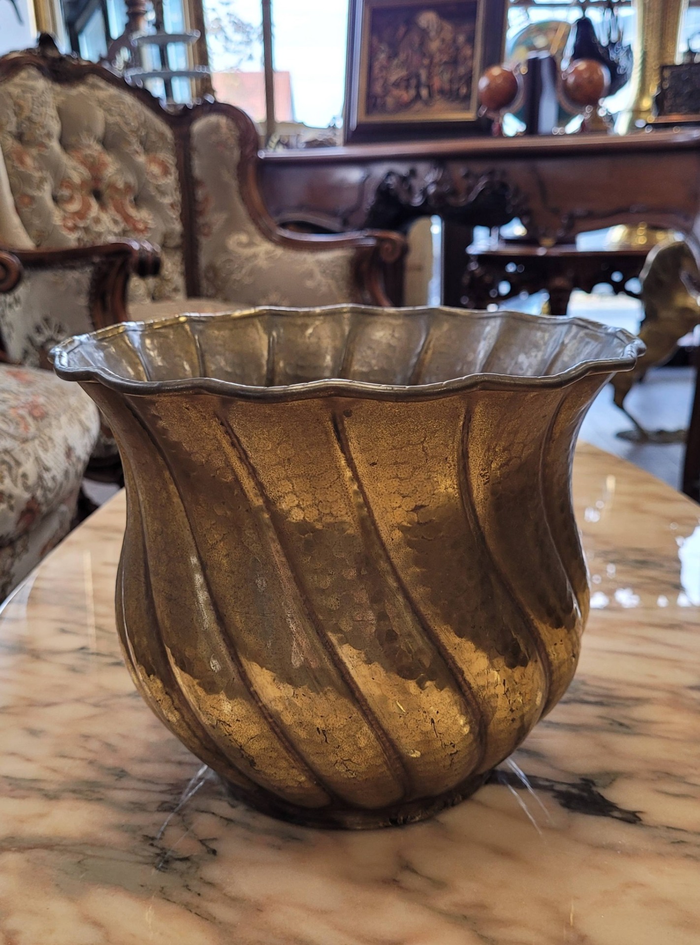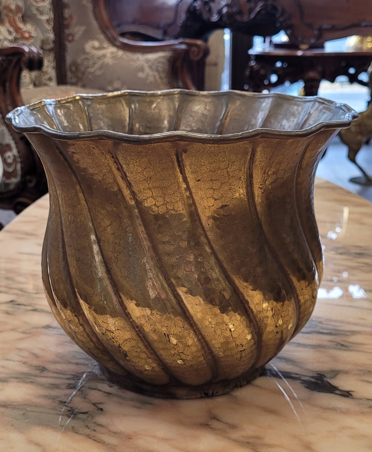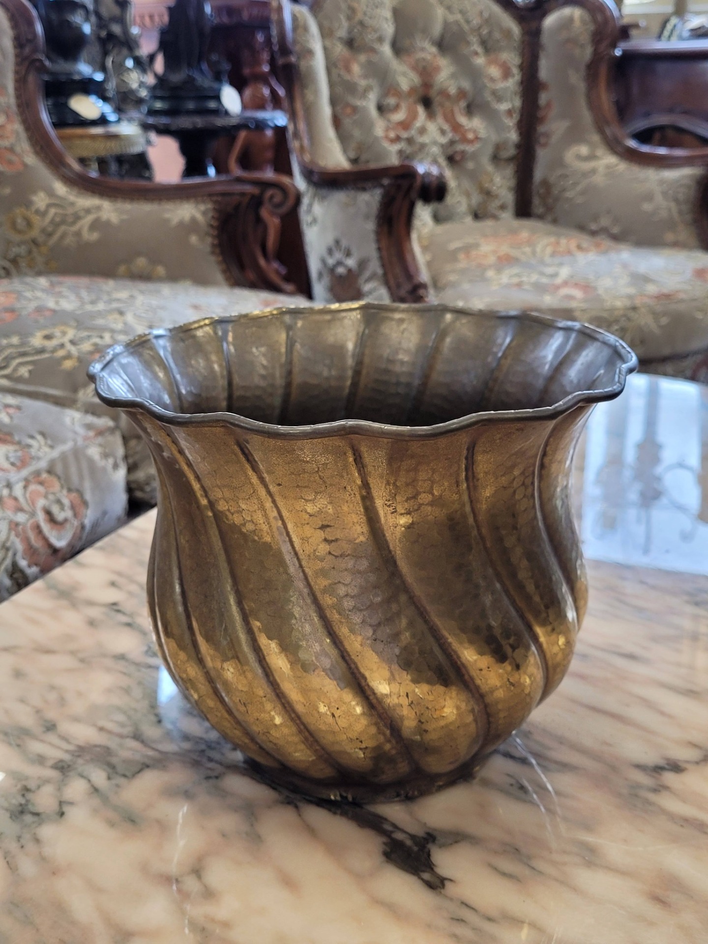 Jardinieră vintage din alamă forjată, design răsucit (twist).