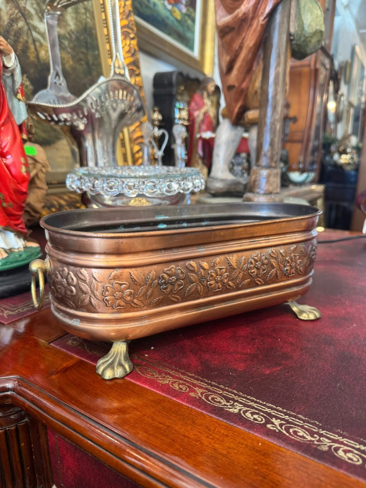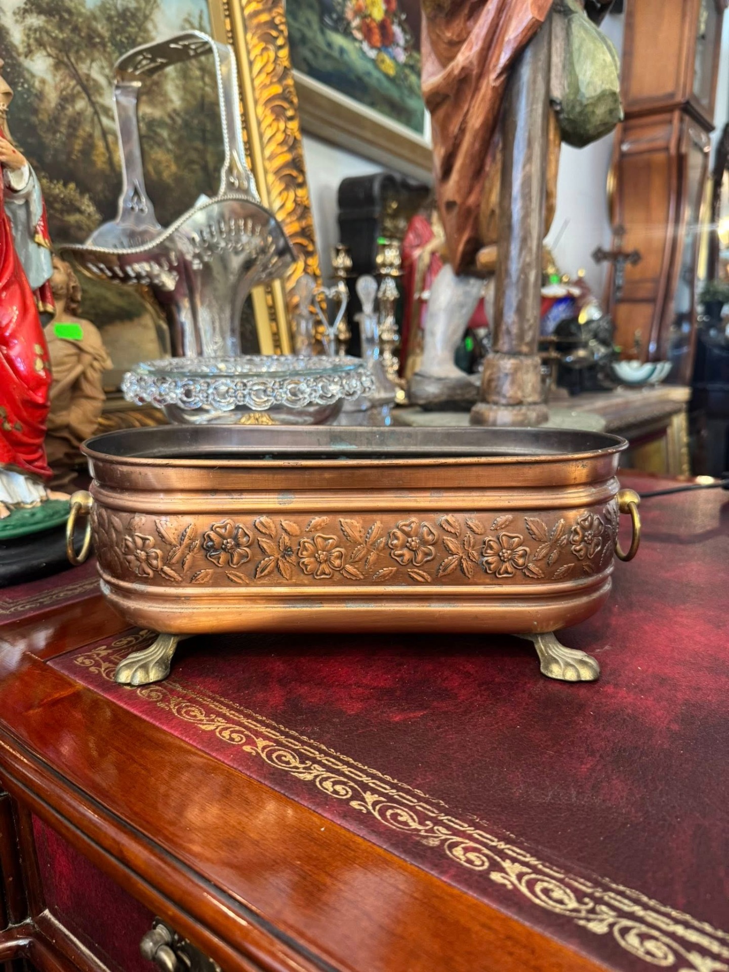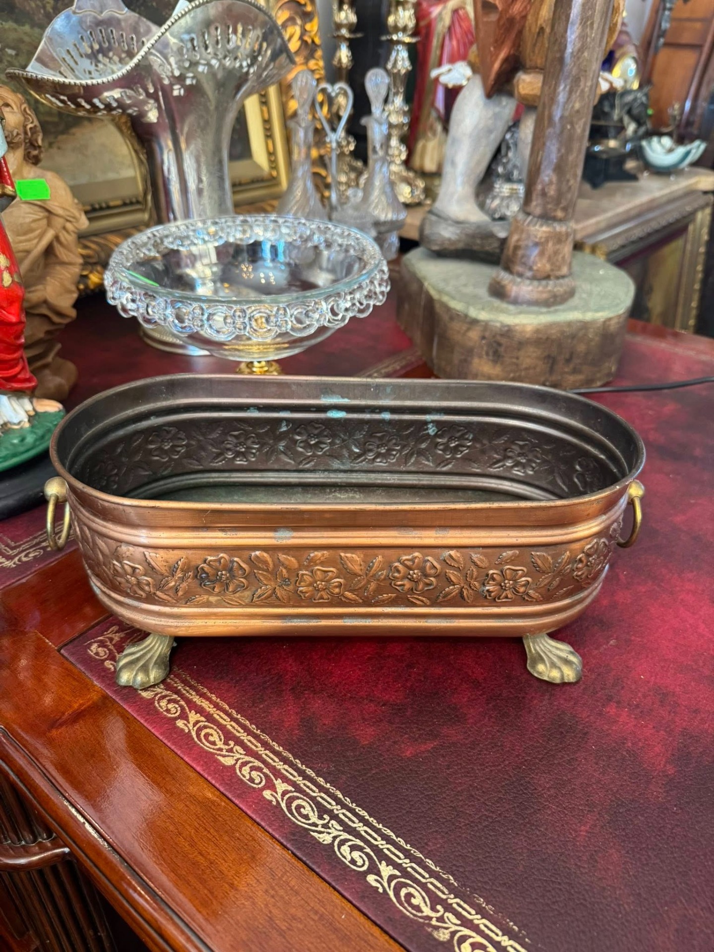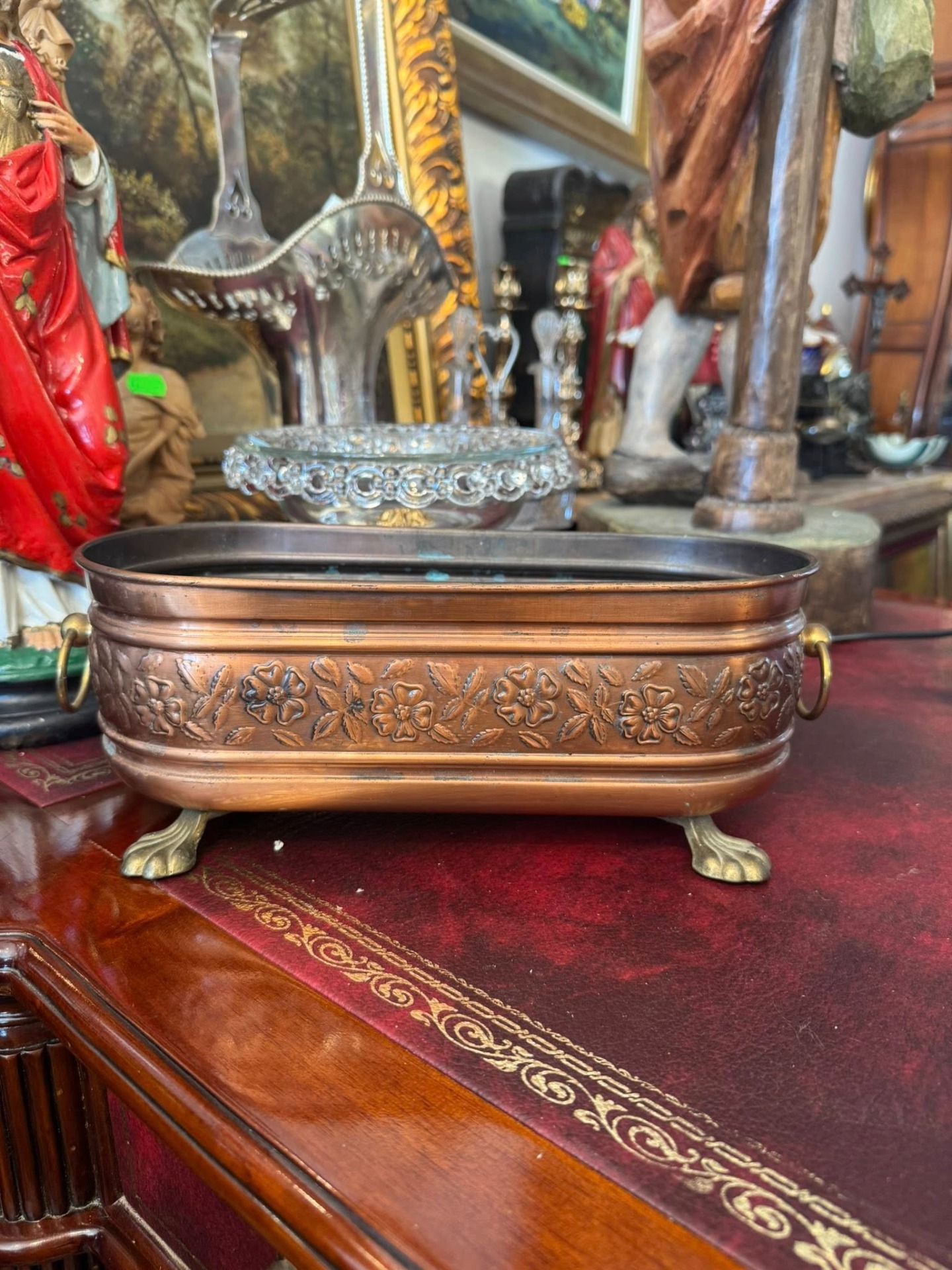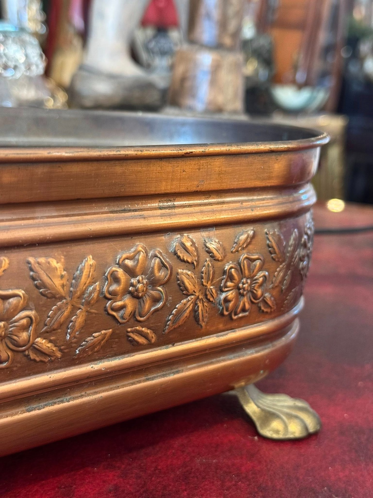 Jardinieră vintage din cupru , realizată într-un stil elegant, Victorian.