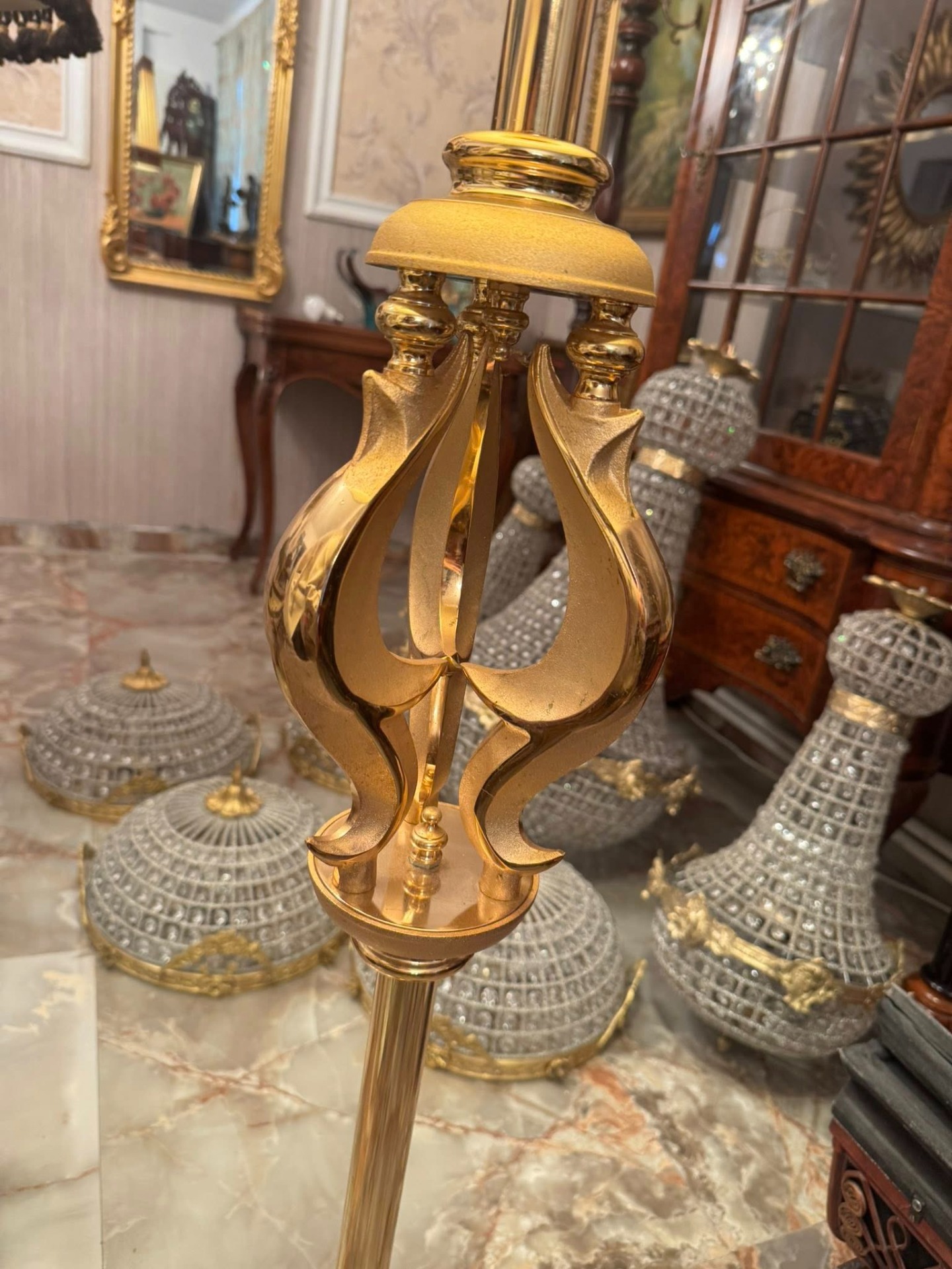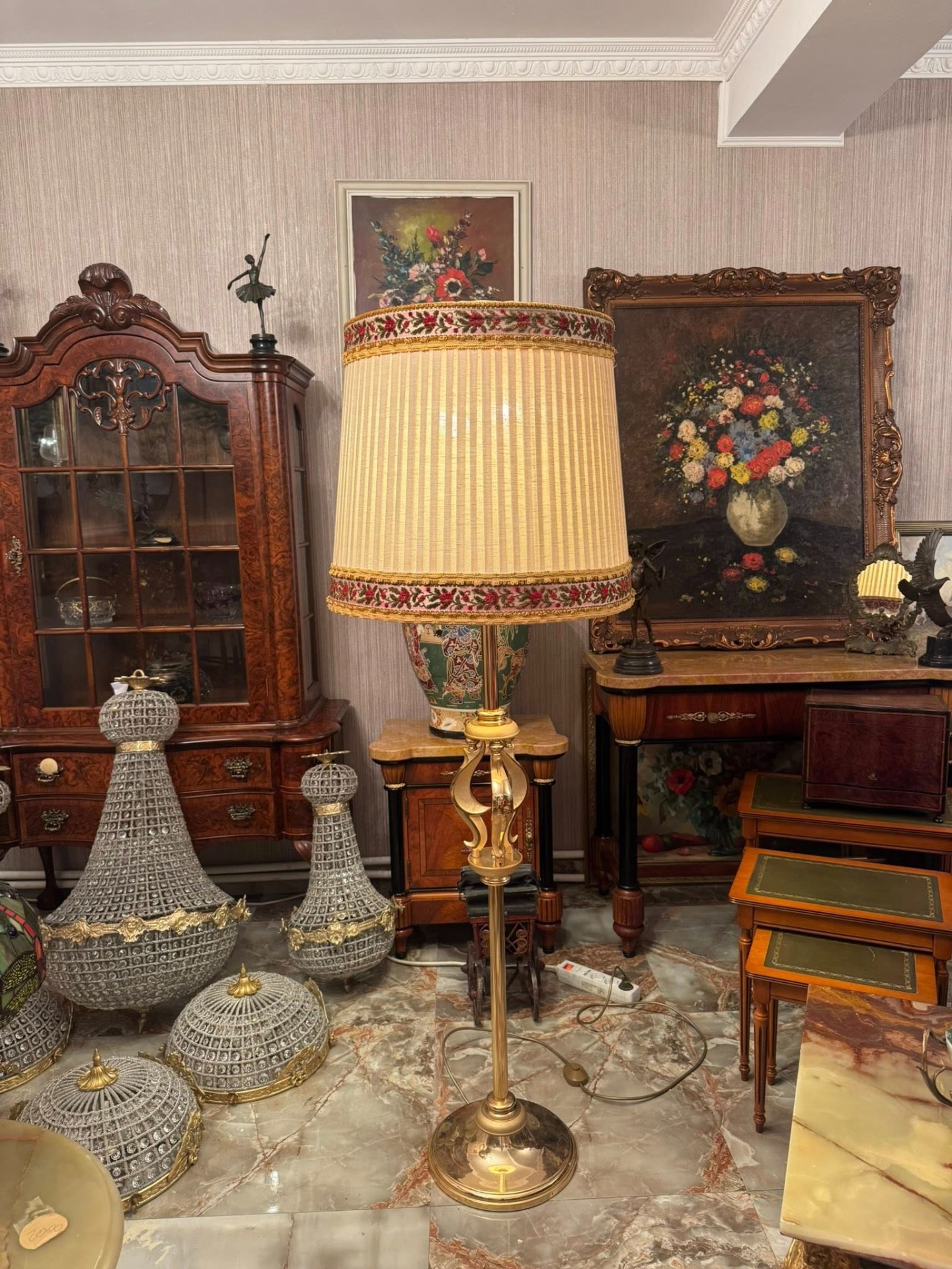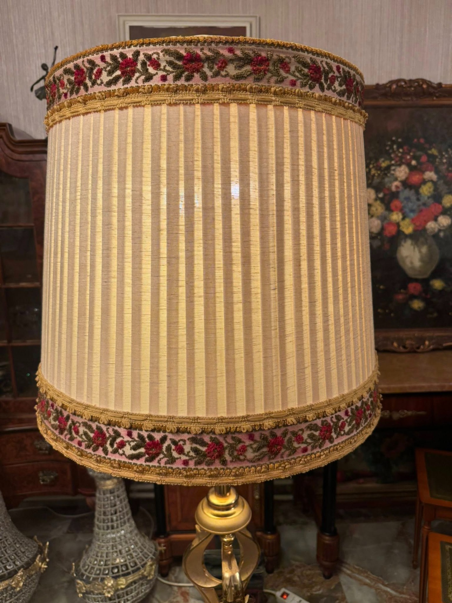 Dimensiuni: 160 cm înălțime, 46 cm diametru abajur, 30 cm baza