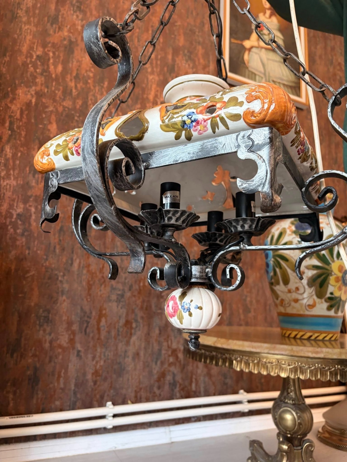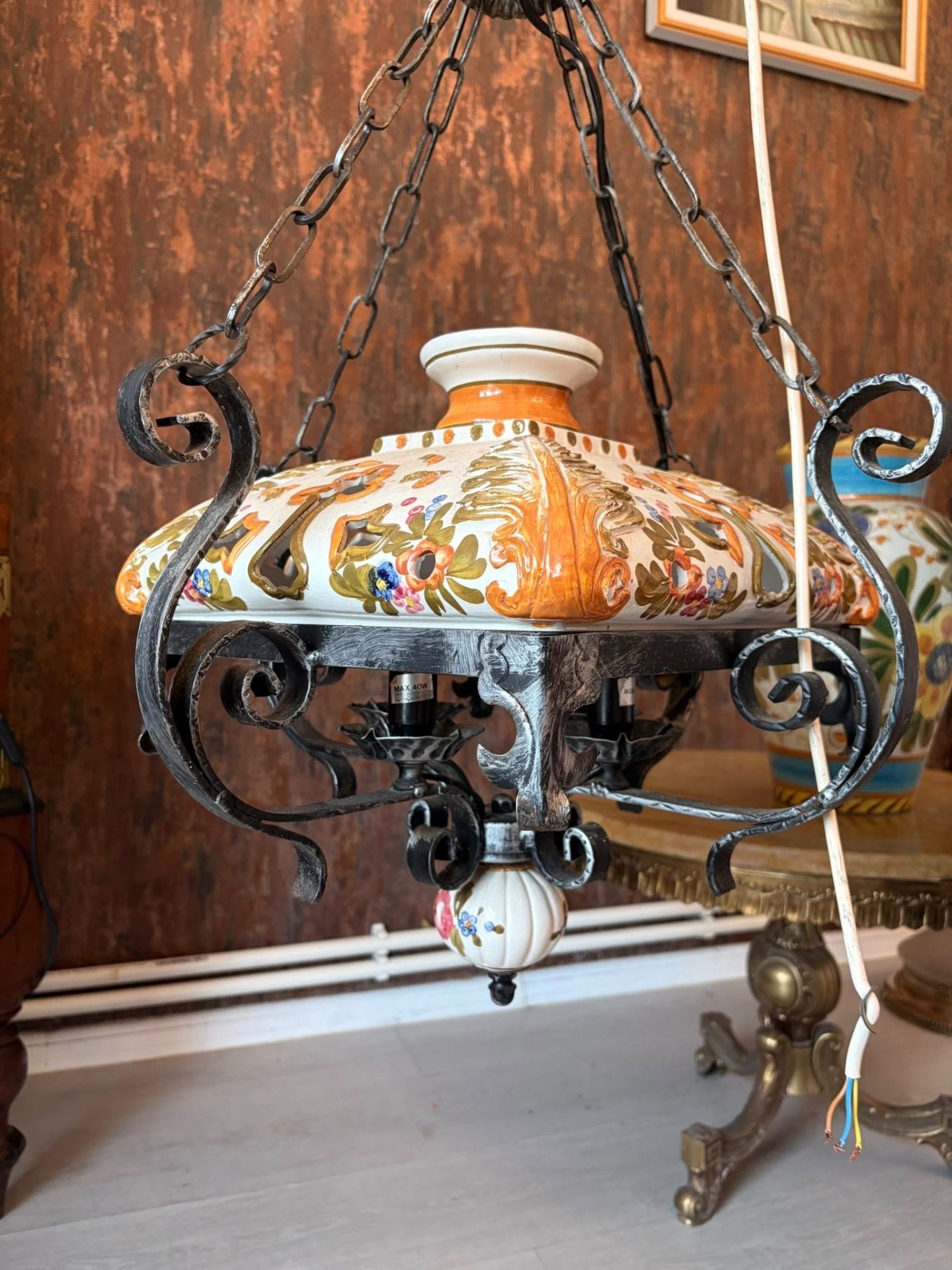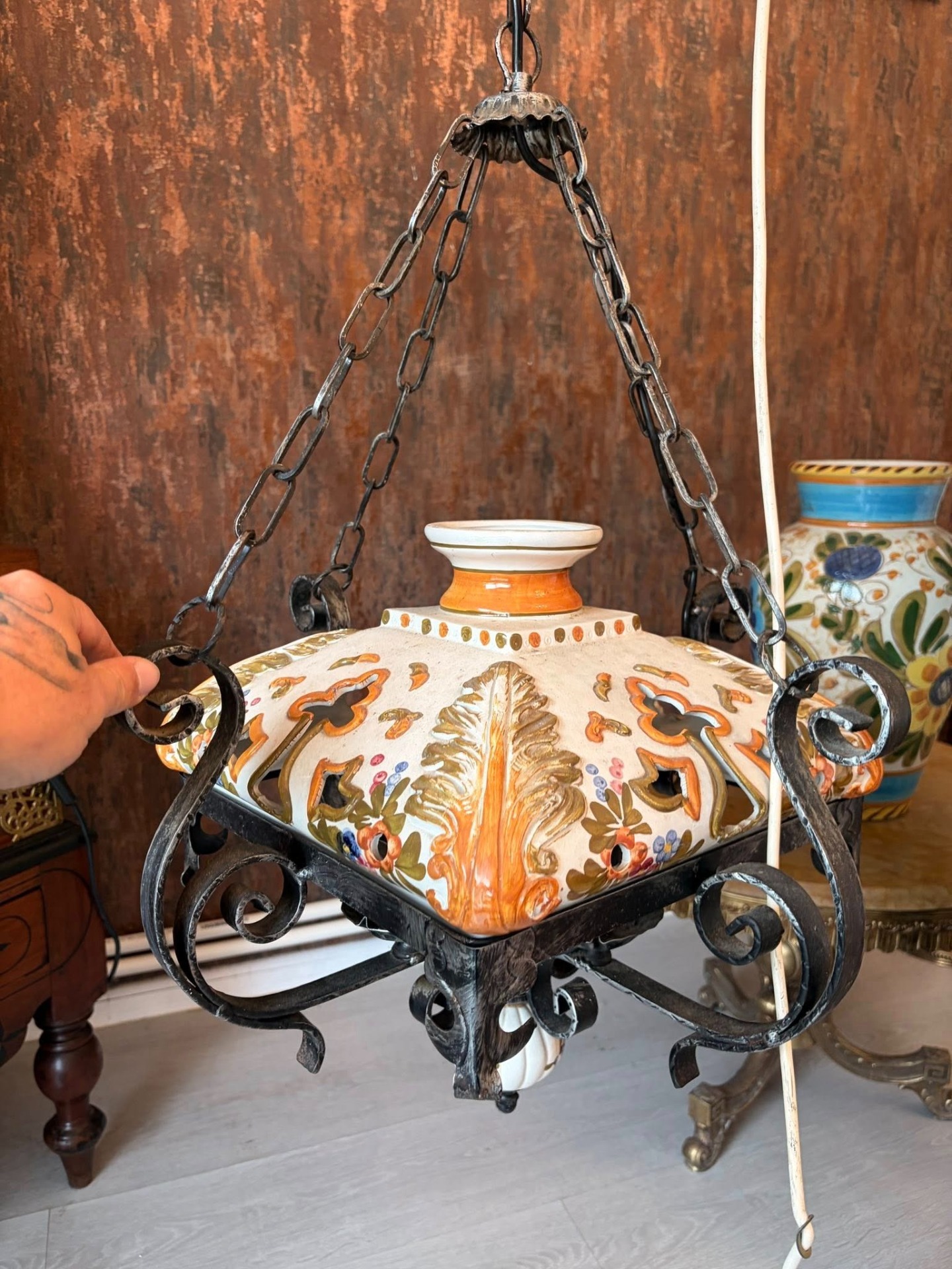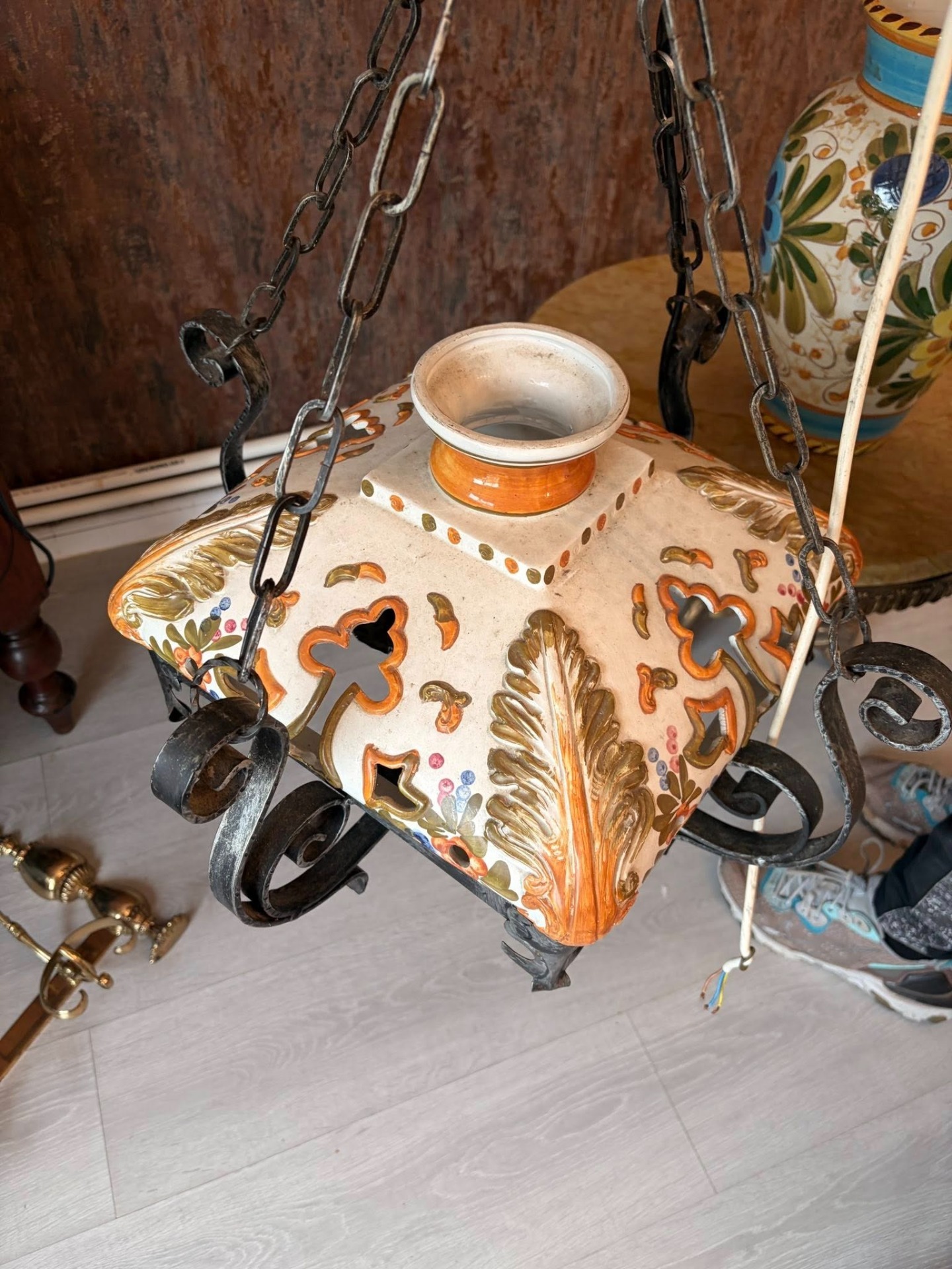 lampa de tavan din ceramica pictata manual,si fier