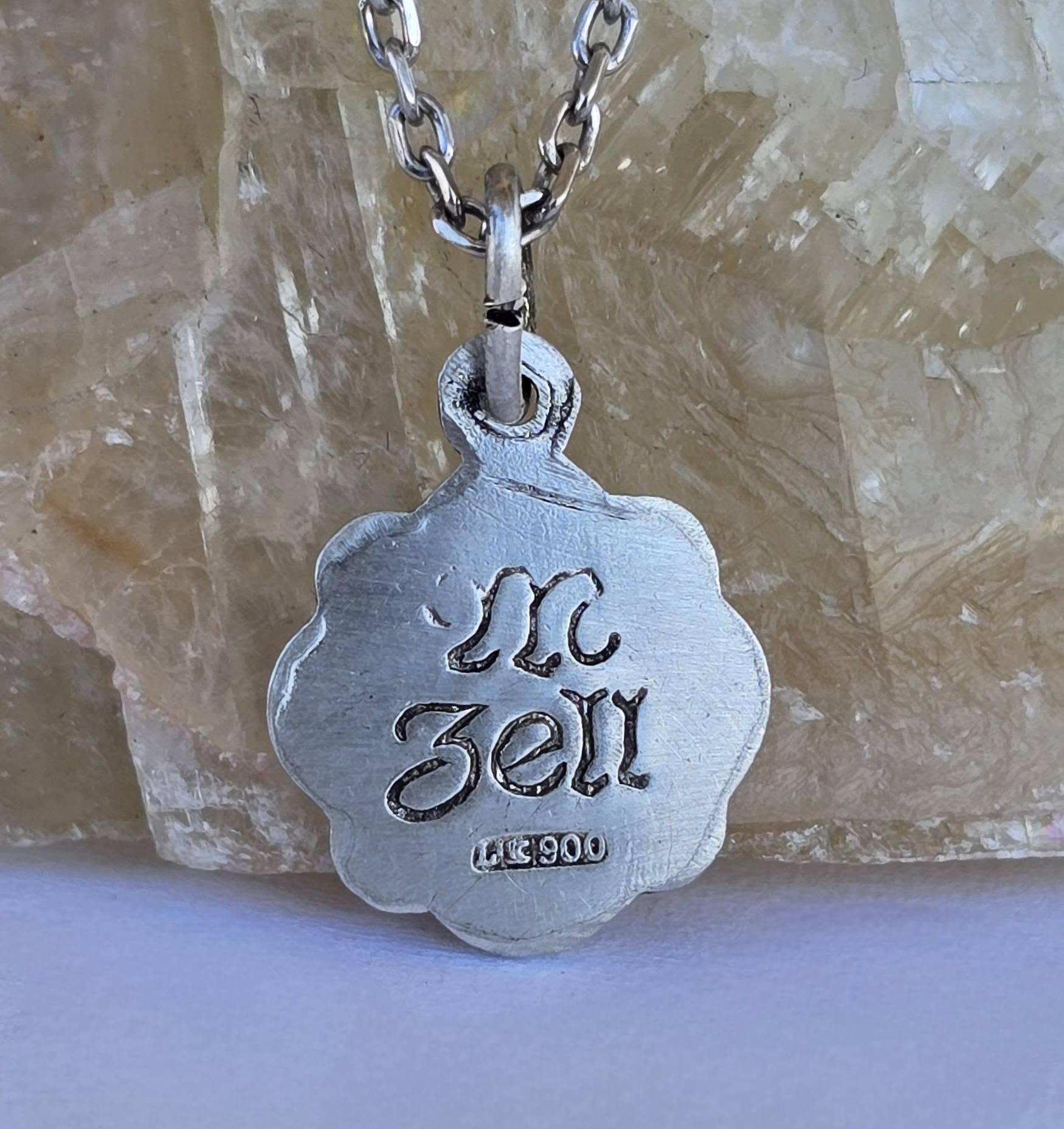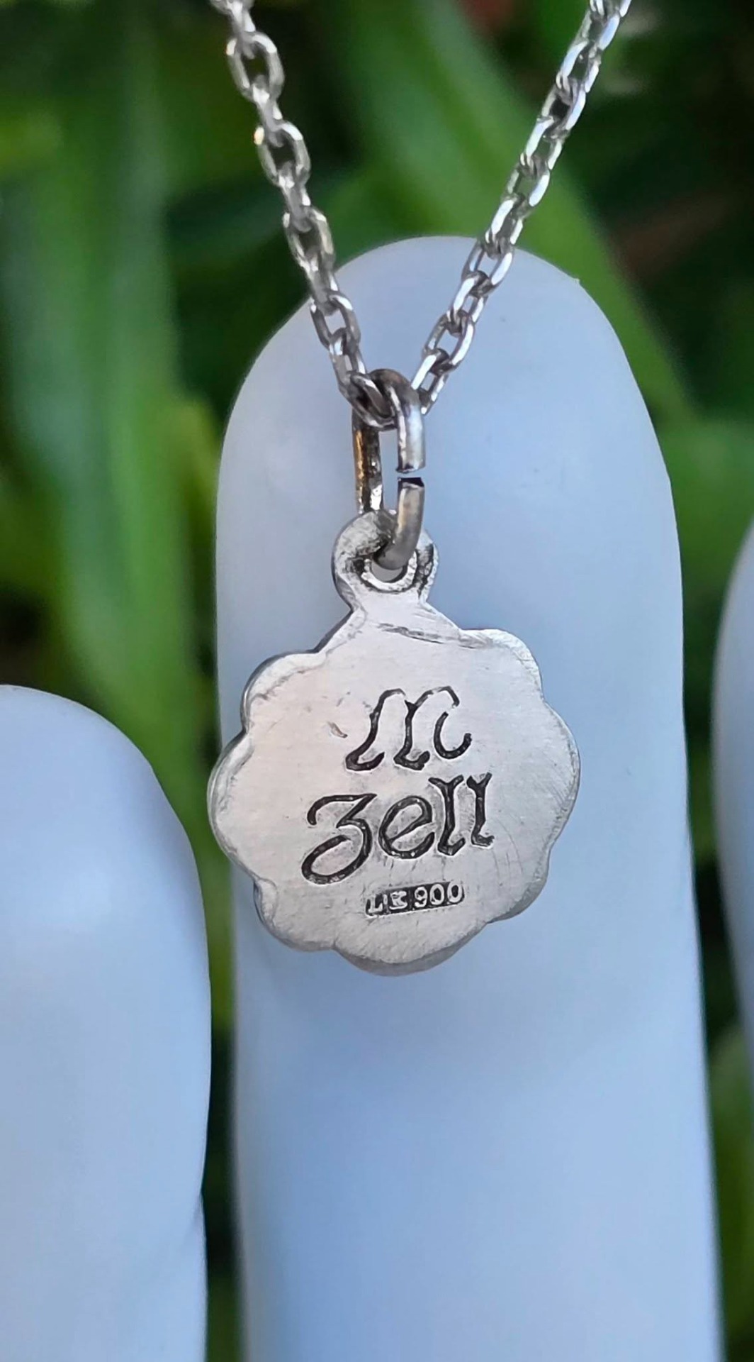 Prezintă marcaj de argint 900 și marcaj de meșter. Gravată pe revers "M.Zell".
