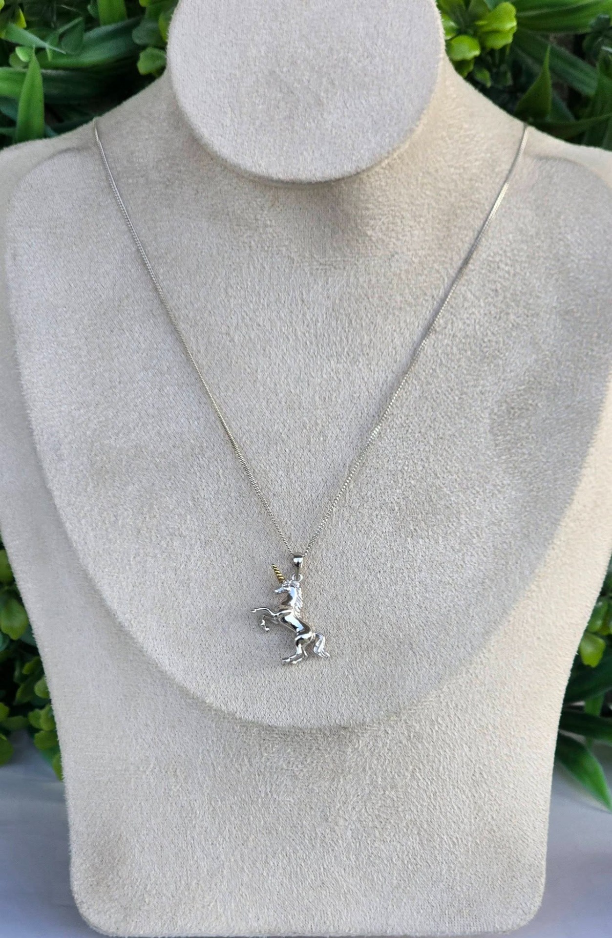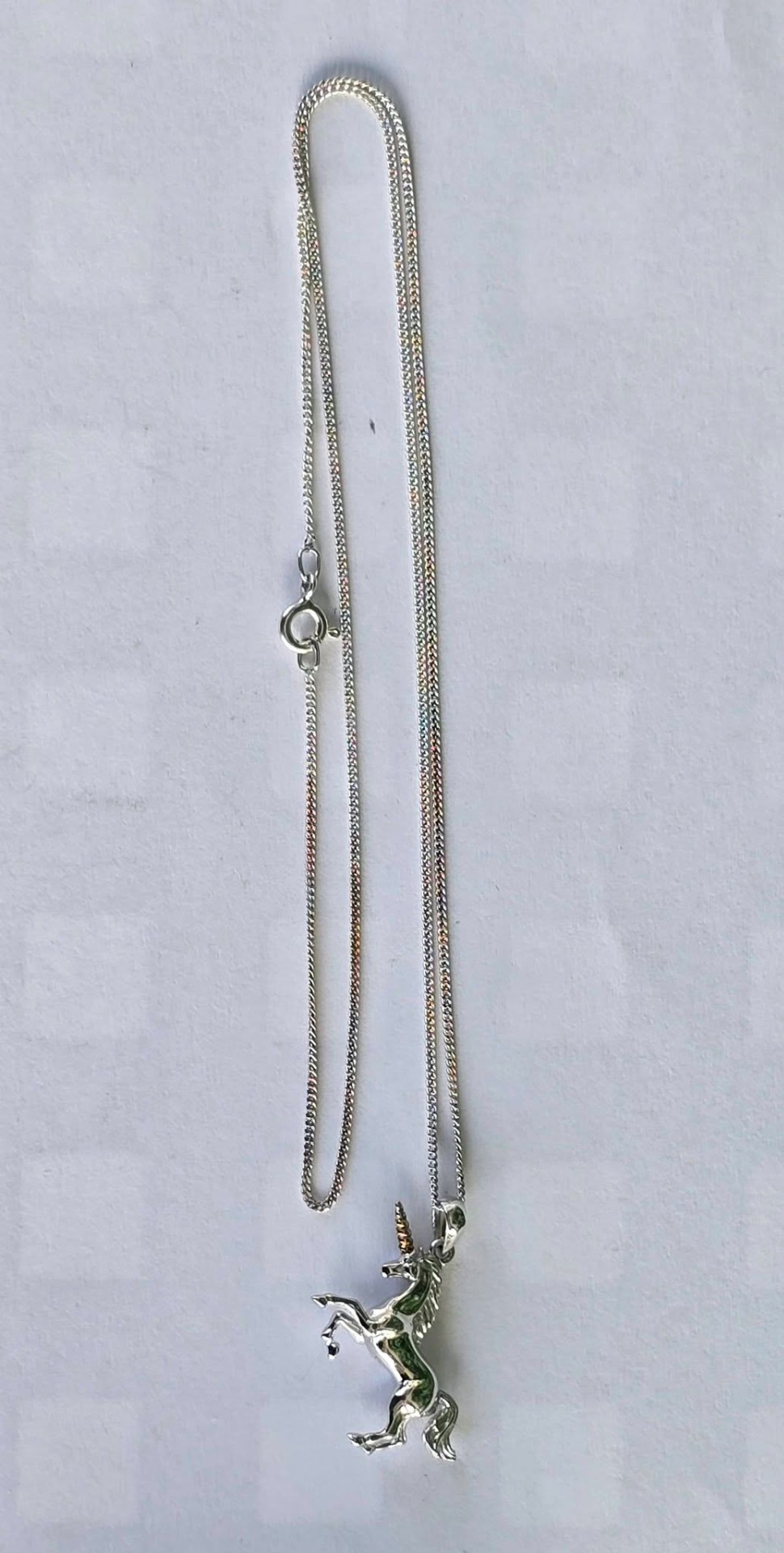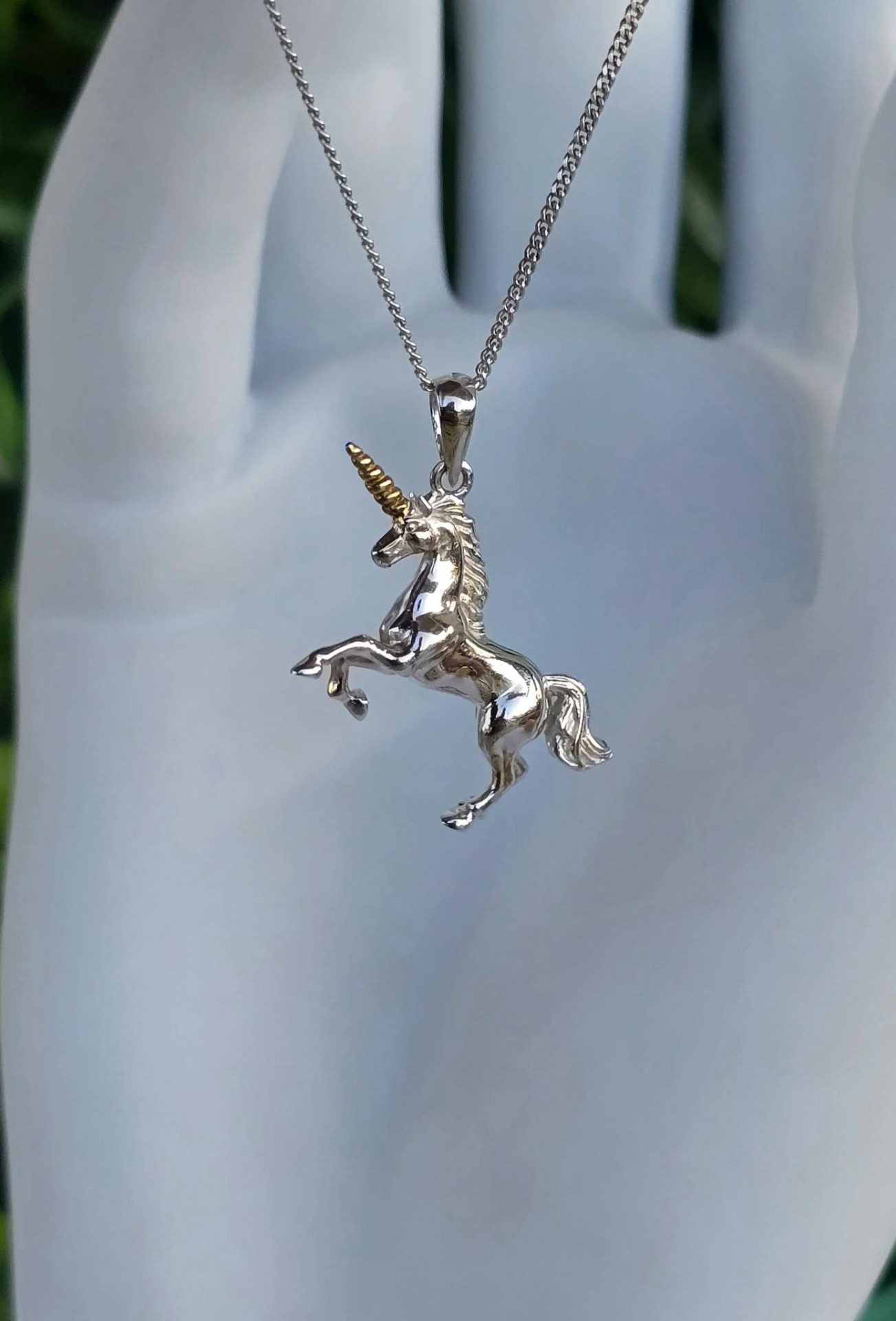 Lanț cu pandantiv contemporan din argint și argint aurit, frumos stilizat sub forma unui unicorn.