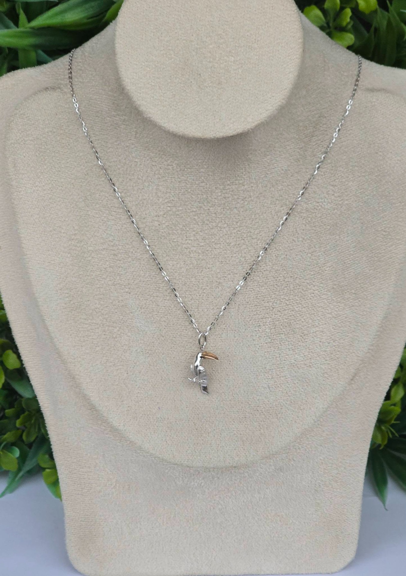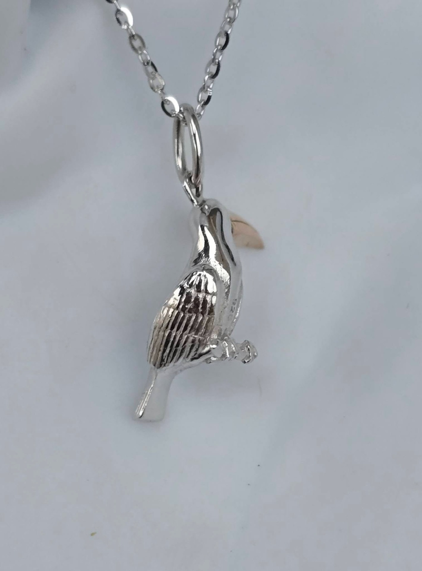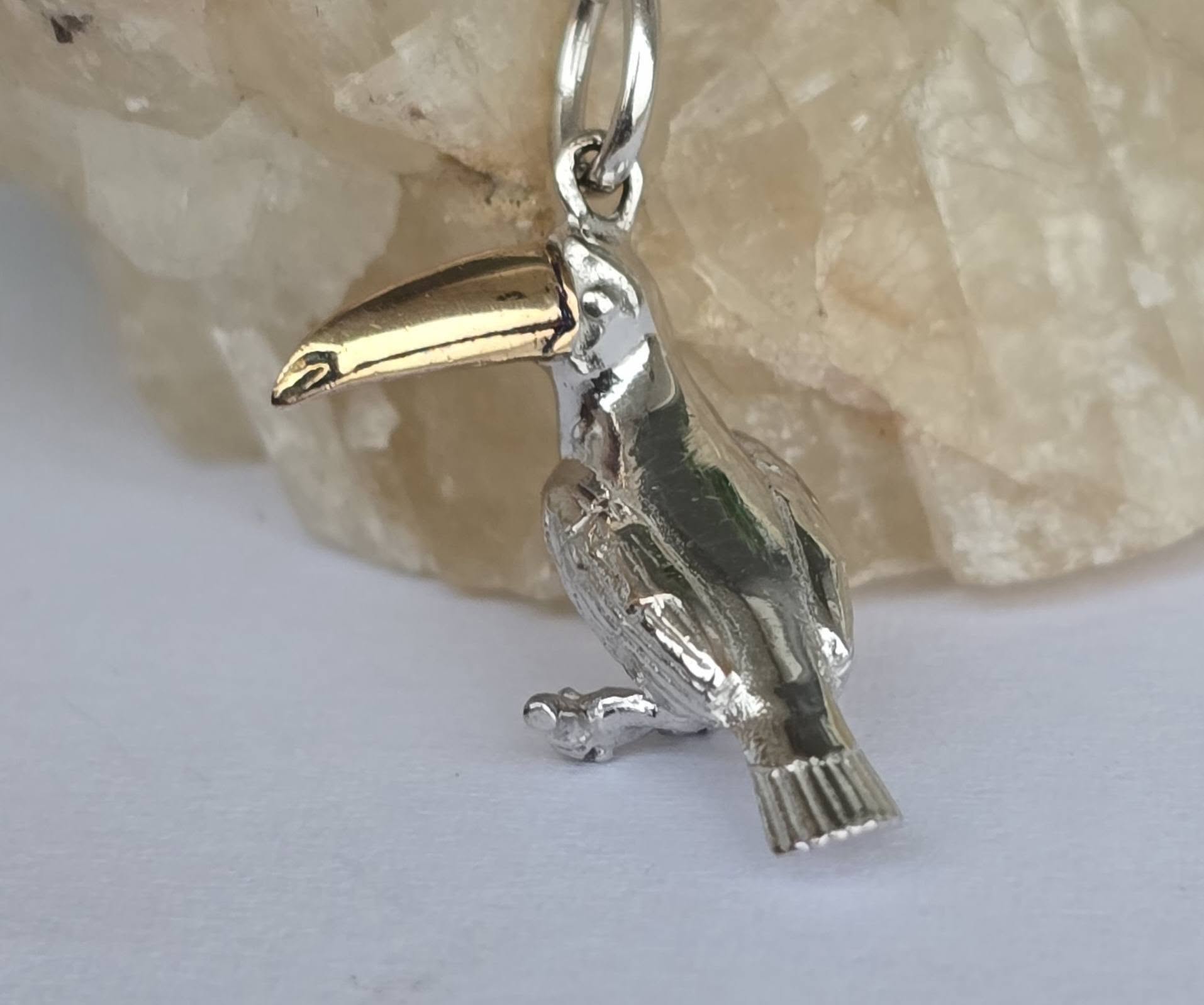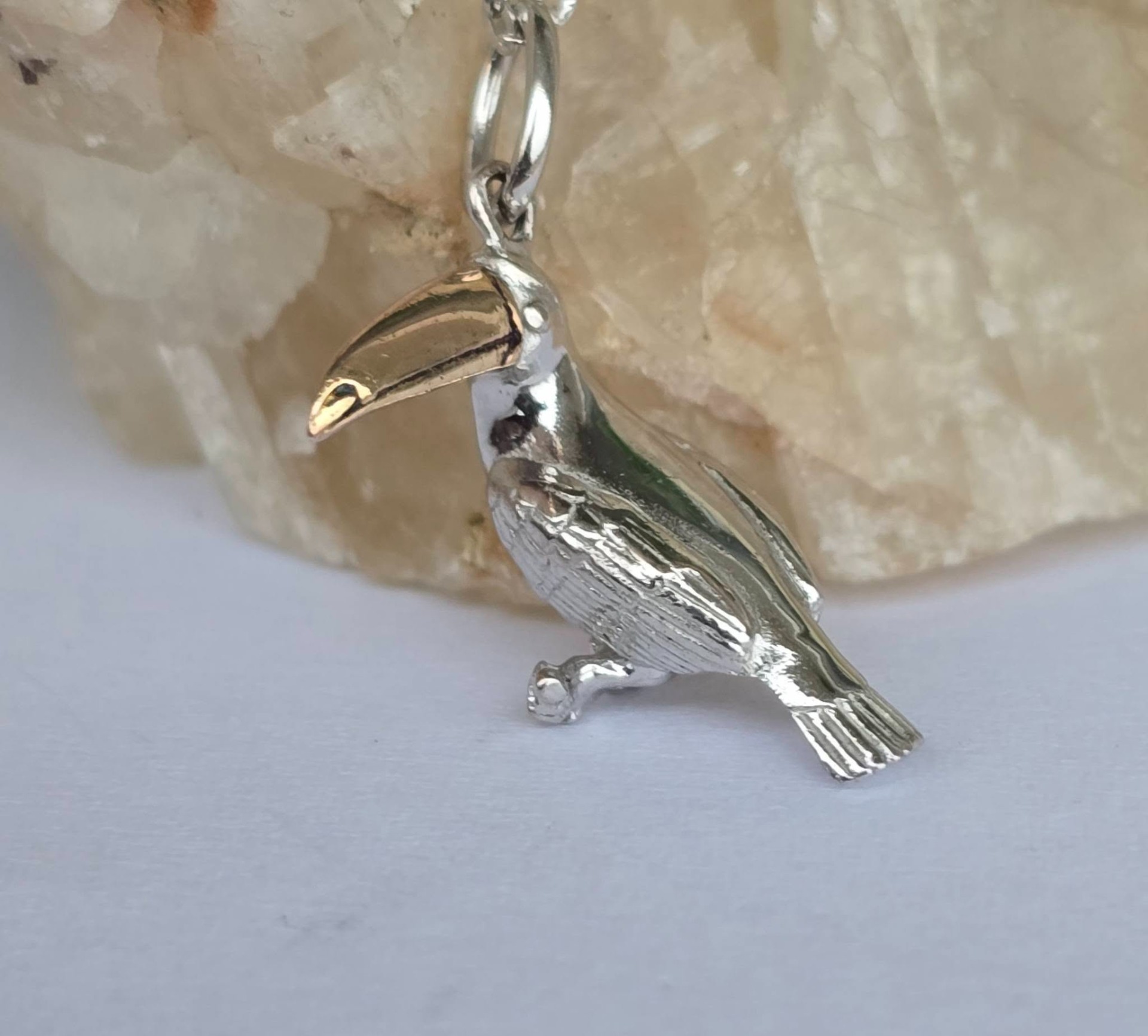 Lanț cu pandantiv contemporan din argint și argint aurit, frumos stilizat sub forma unui toucan.