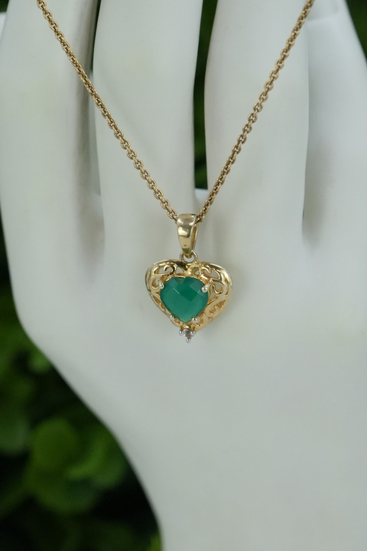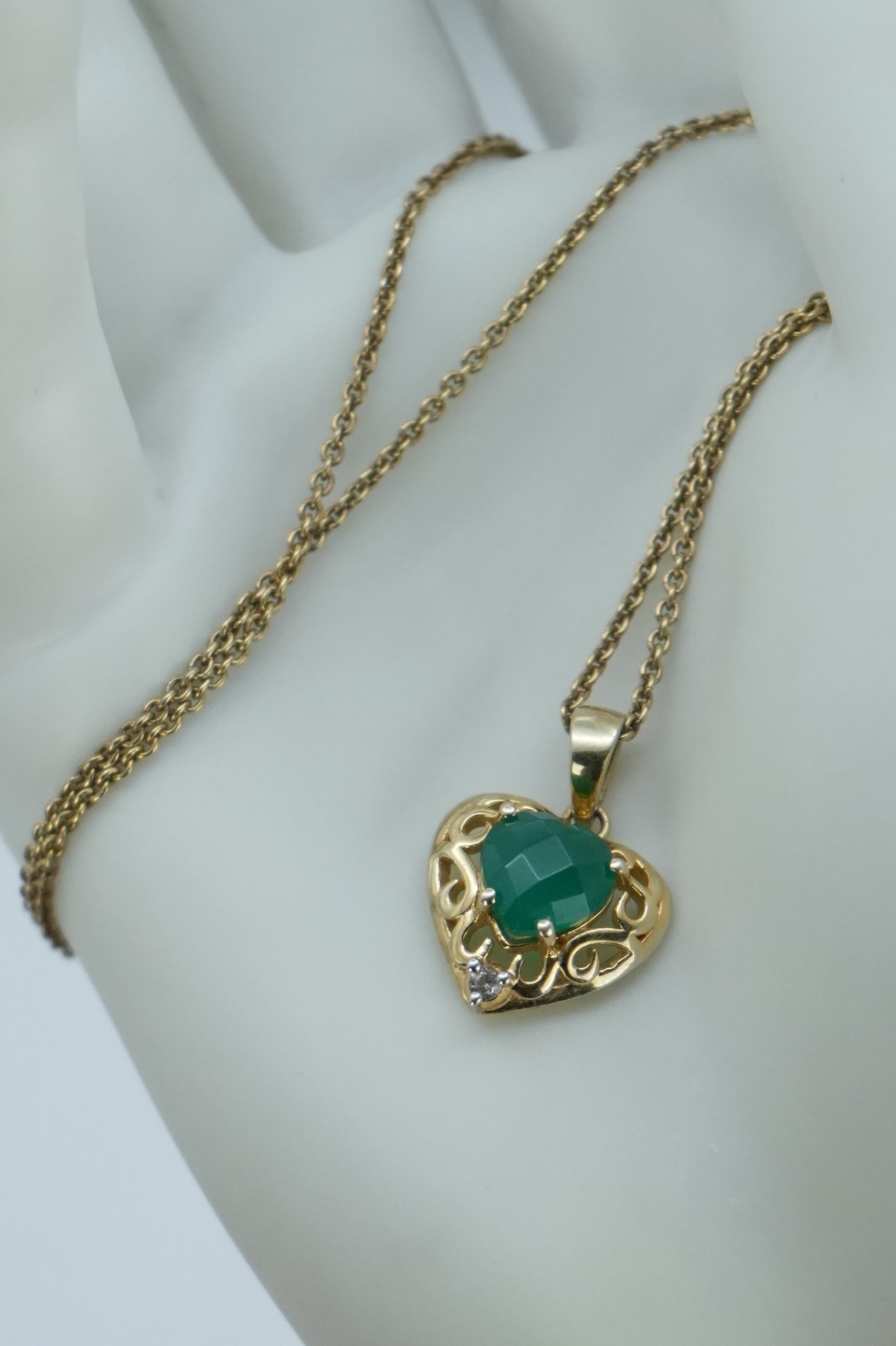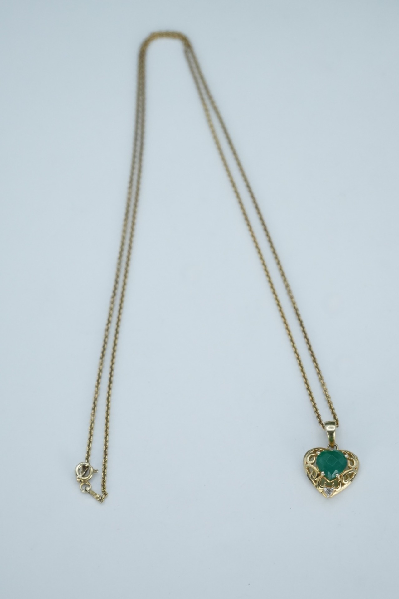 Lanț cu pandantiv vechi din argint aurit, cu smarald si topaz naturale.